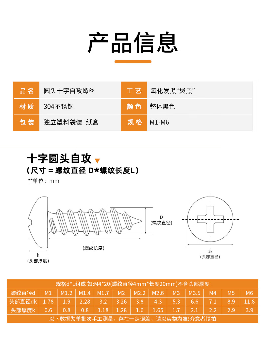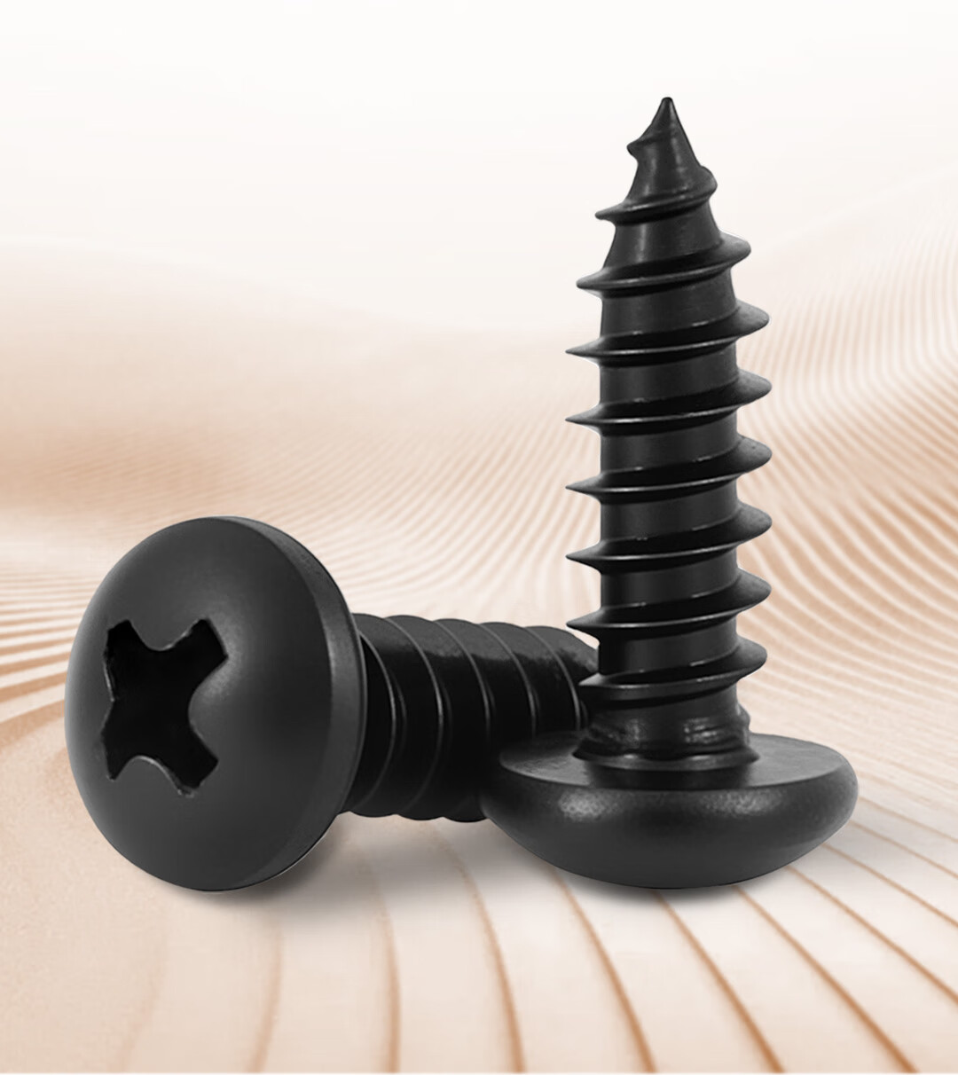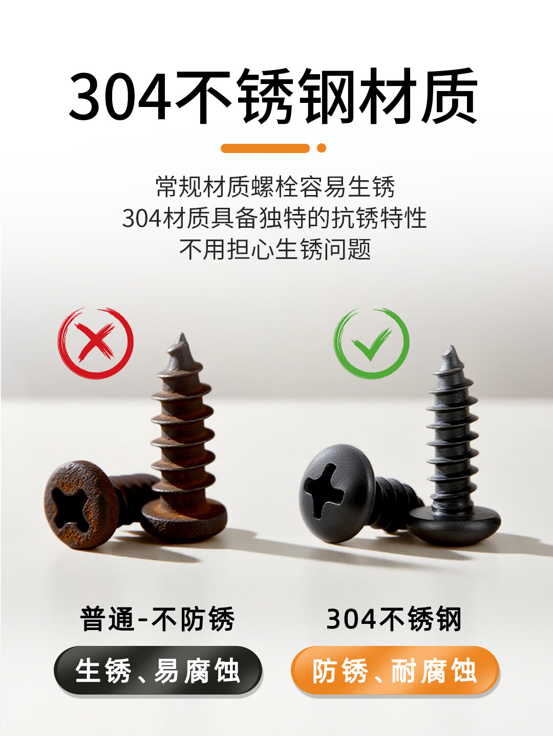 Xuanying Black 304 Stainless Steel Cross Round Head/Pan Head Self-Tapping Screws Wood Screws Small PA Pointed Tail Large Head Self-Tapping Screws M4*50 (20 pcs)