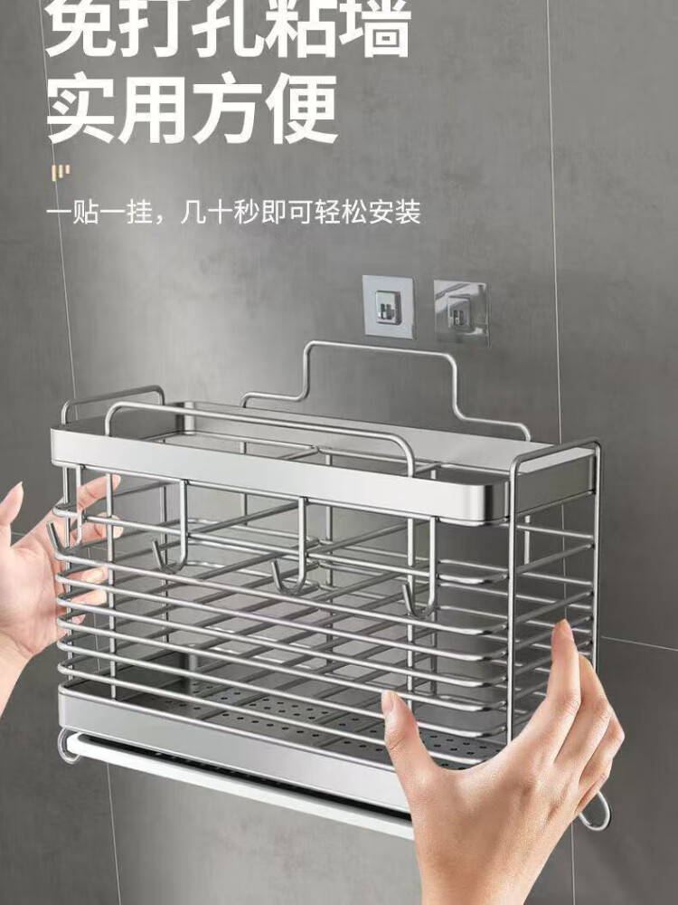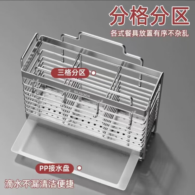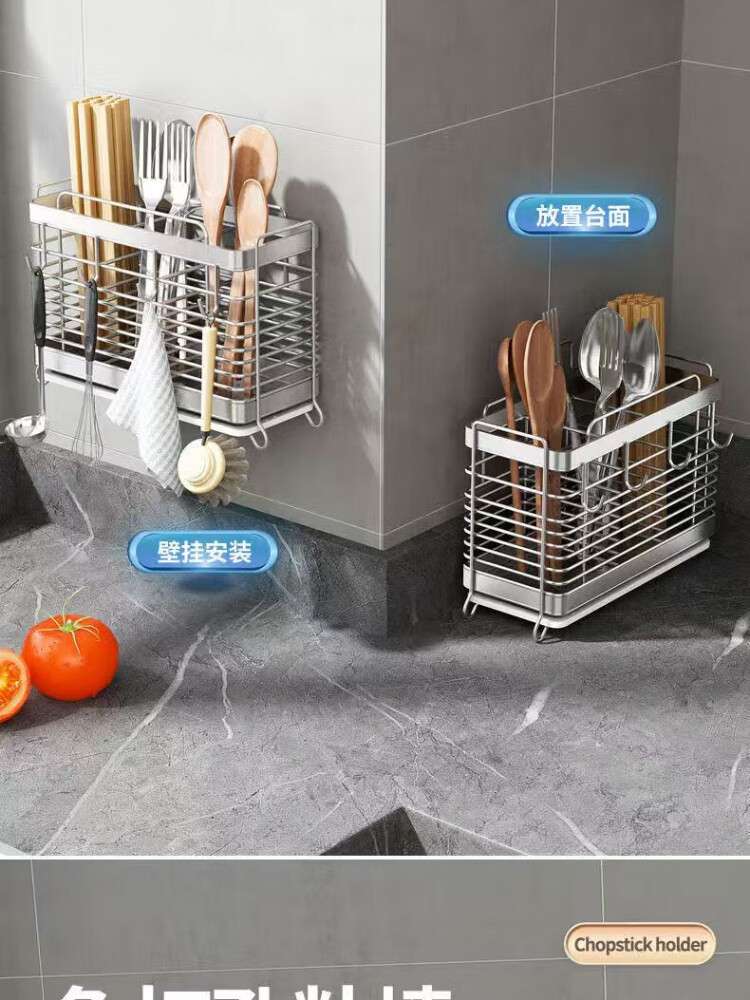 304 stainless steel chopstick barrel household chopstick storage box kitchen chopstick cage wall-mounted knife holder spoon storage rack round line style 2-grid chopstick cage