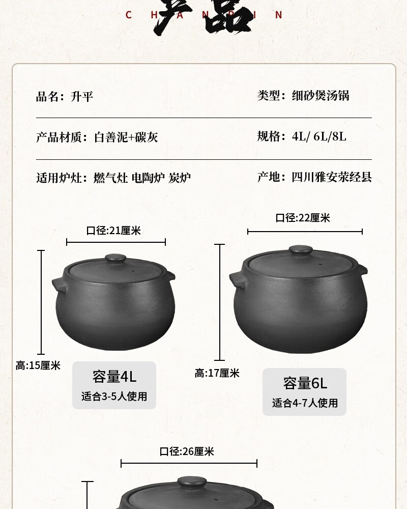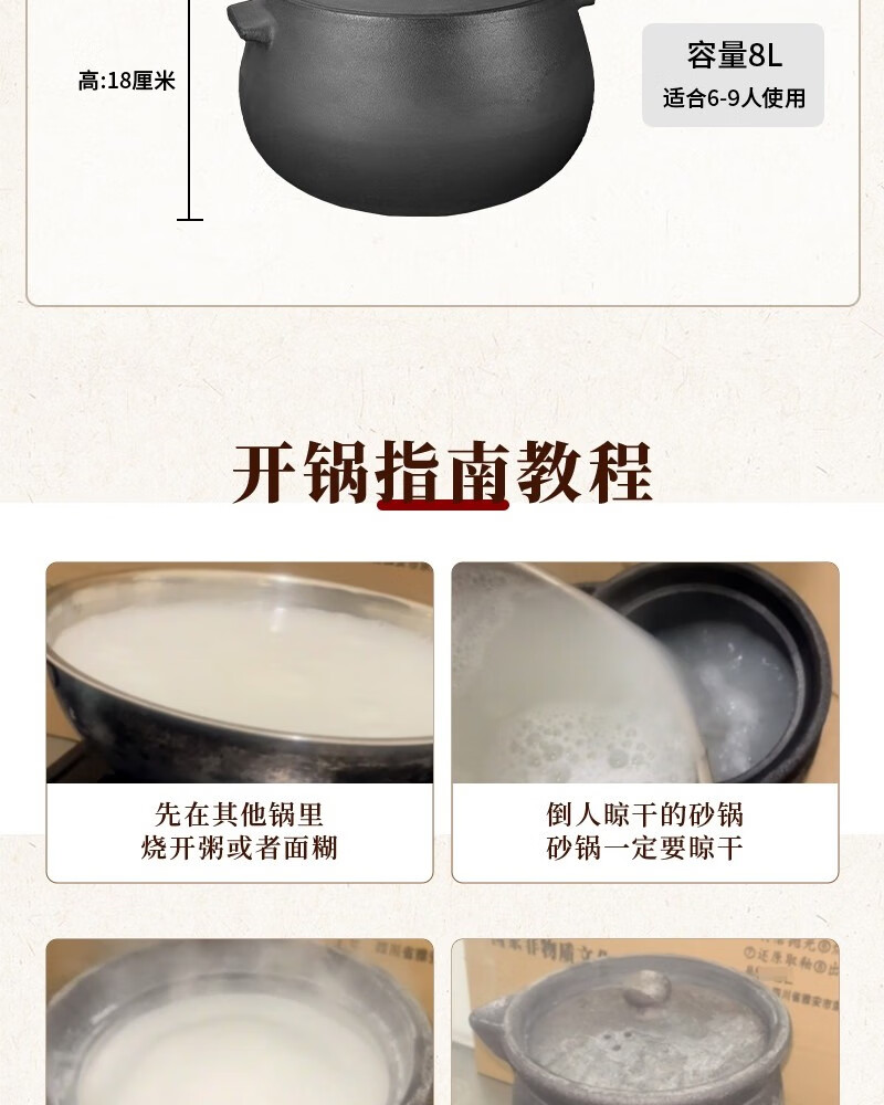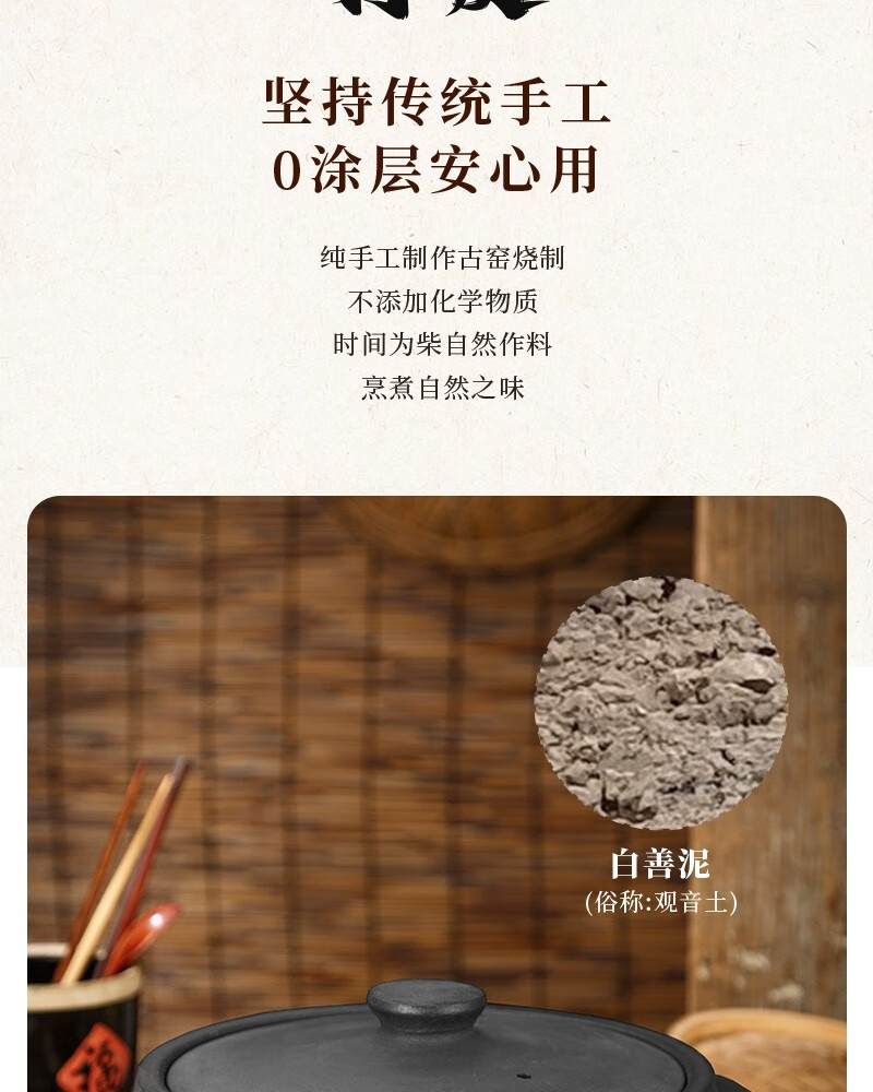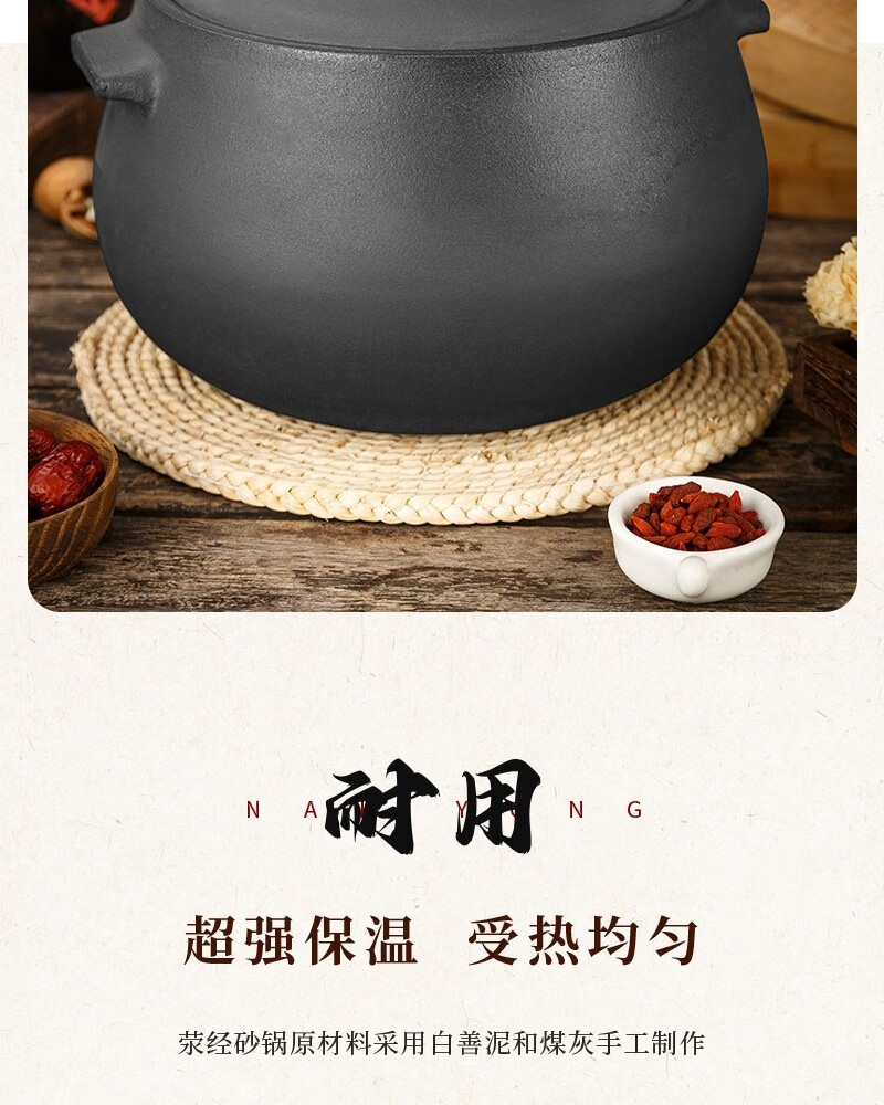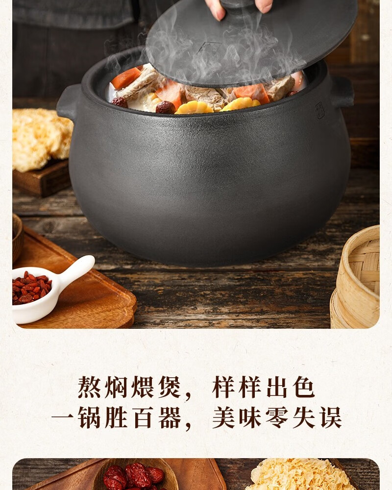 Yacheng Ying Kiln Yingjing Casserole household soup pot gas stove open flame stew pot old-fashioned black pottery fine sand unglazed casserole for 3 people Shengping丨Suitable for 6-9 people 8L