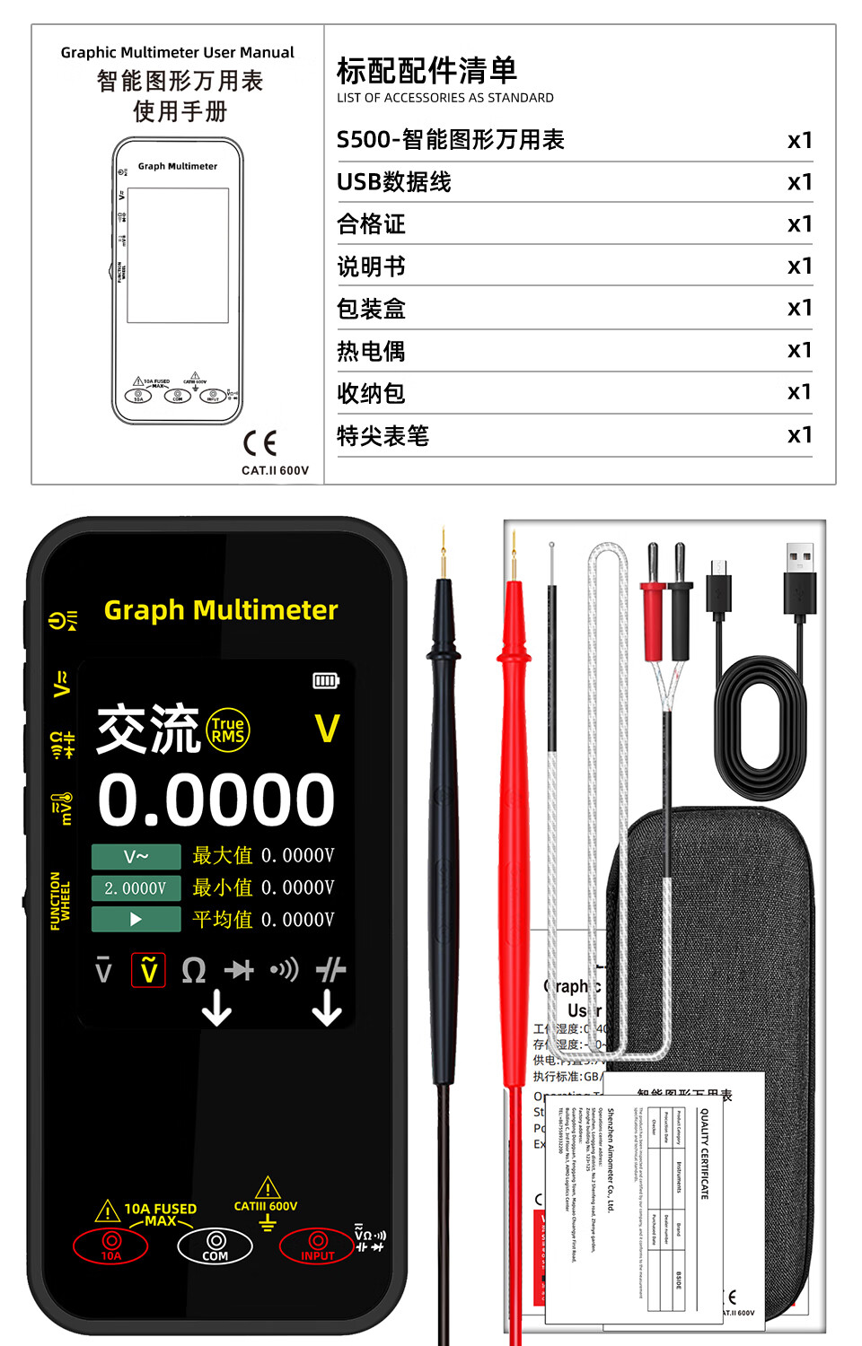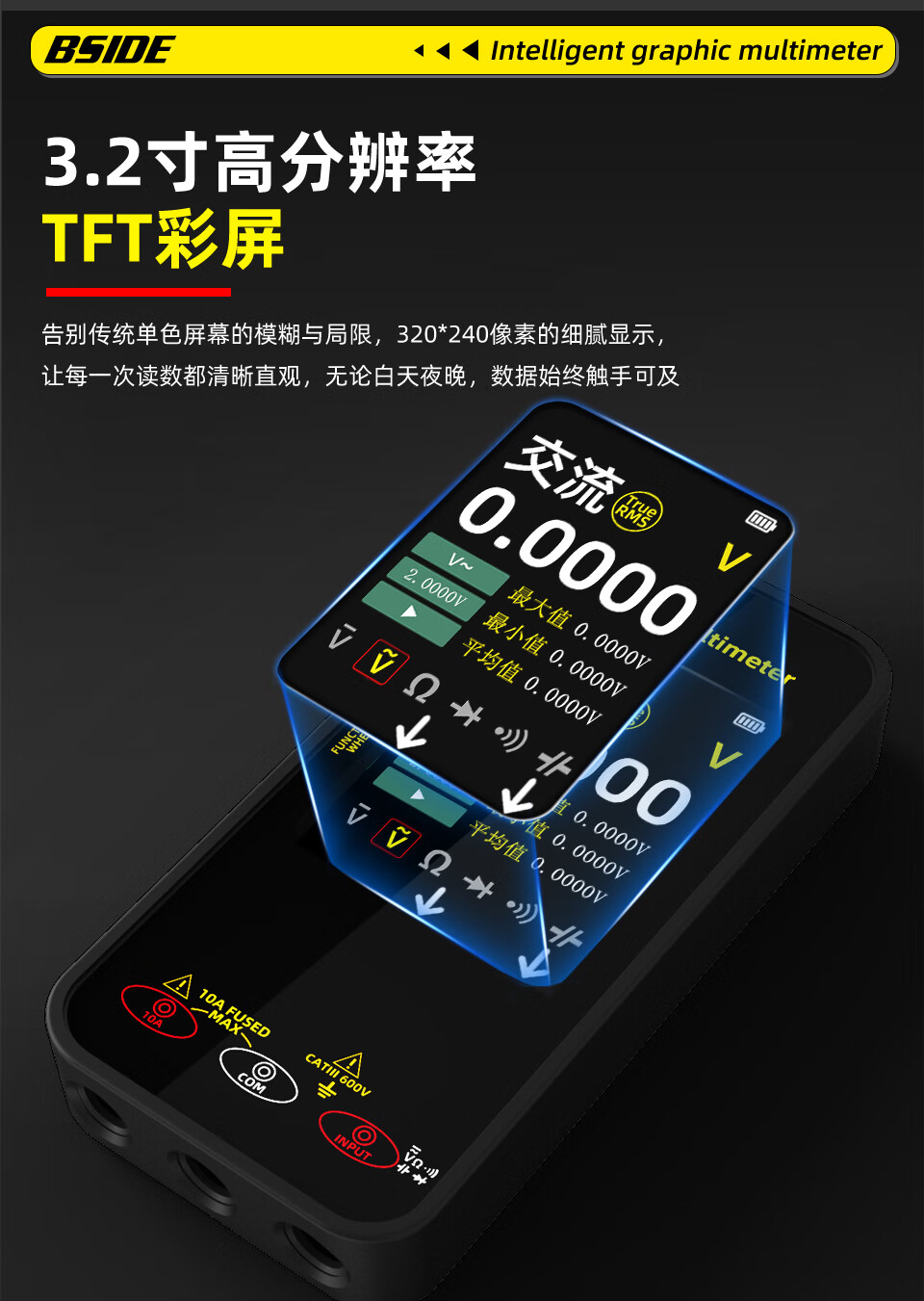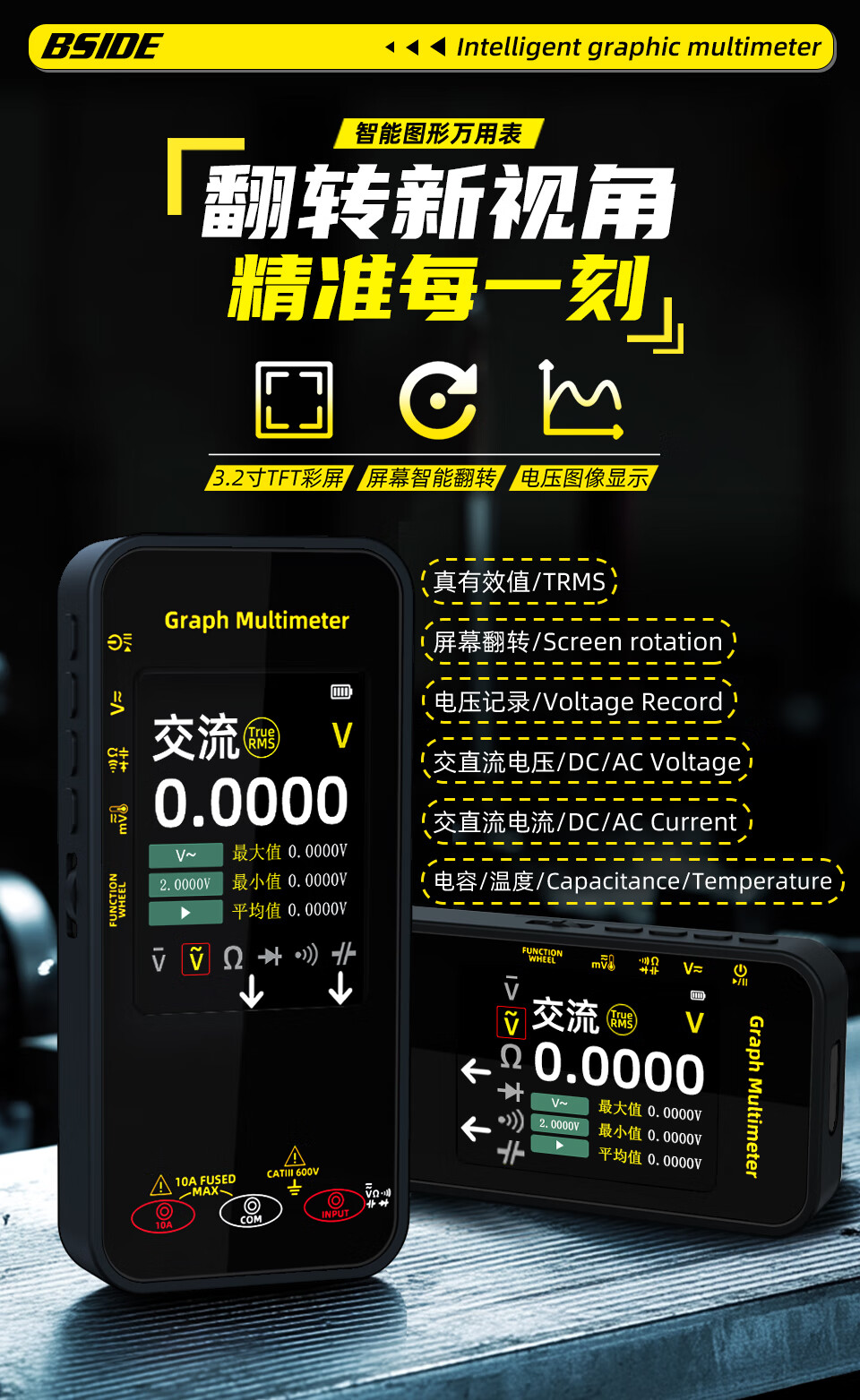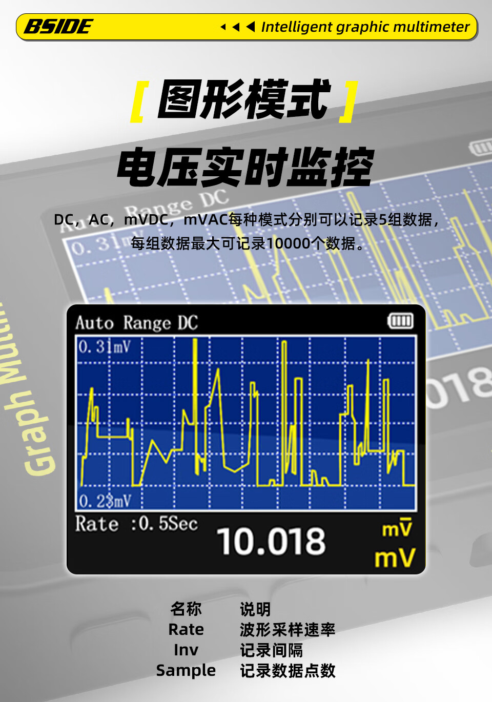 BSIDES500 graphic recording multimeter digital high-precision fully intelligent anti-burn electrician multifunctional multimeter S500 dual-mode graphic recording flat-panel multimeter