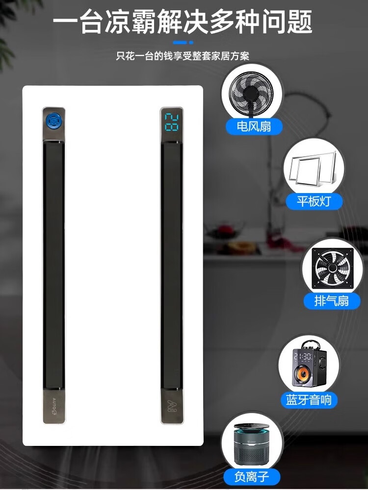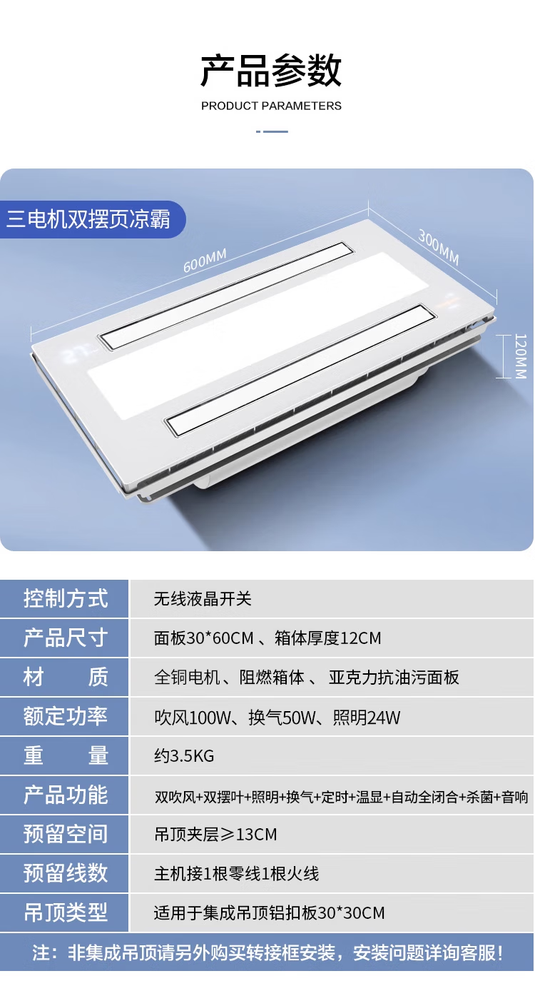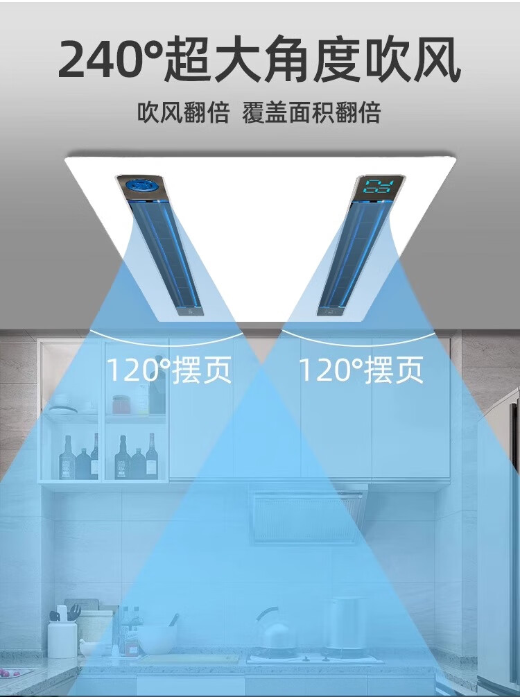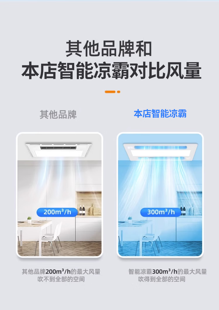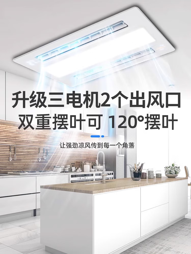 Haotaitai Intelligent Cooler Kitchen Embedded Lighting Two-in-One Air Conditioner Integrated Ceiling Ventilation Cooler Fan Cooler 60 Watt Lighting Three Motors * Voice Switch/Wiring Required