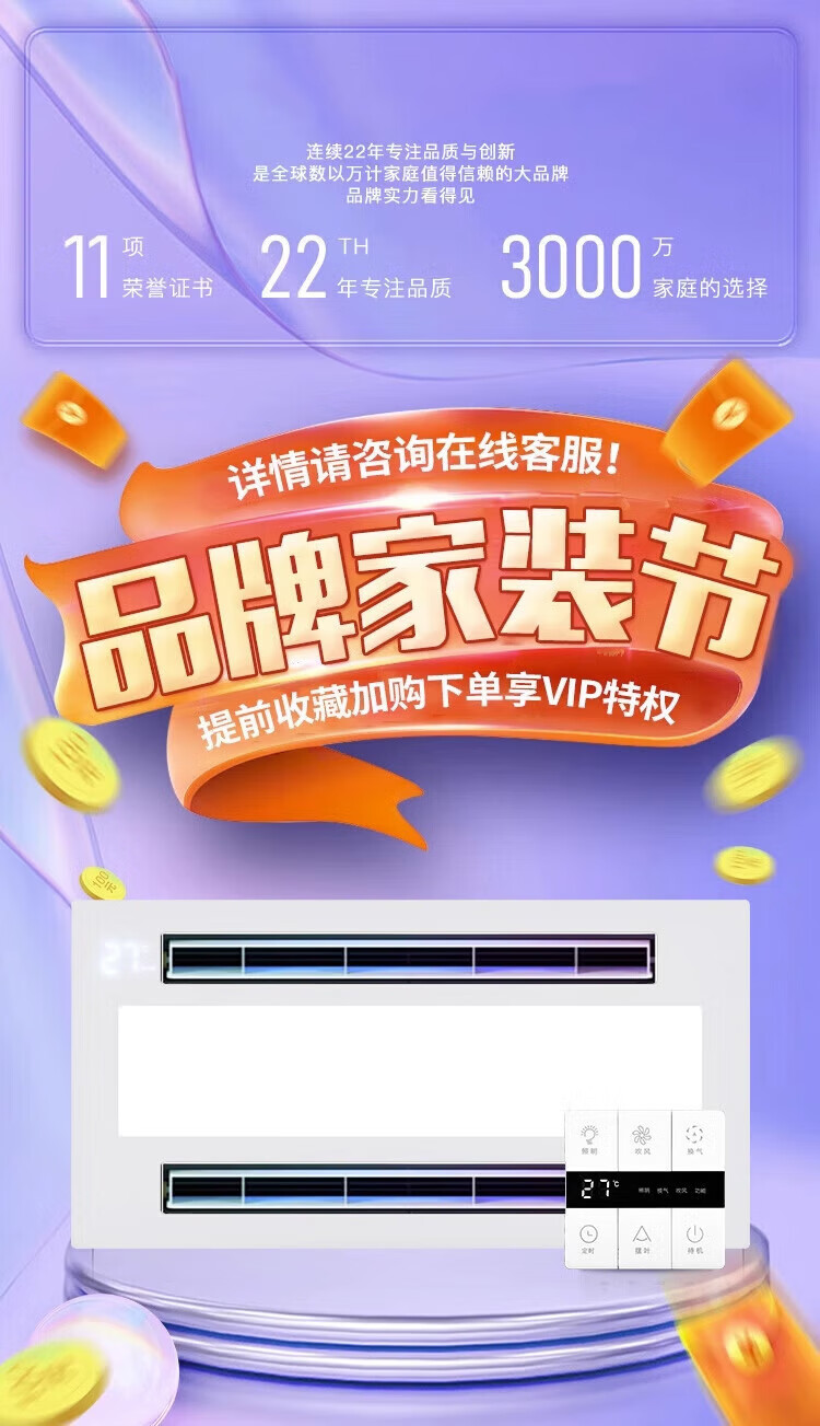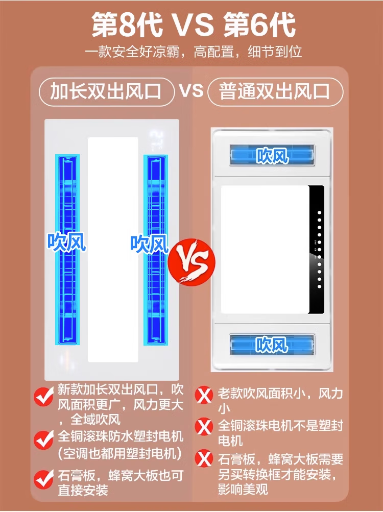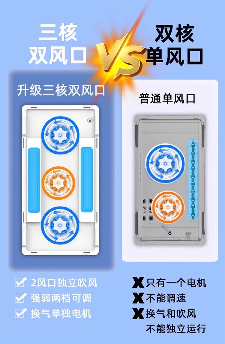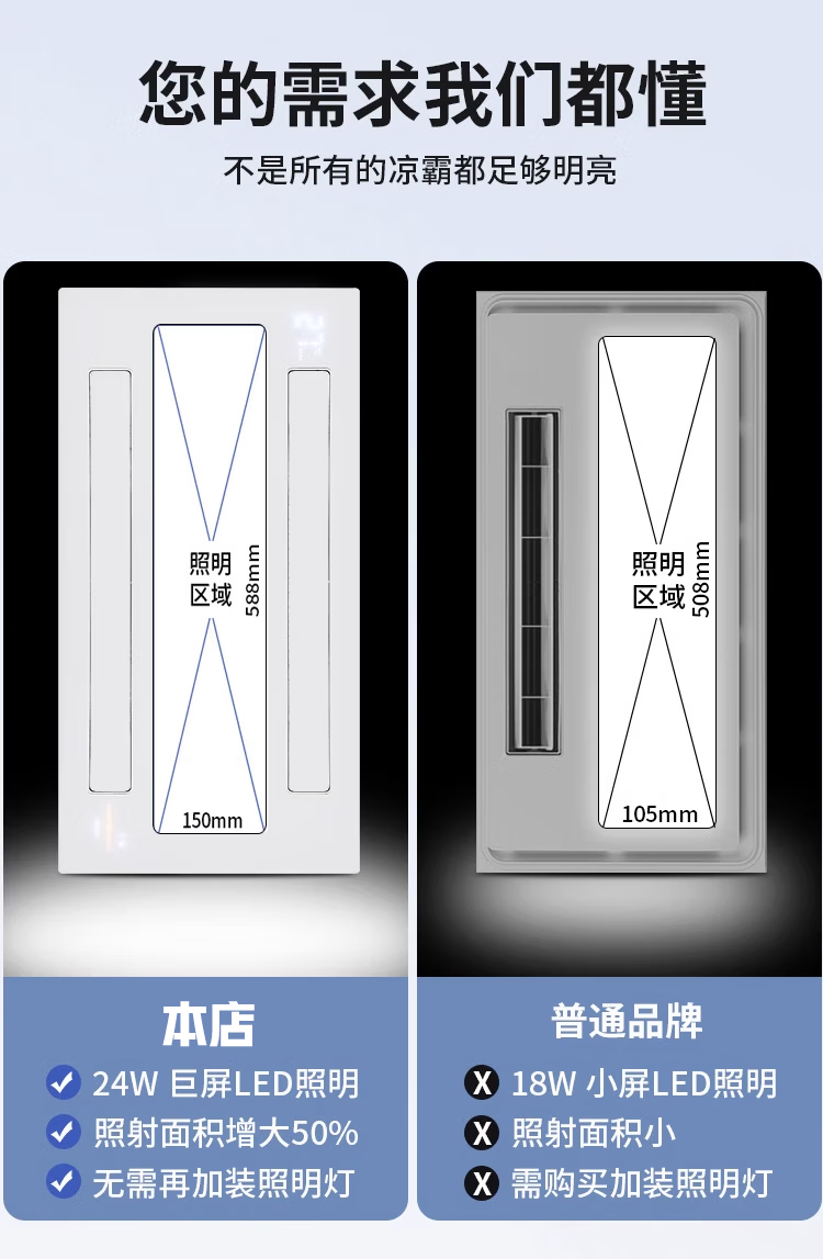 Haotaitai Intelligent Cooler Kitchen Embedded Lighting Two-in-One Air Conditioner Integrated Ceiling Ventilation Cooler Fan Cooler 60 Watt Lighting Three Motors * Voice Switch/Wiring Required
