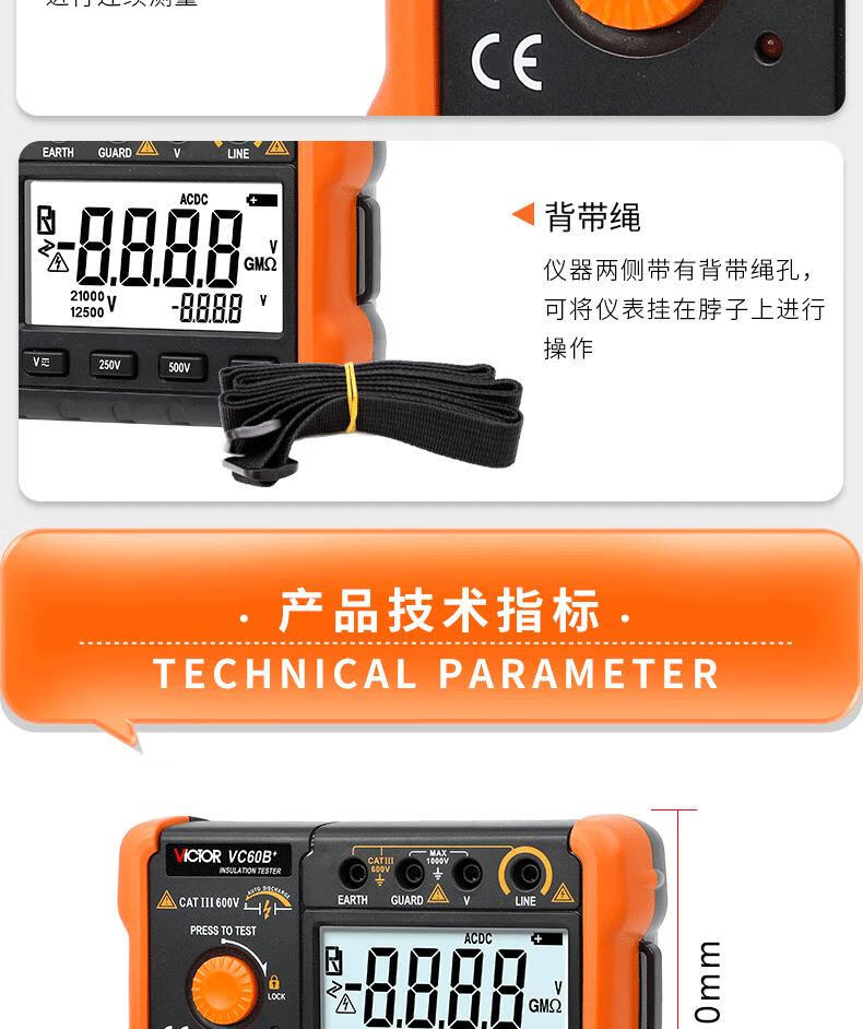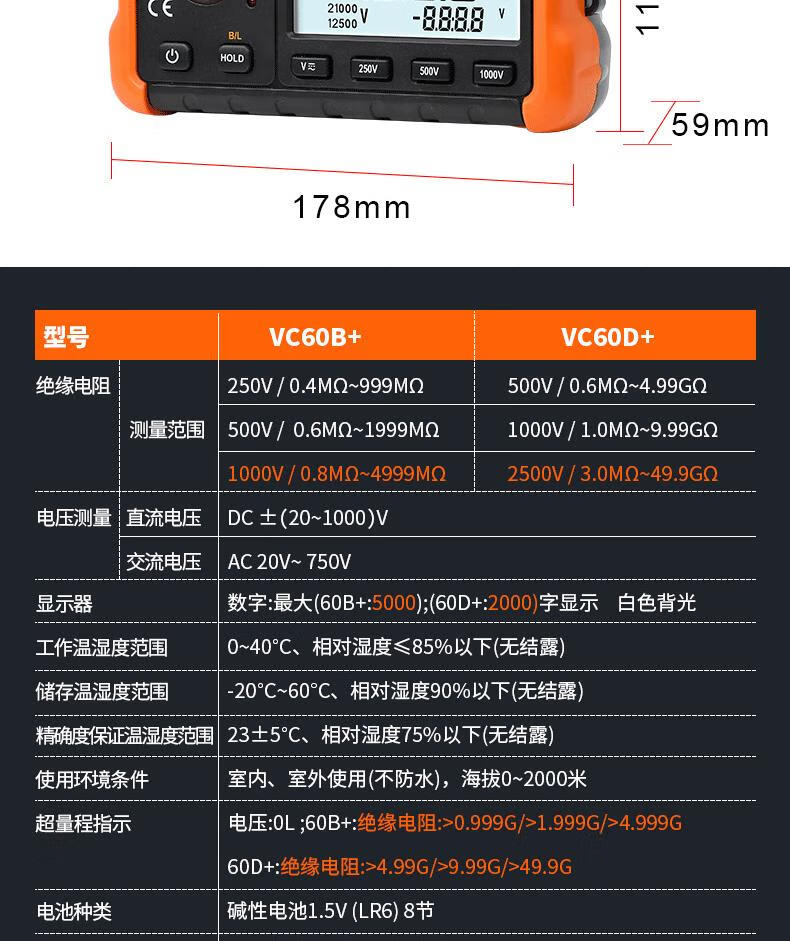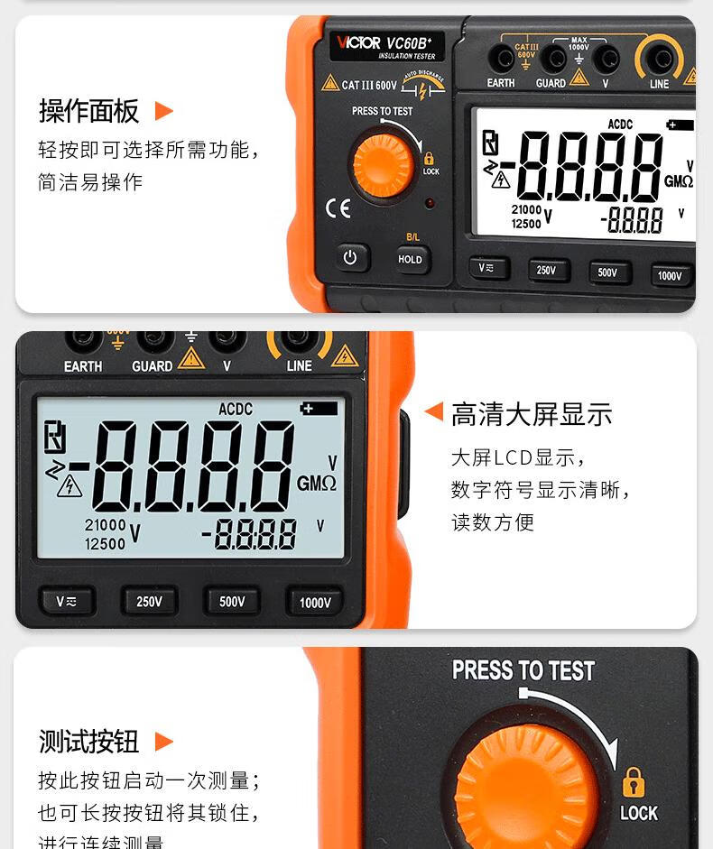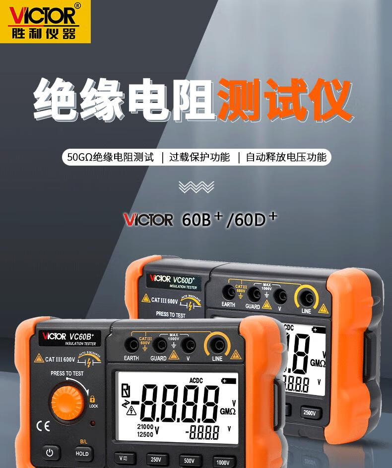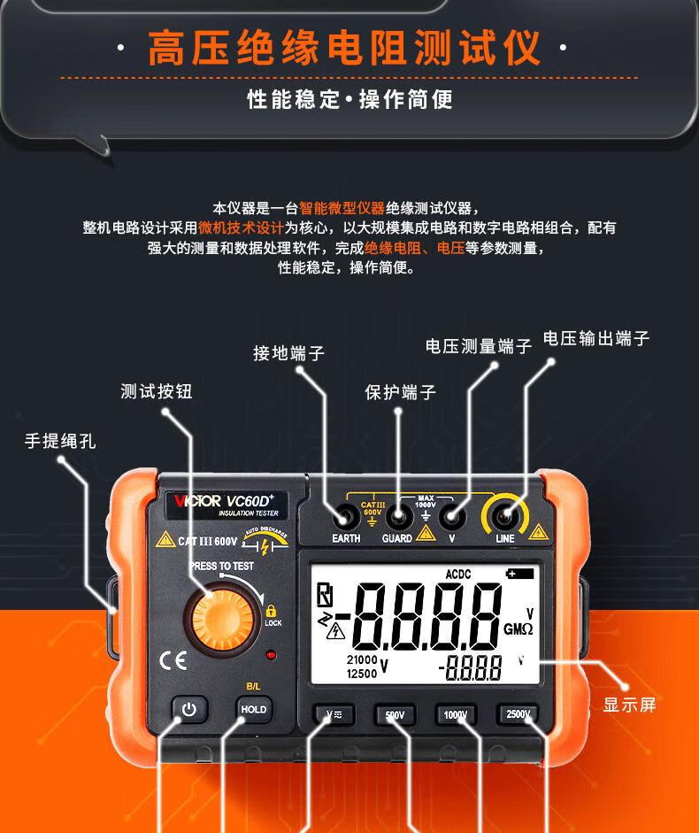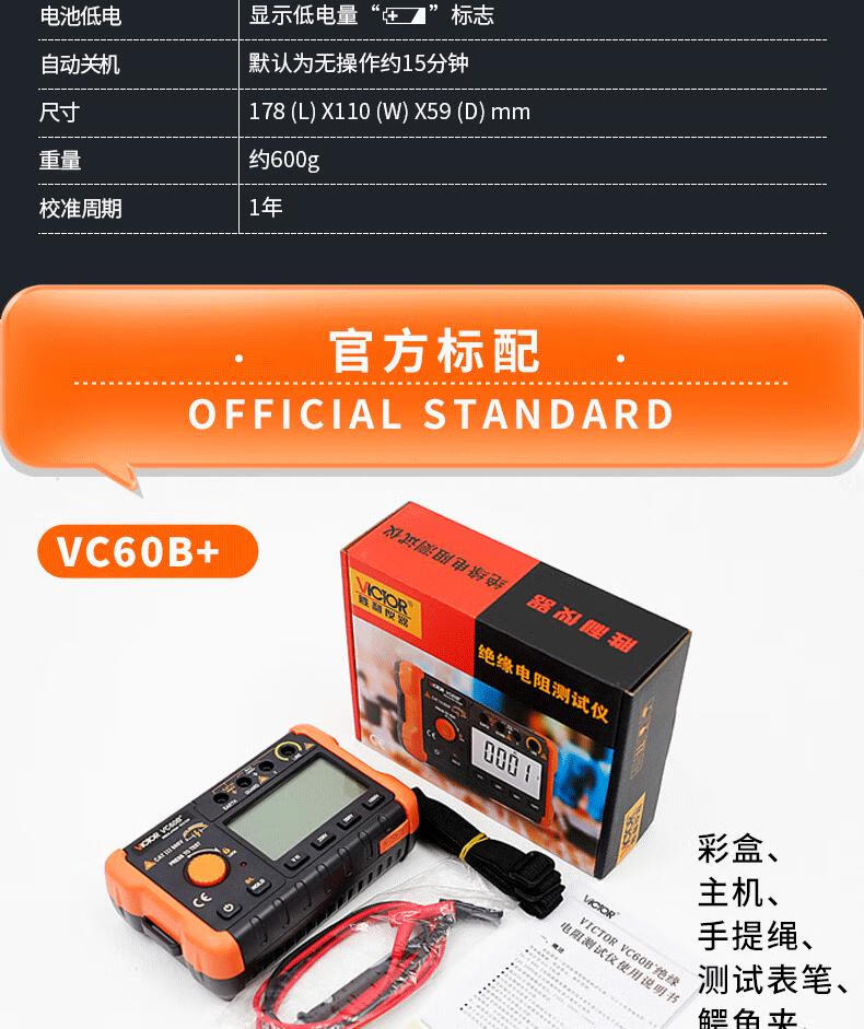 Victory Instrument (VICTOR) digital megohmmeter insulation resistance meter 1000V 2500V 5000V megger VC60D+500V1000V2500V standard configuration