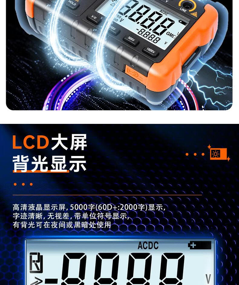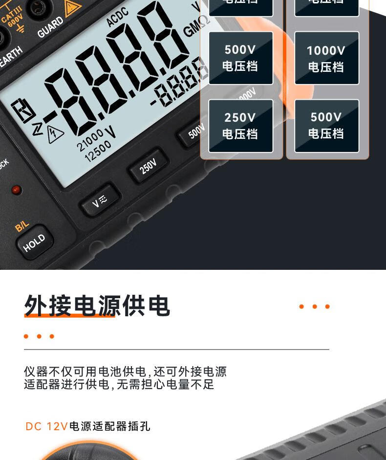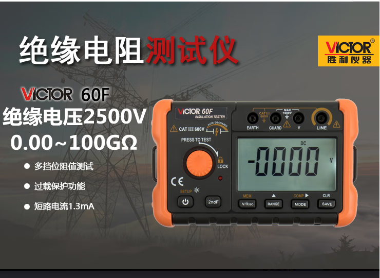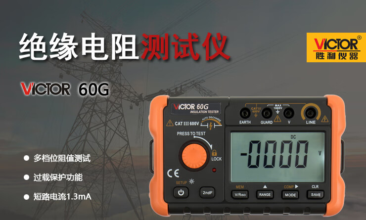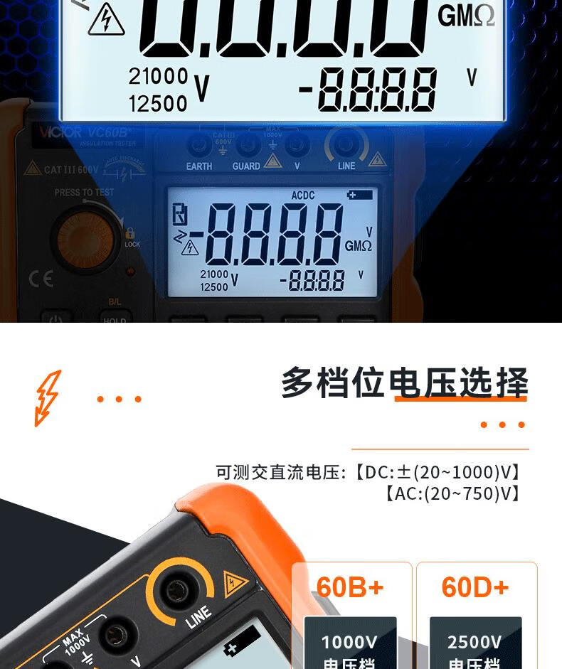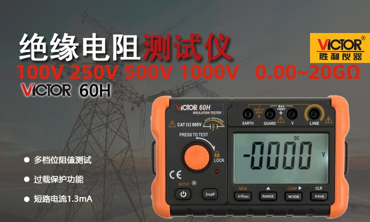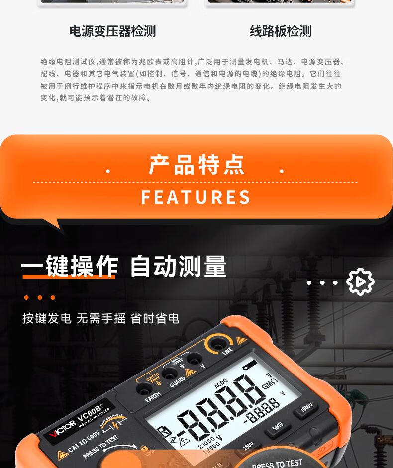 Victory Instrument (VICTOR) digital megohmmeter insulation resistance meter 1000V 2500V 5000V megger VC60D+500V1000V2500V standard configuration
