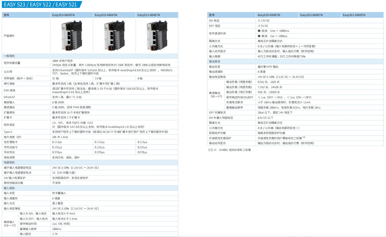 Jifu Huichuan PLC small series Easy301/501/302/502/320/521/522/523-0808TN EASY522-0808TN