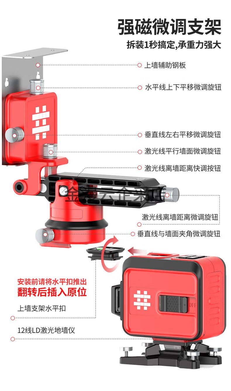 Shijing (SHIJING) 12-line green light wall-mounting instrument, floor-mounting instrument, fine level, laser leveling, outdoor strong light, high-precision, high-end 12-line red light wall-mounting instrument -7829E