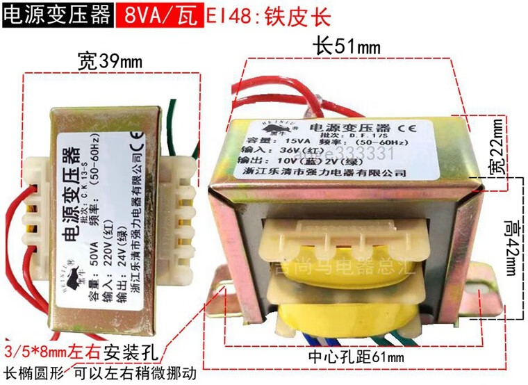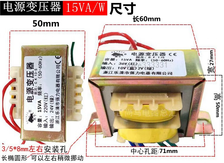 Jingshilan 5W power transformer 380V to dual output 12V power capacity 30 watts 220V50W25W10VA2 5VA voltage can be customized 44*23*35mm