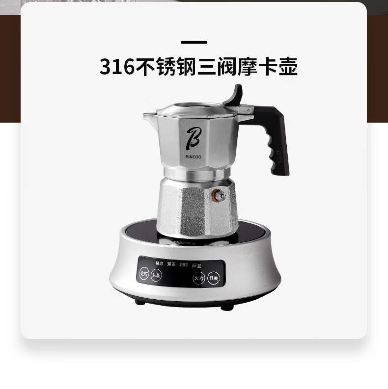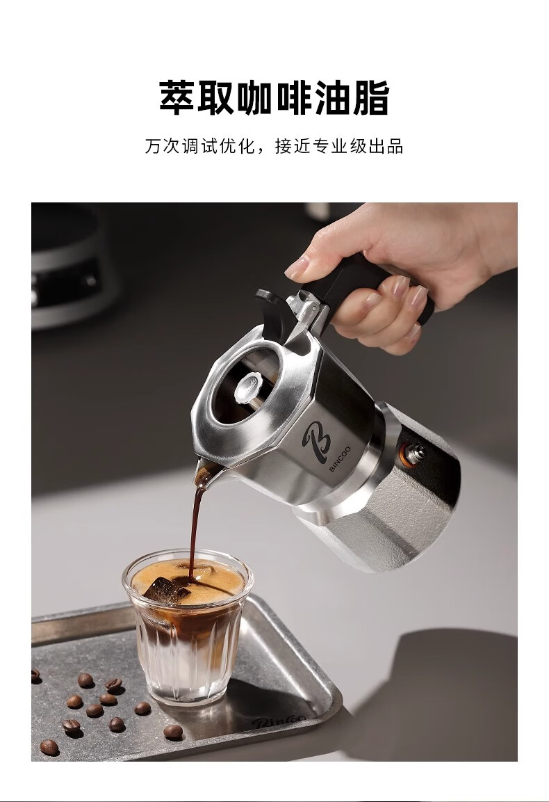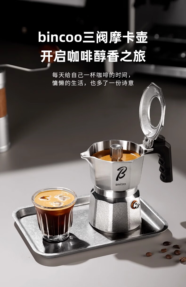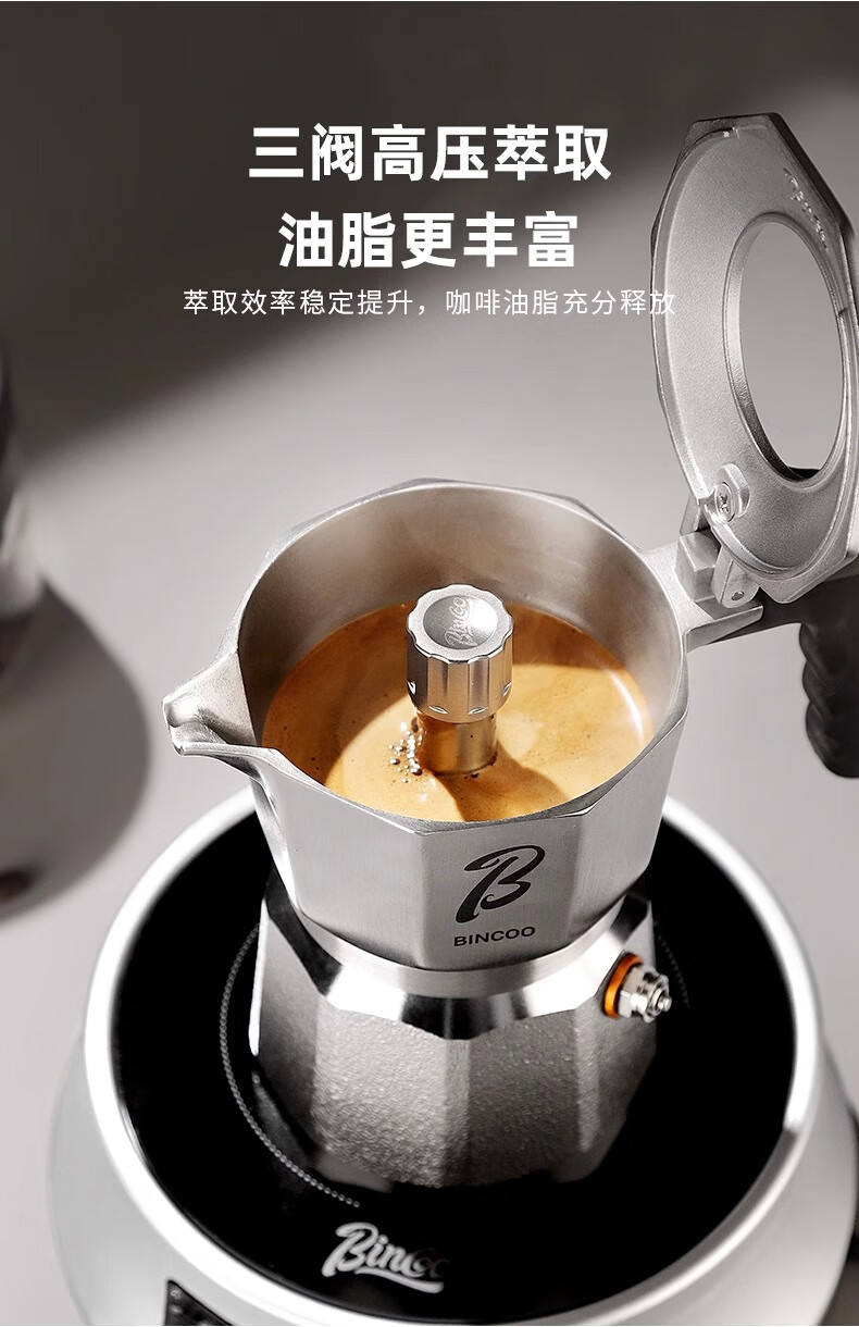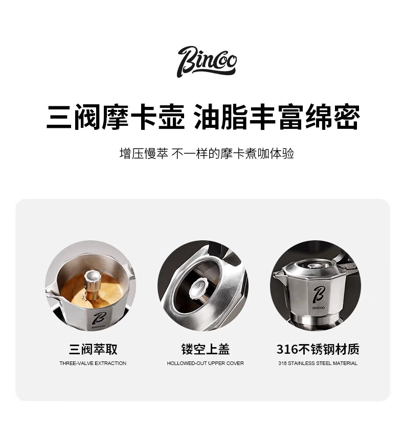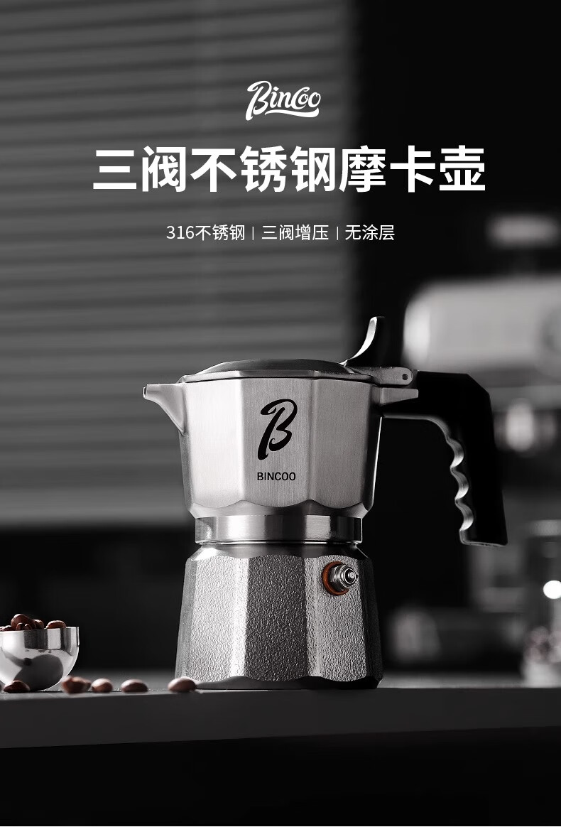 Bincoo316 stainless steel Moka pot three-valve double-valve coffee pot household small espresso coffee machine 316 stainless steel Moka pot-2 cups