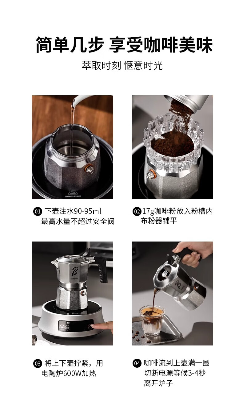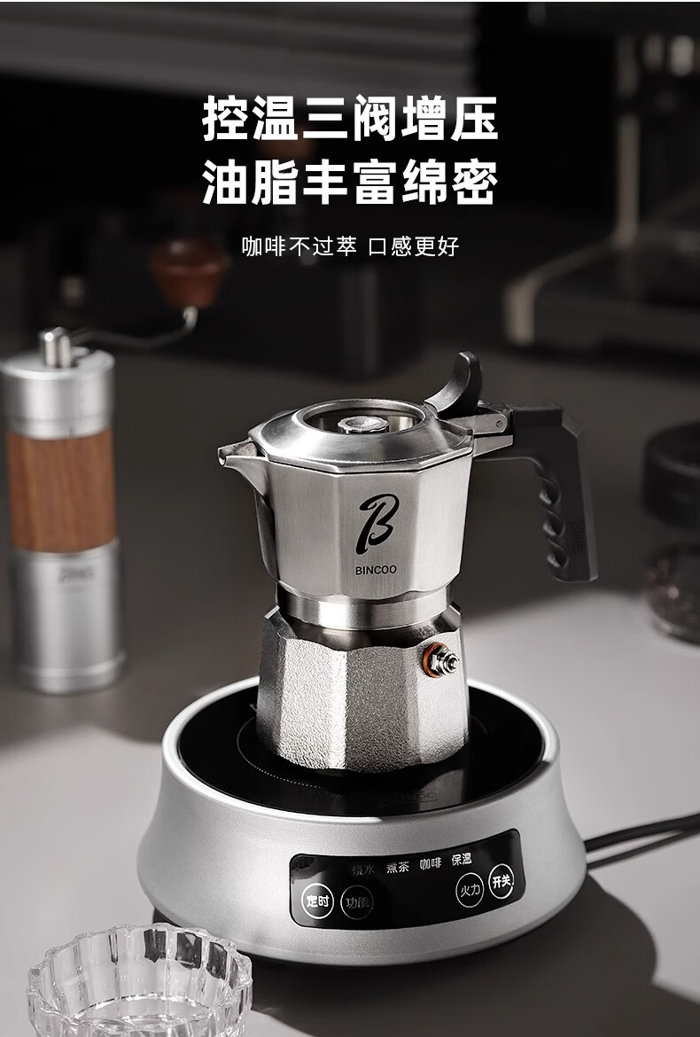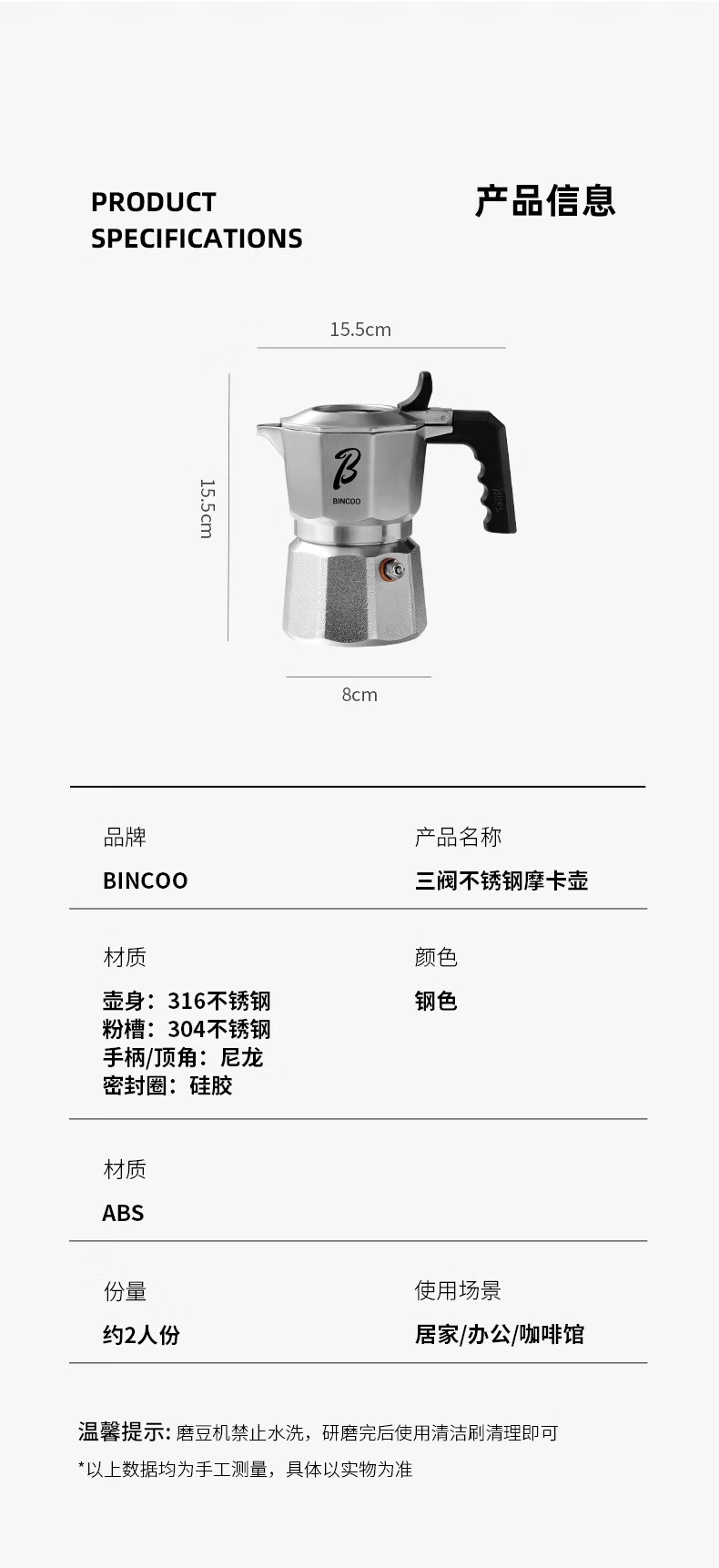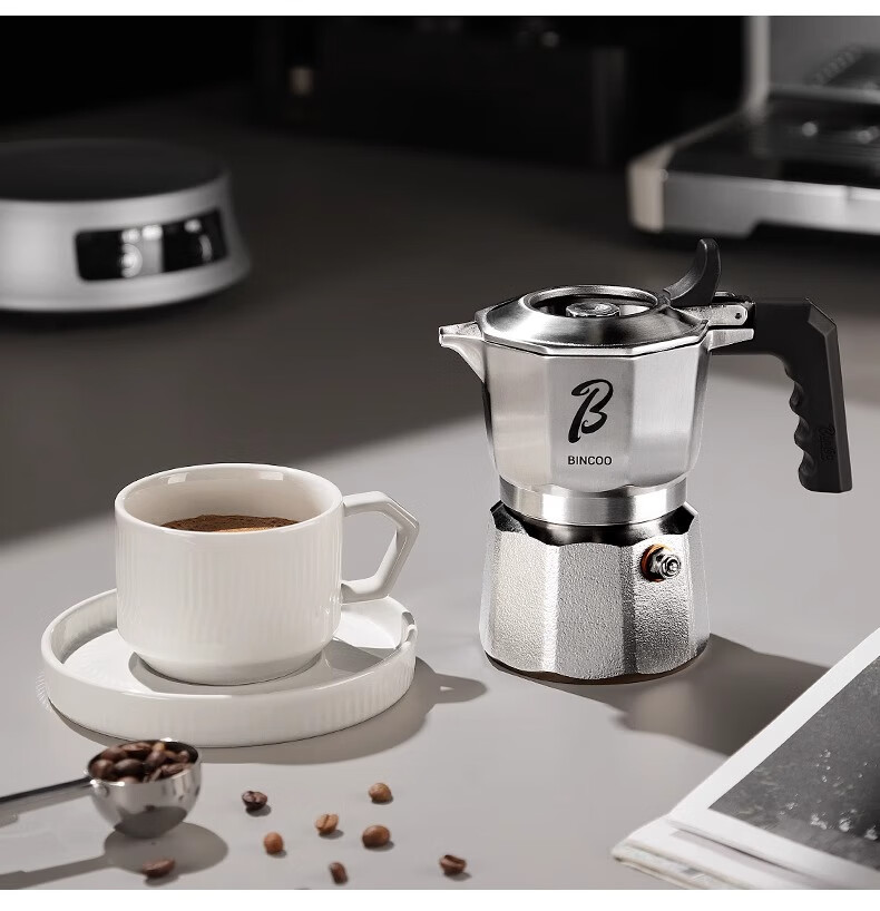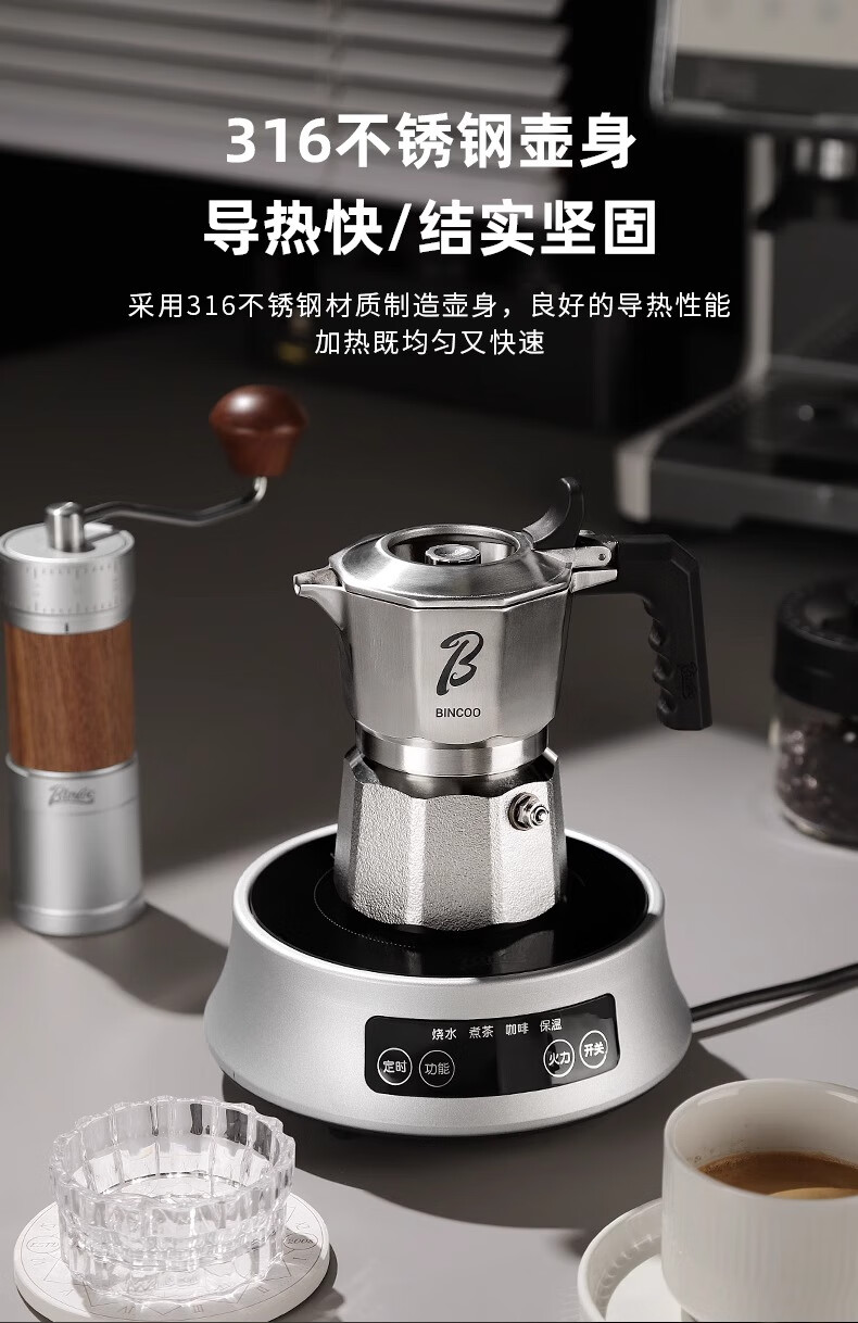 Bincoo316 stainless steel Moka pot three-valve double-valve coffee pot household small espresso coffee machine 316 stainless steel Moka pot-2 cups