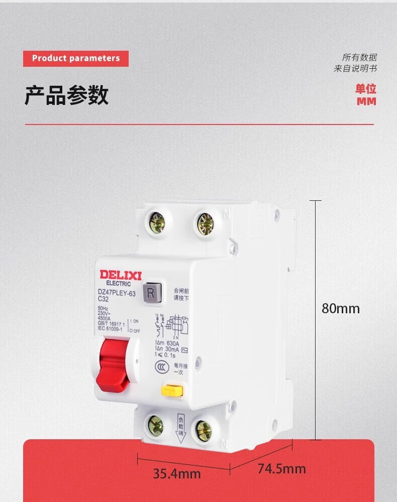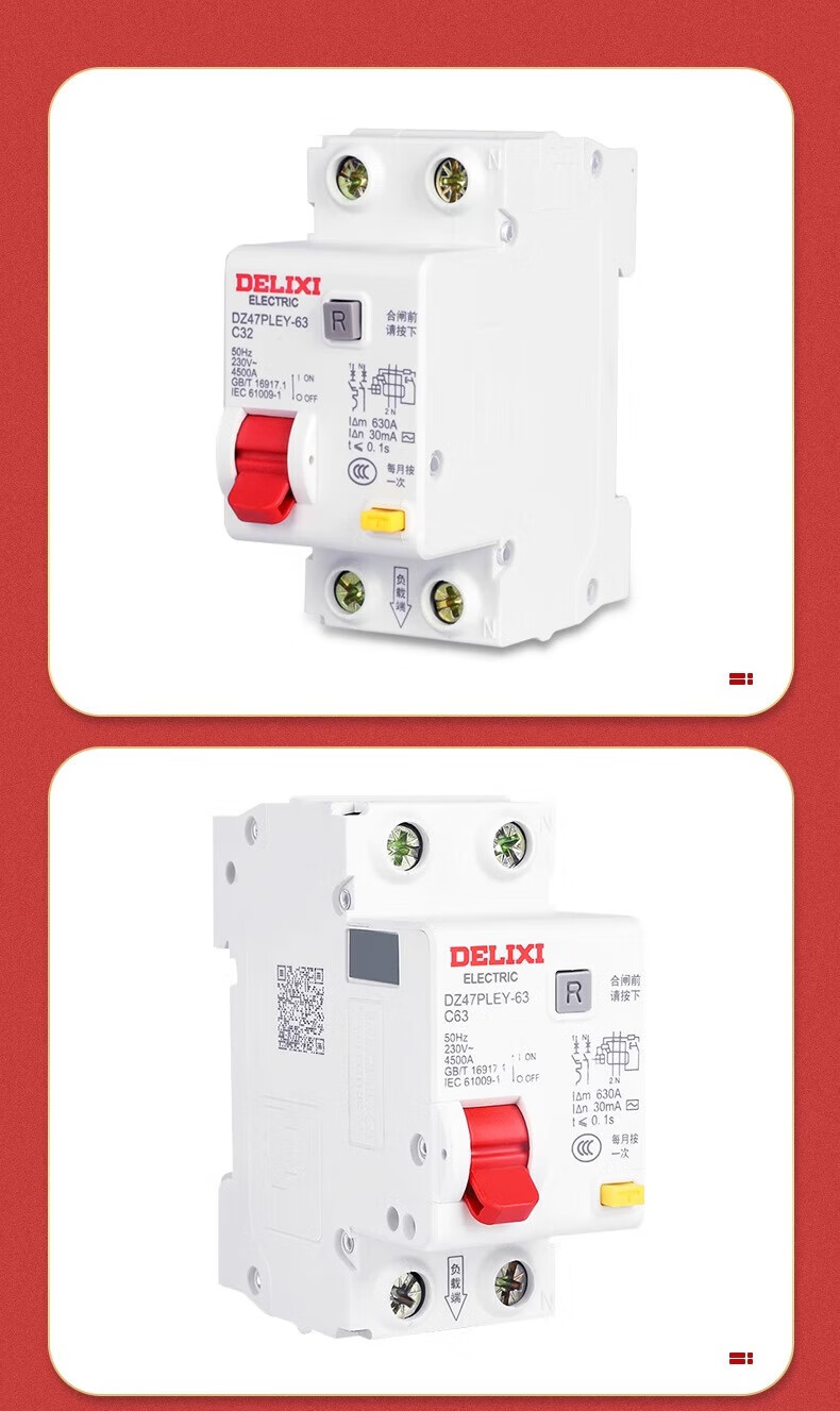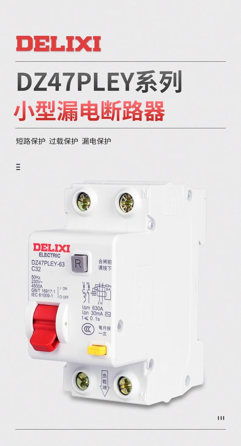 Delixi Electric Delixi double in and double out leakage protector DZ47PLEY leakage protector double in and double out design 32A 1p+n