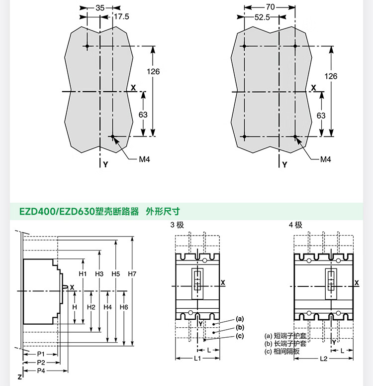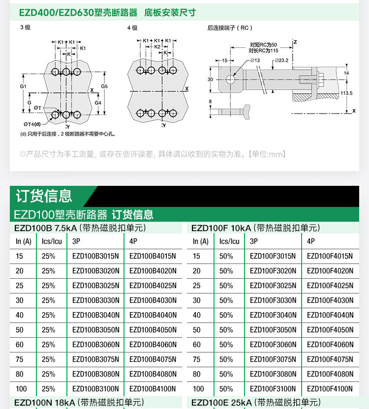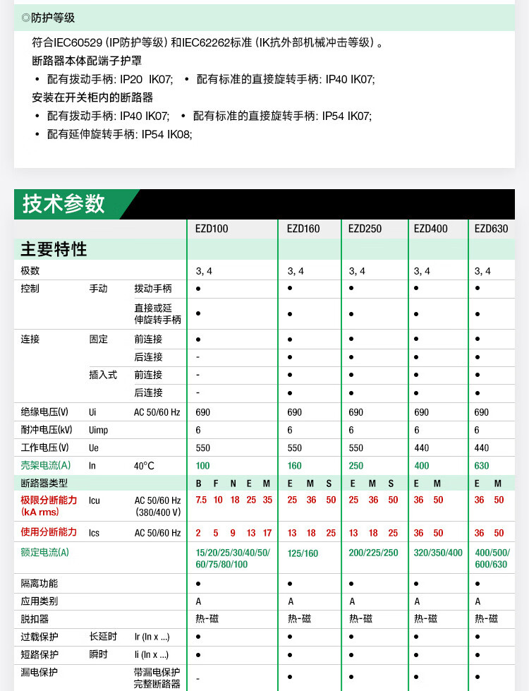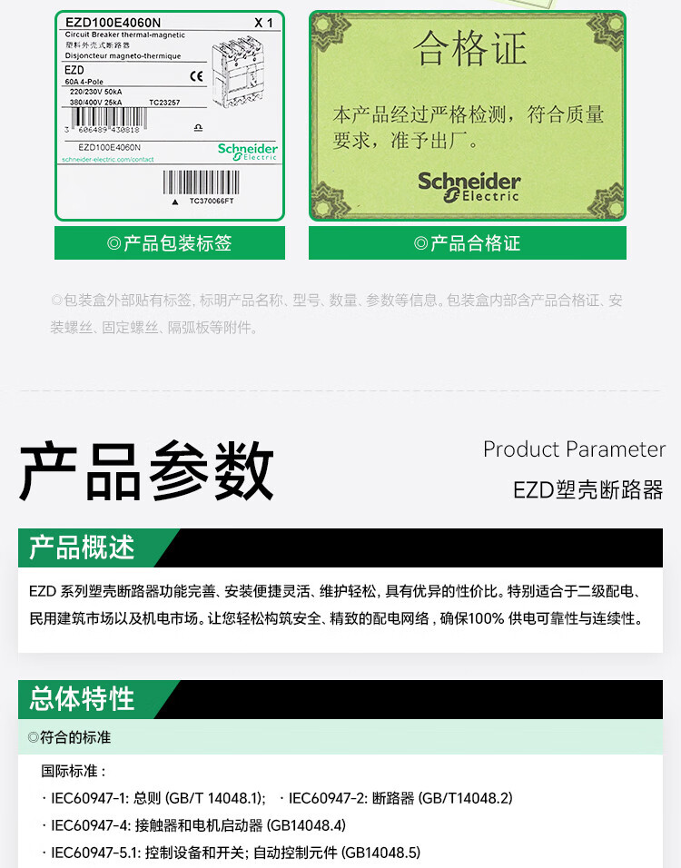 Schneider plastic case circuit breaker air switch three-phase 3P15A30A60A breaking 10kA EZD100N3080N breaking 10kA 16A 4p