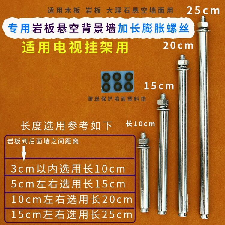 Bun Peng extended expansion screw 15cm 20cm TV hanging bracket rock plate suspended background wall 8mm iron 1 6 pieces long 15cm with protective wall plastic sheet