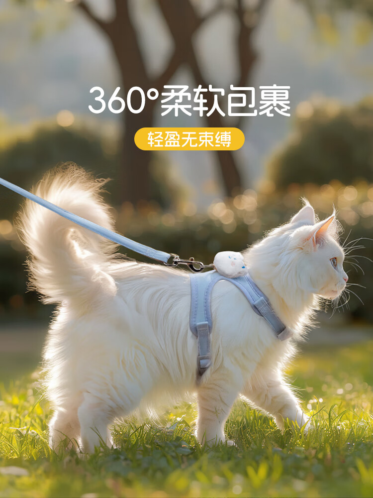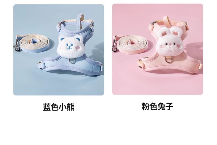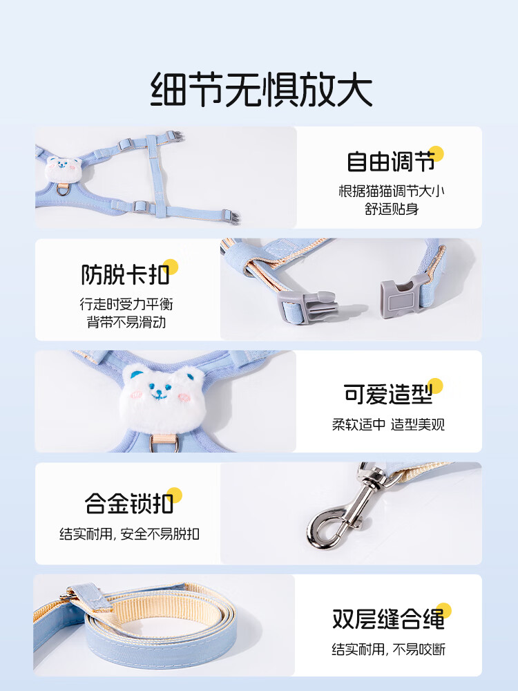 Qi Oh Cat Leash, Adjustable Cat Walking Rope, Cute Kitten Harness for Outings, Small Dog Pet Supplies, Little Bear - Blue, Vest Style, Double Lock, Anti-Escape M - Recommended: 7-15 catties. Specific details are subject to bust size.