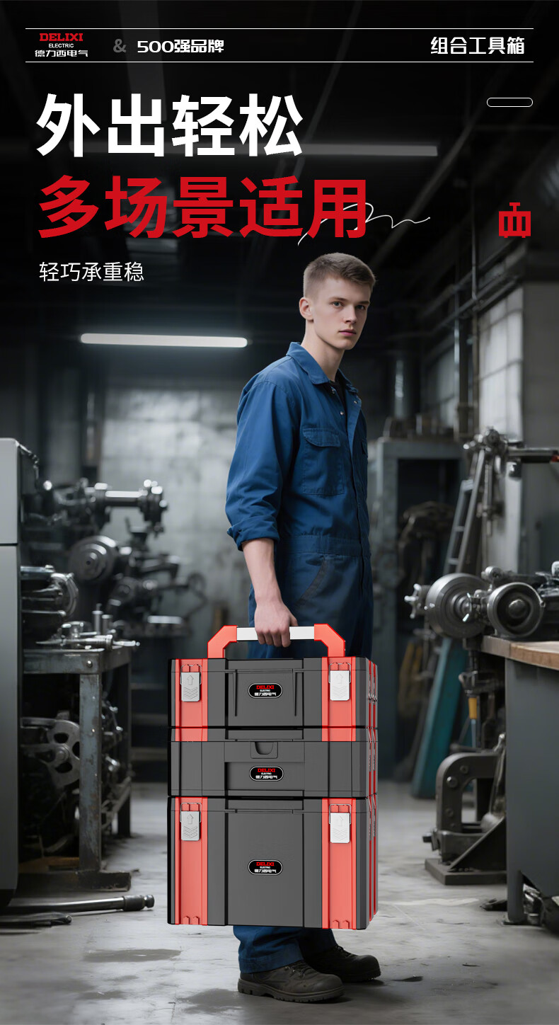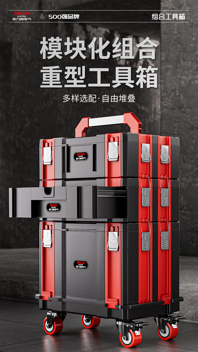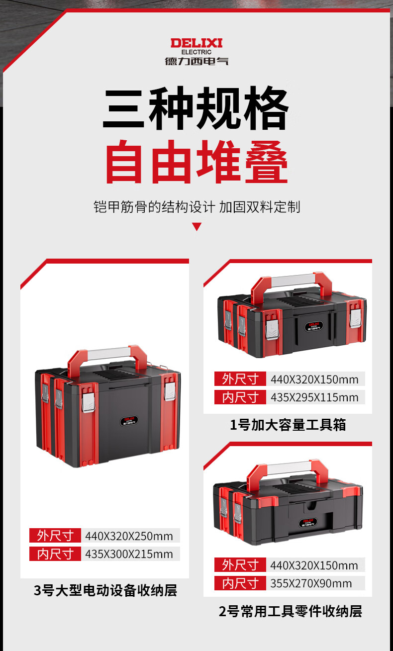 DELIXI ELECTRIC multi-function hardware tool box stackable storage box storage box stacking storage box household set B combination (No. 1 + No. 3)