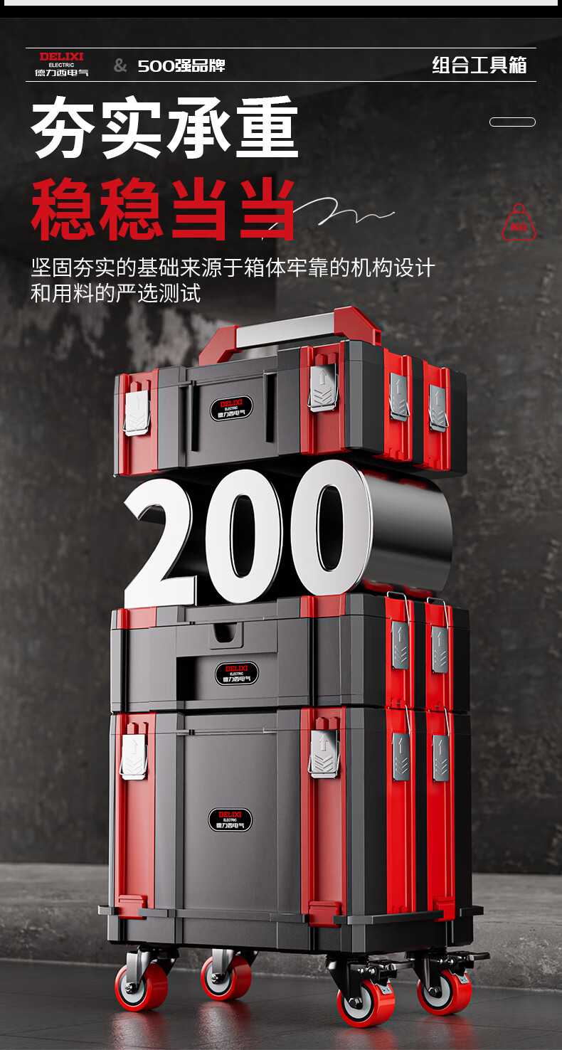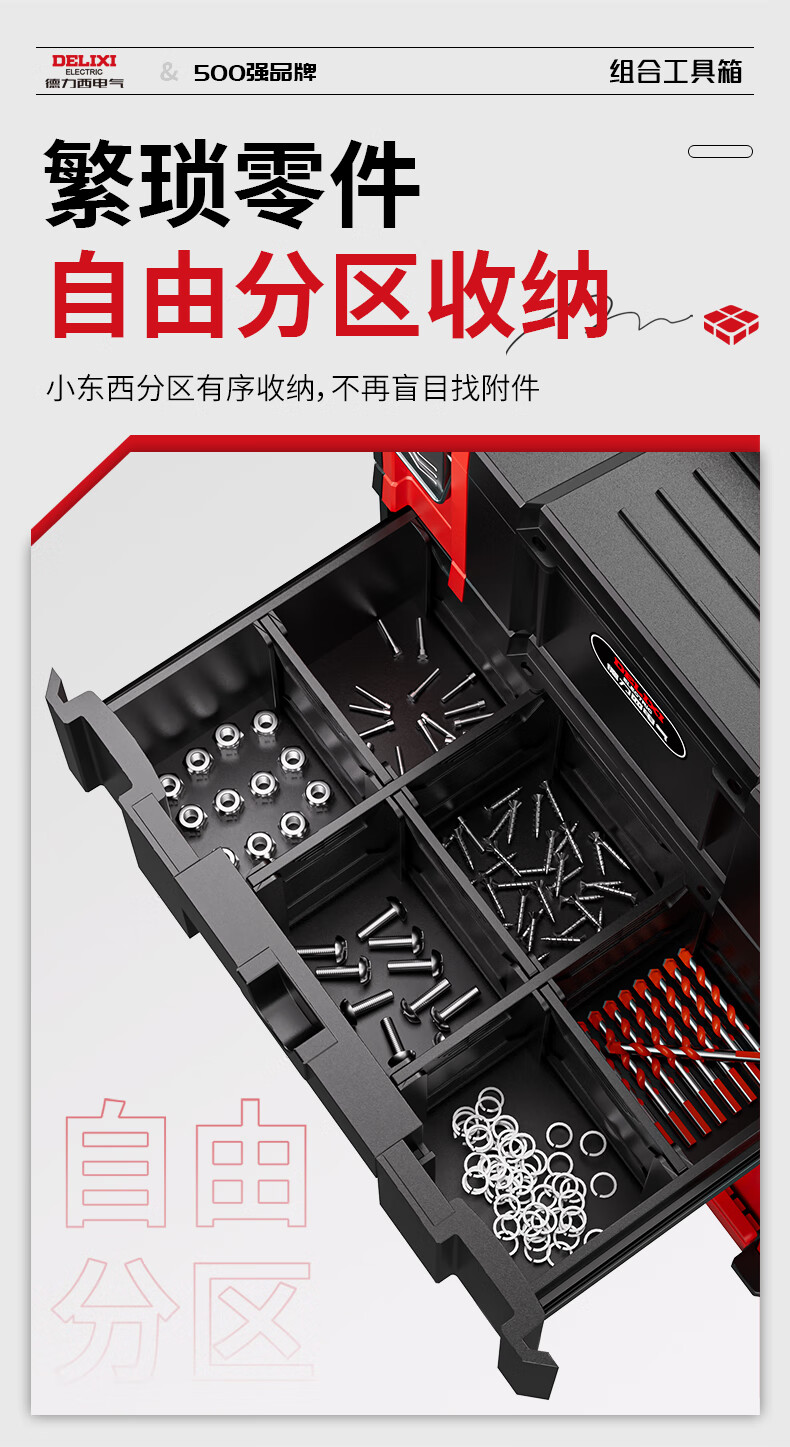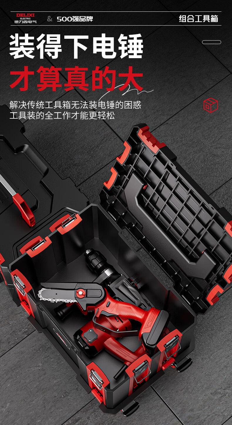 DELIXI ELECTRIC multi-function hardware tool box stackable storage box storage box stacking storage box household set B combination (No. 1 + No. 3)