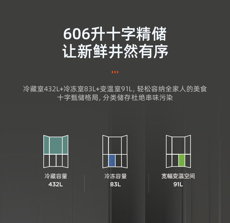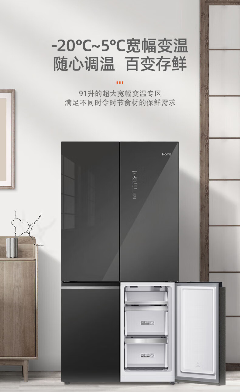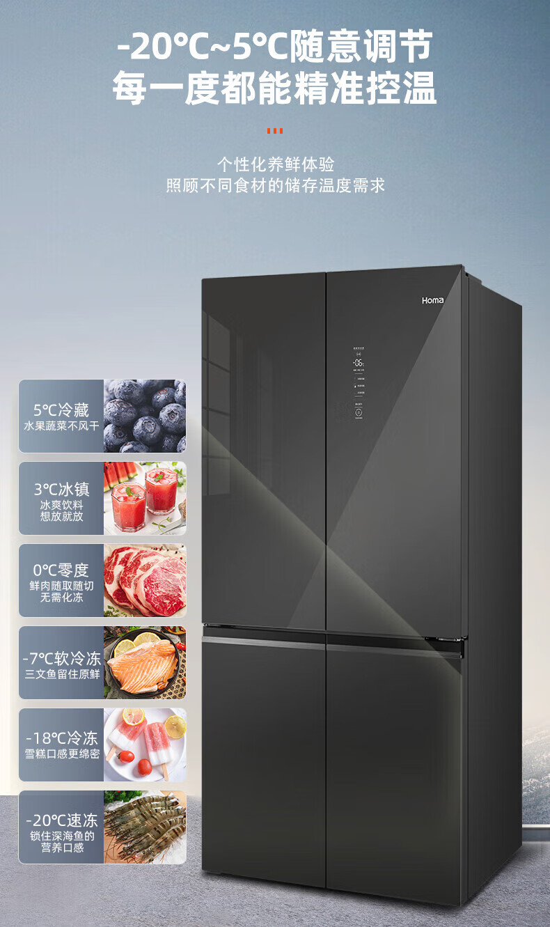 Homa 606 liter large capacity four-door double-door household refrigerator first-class dual-frequency AG sterilization + cryogenic quick freezing standard