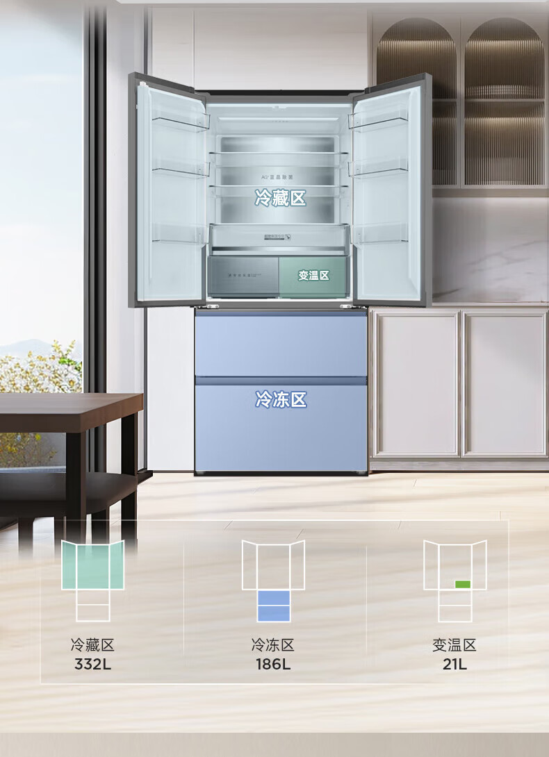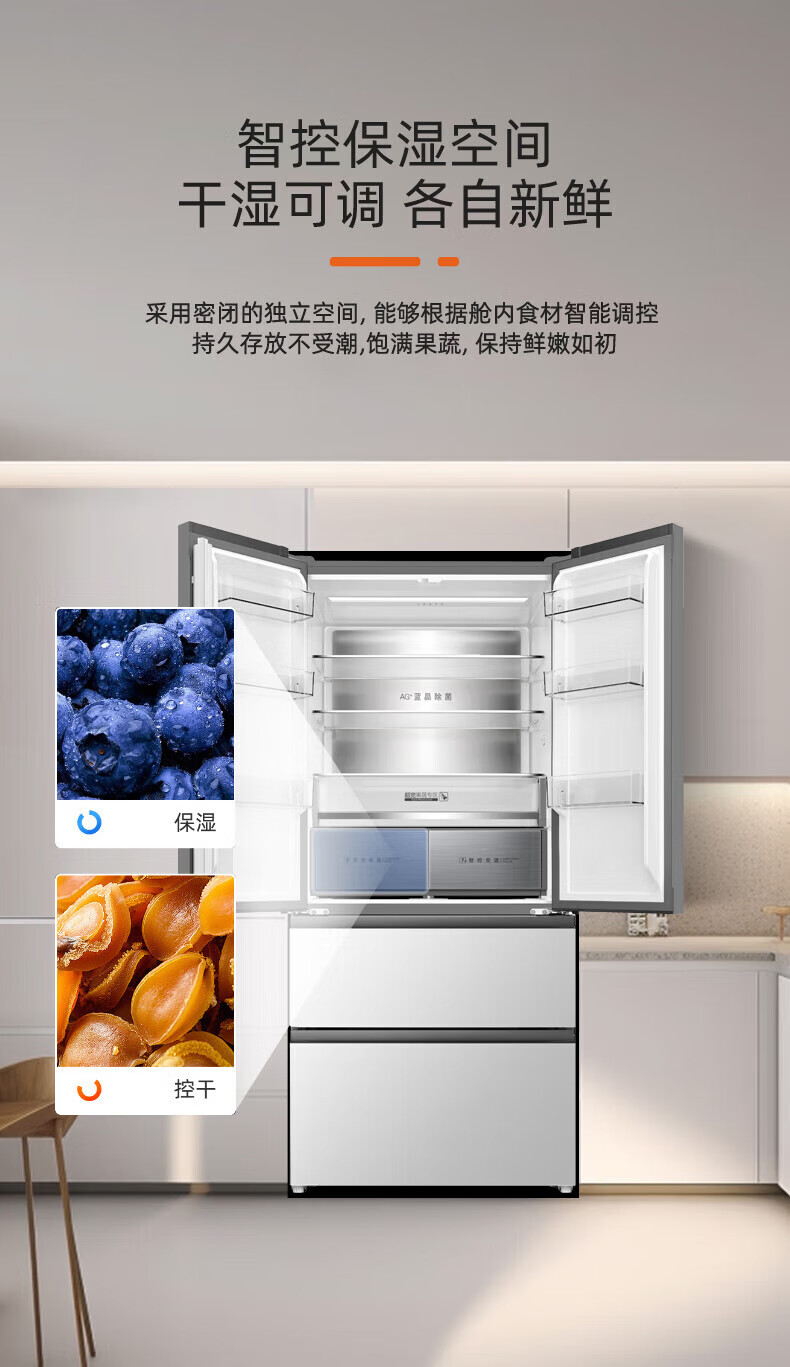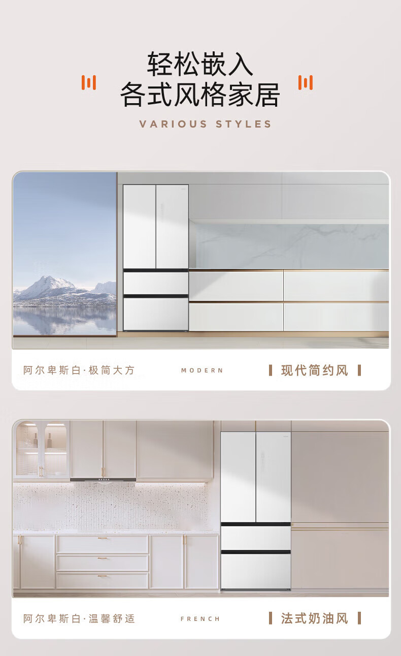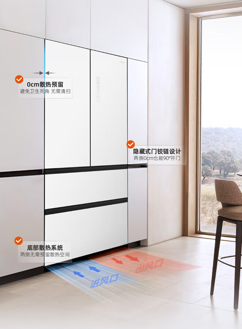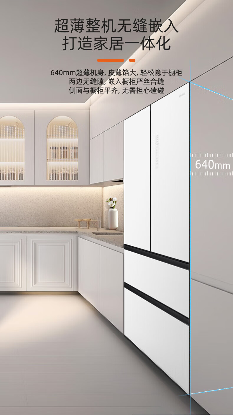 Homa 539L French multi-door zero-embedded refrigerator ultra-thin embedded frost-free refrigerator intelligent moisturizing + deep freezing quick freezing-40 standard