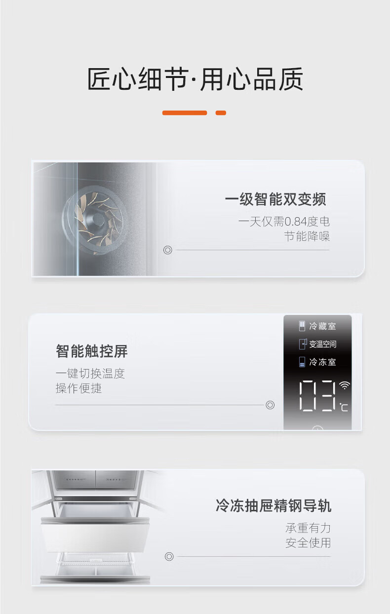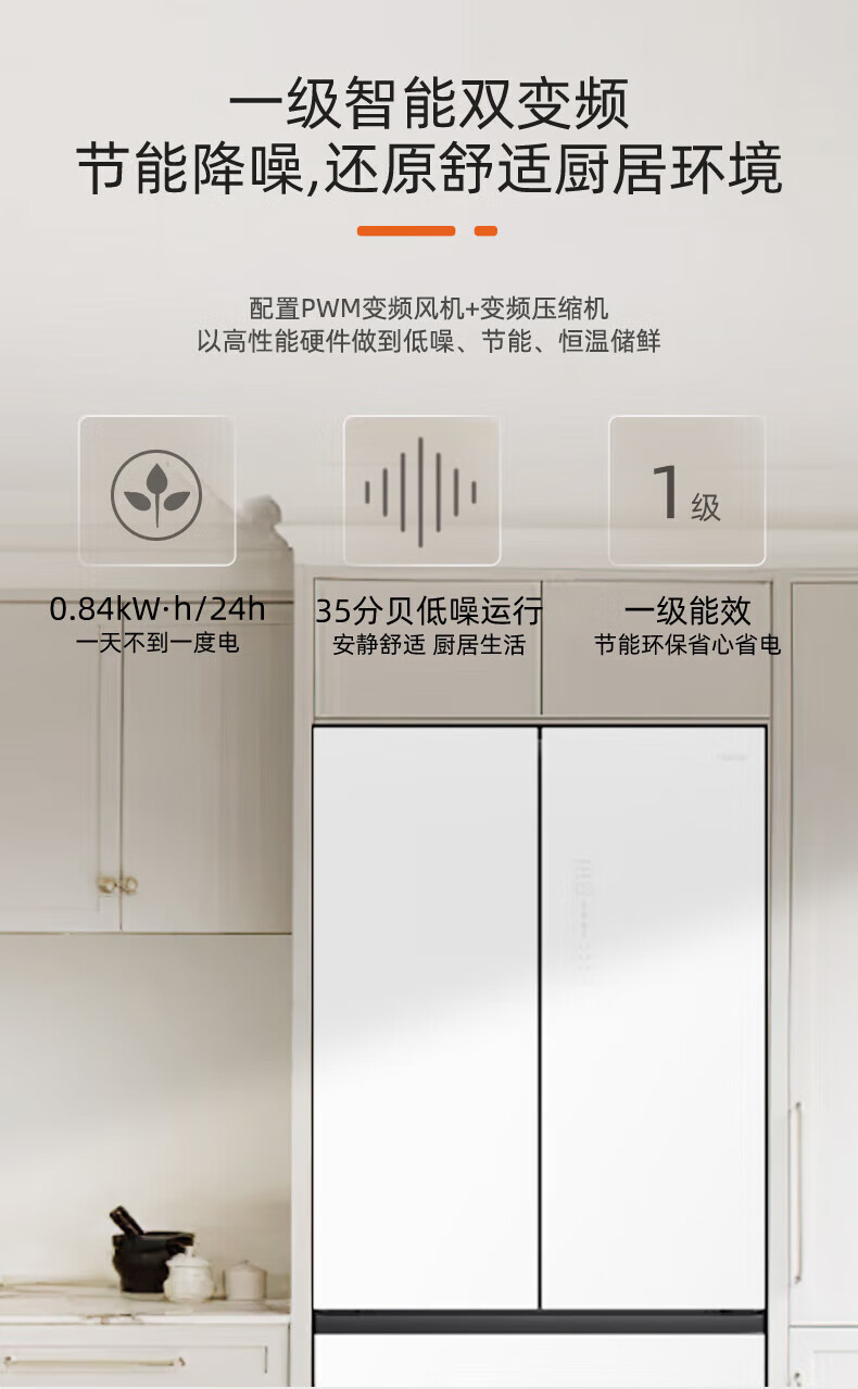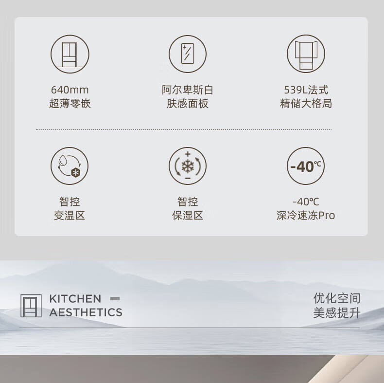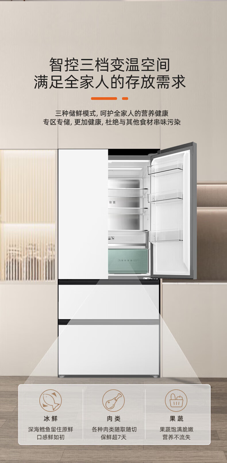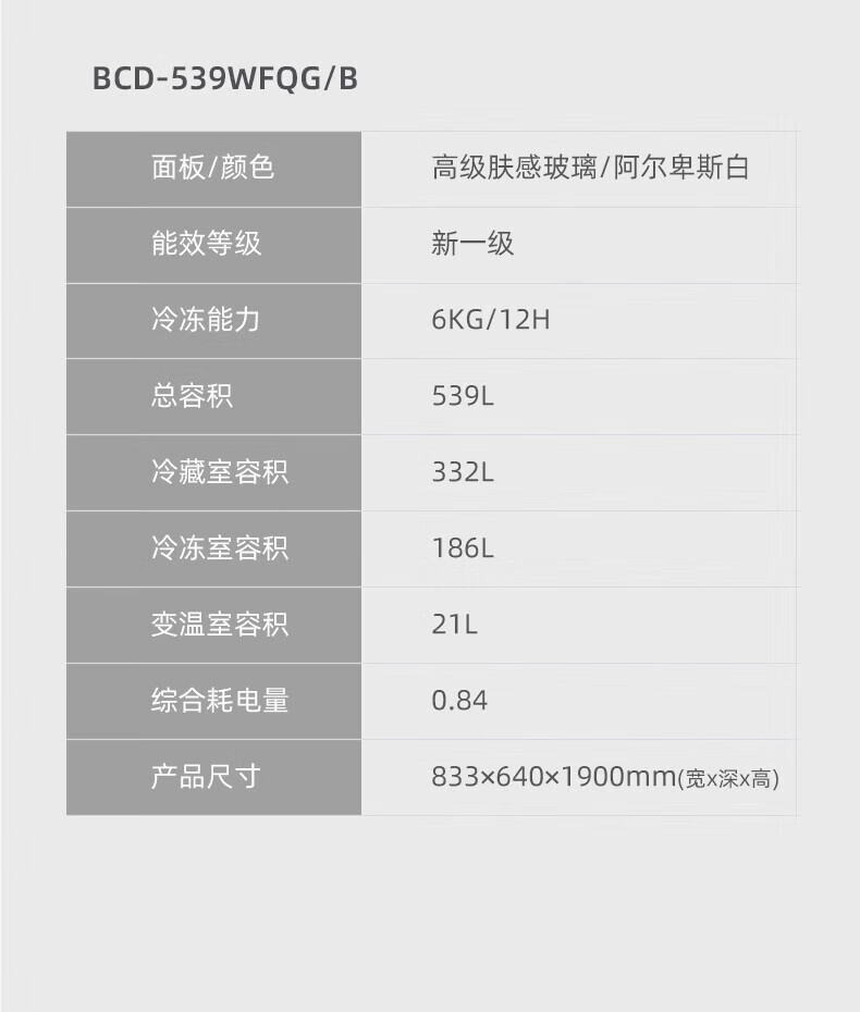 Homa 539L French multi-door zero-embedded refrigerator ultra-thin embedded frost-free refrigerator intelligent moisturizing + deep freezing quick freezing-40 standard