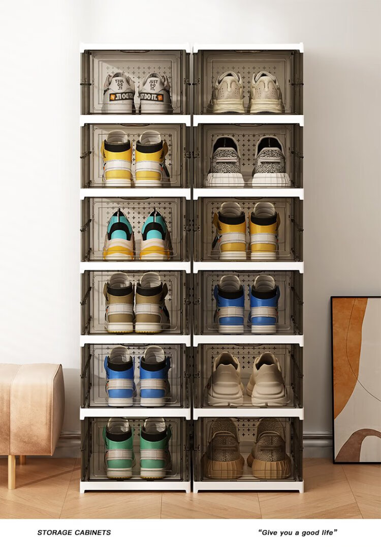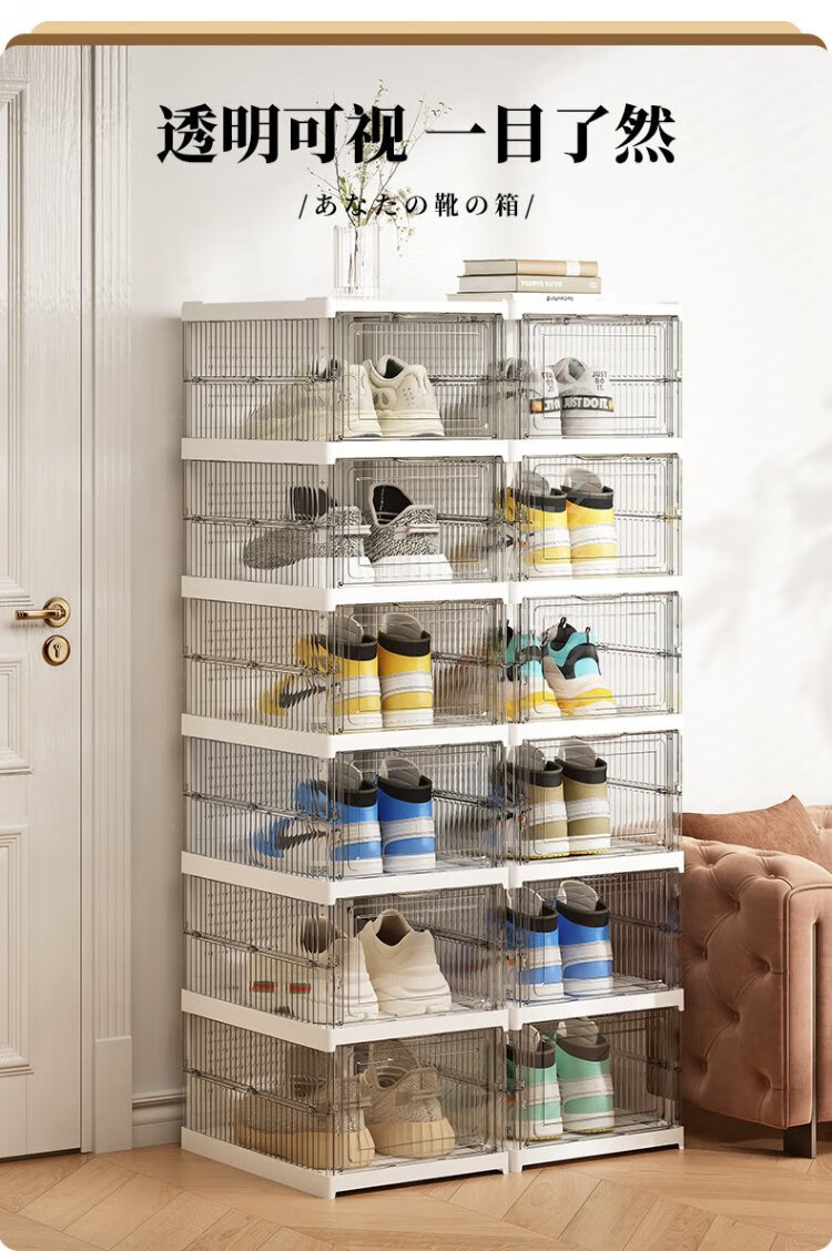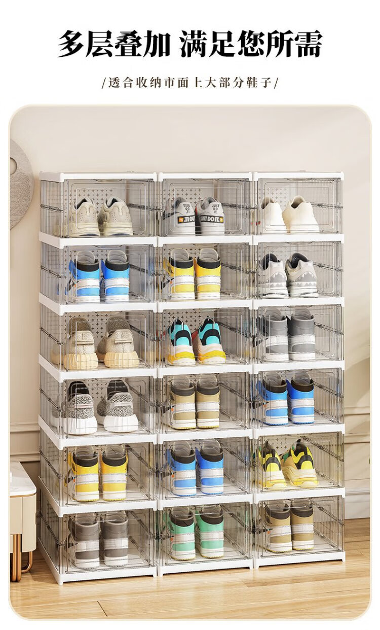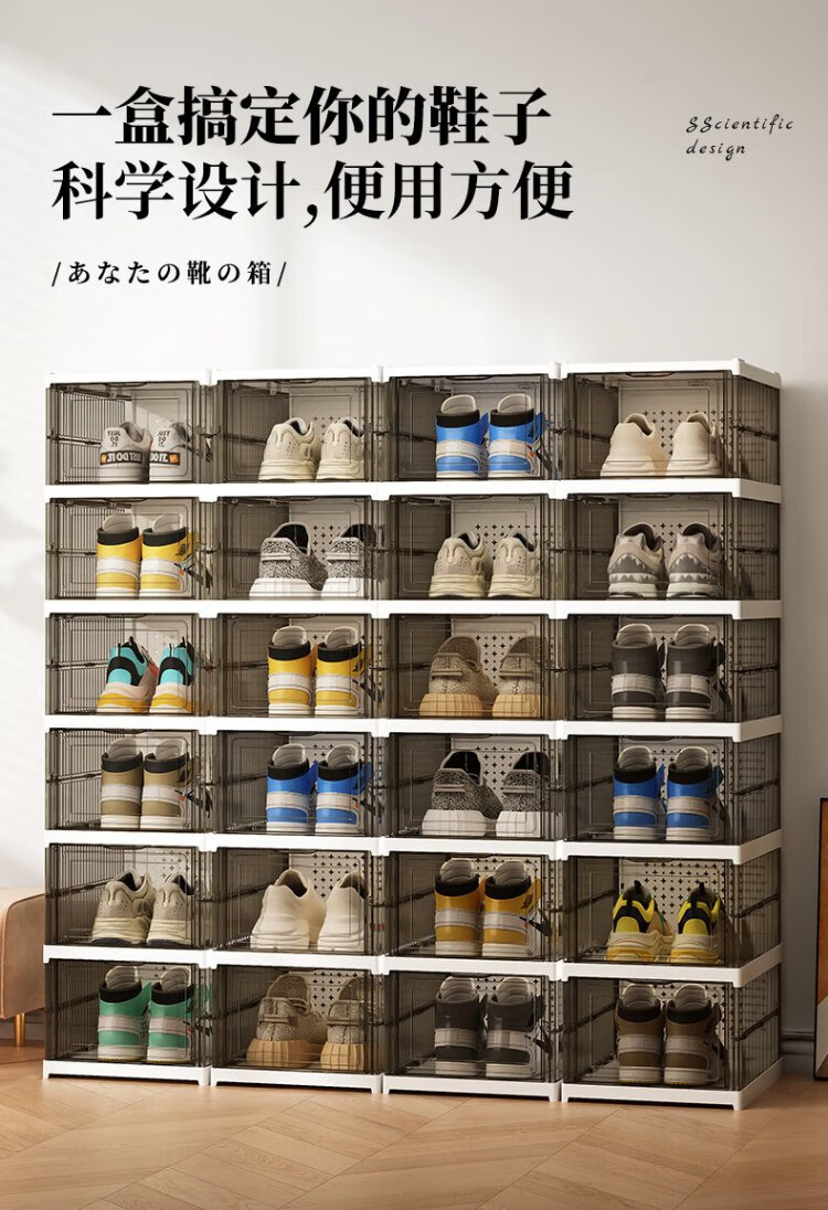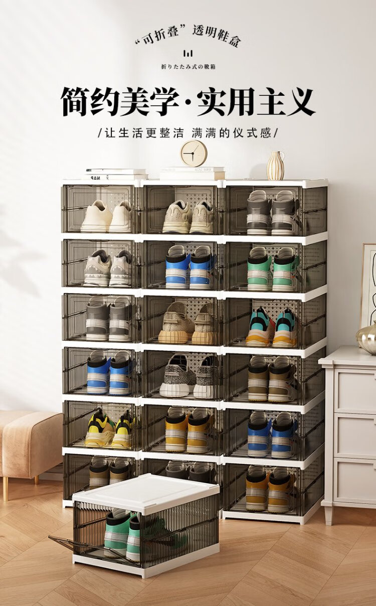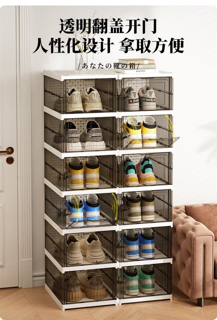 LINGX BOX sporadic box shoe box installation-free door shoe cabinet foldable storage transparent visible dust-proof shoe rack AJ basketball shoe all-in-one cabinet best-selling HOT transparent gray 12 pieces