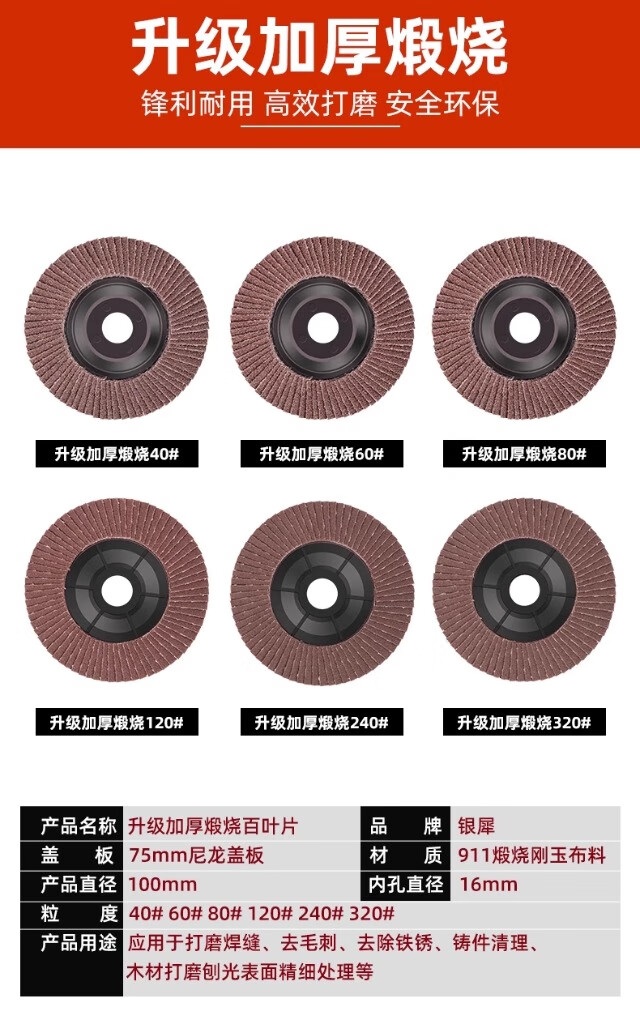 Silver rhinoceros louver wheel grinding wheel grinding wheel polishing louver blade thousand blade angle grinder surface polishing sheet frosting artifact enlarged plastic cover high quality red sand (60 mesh)