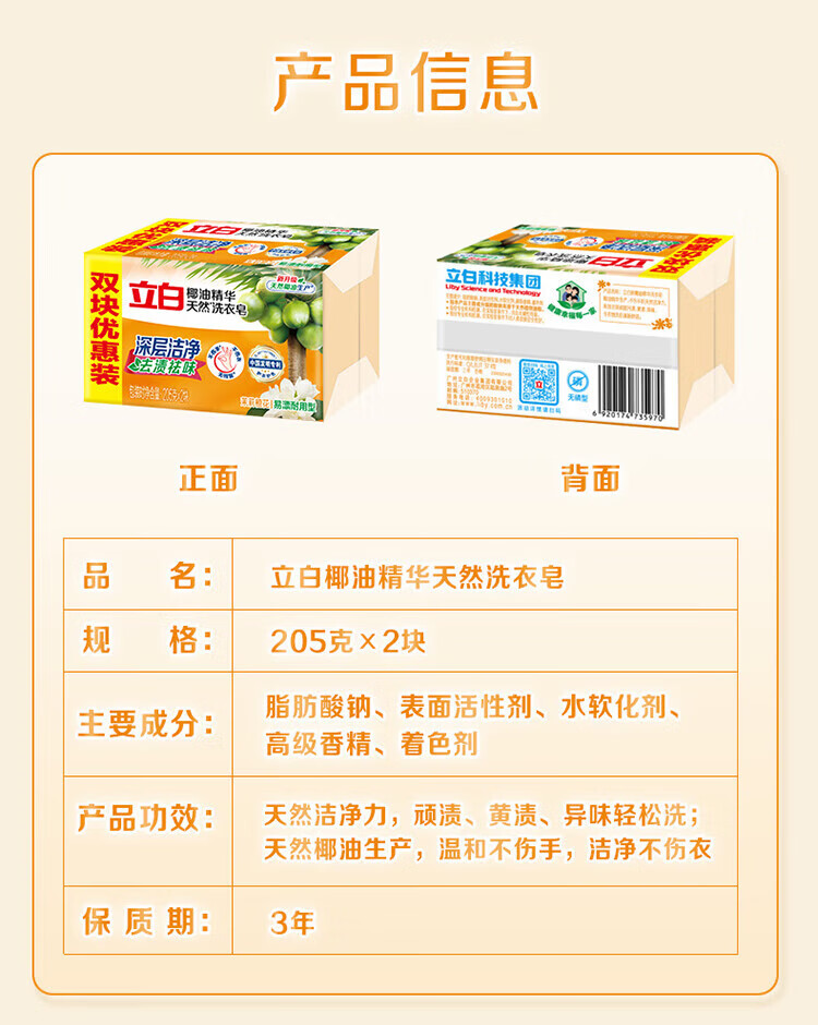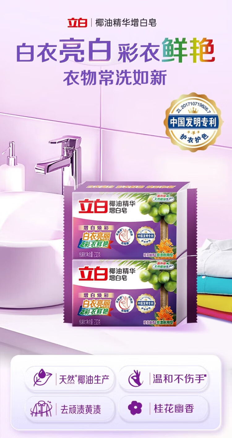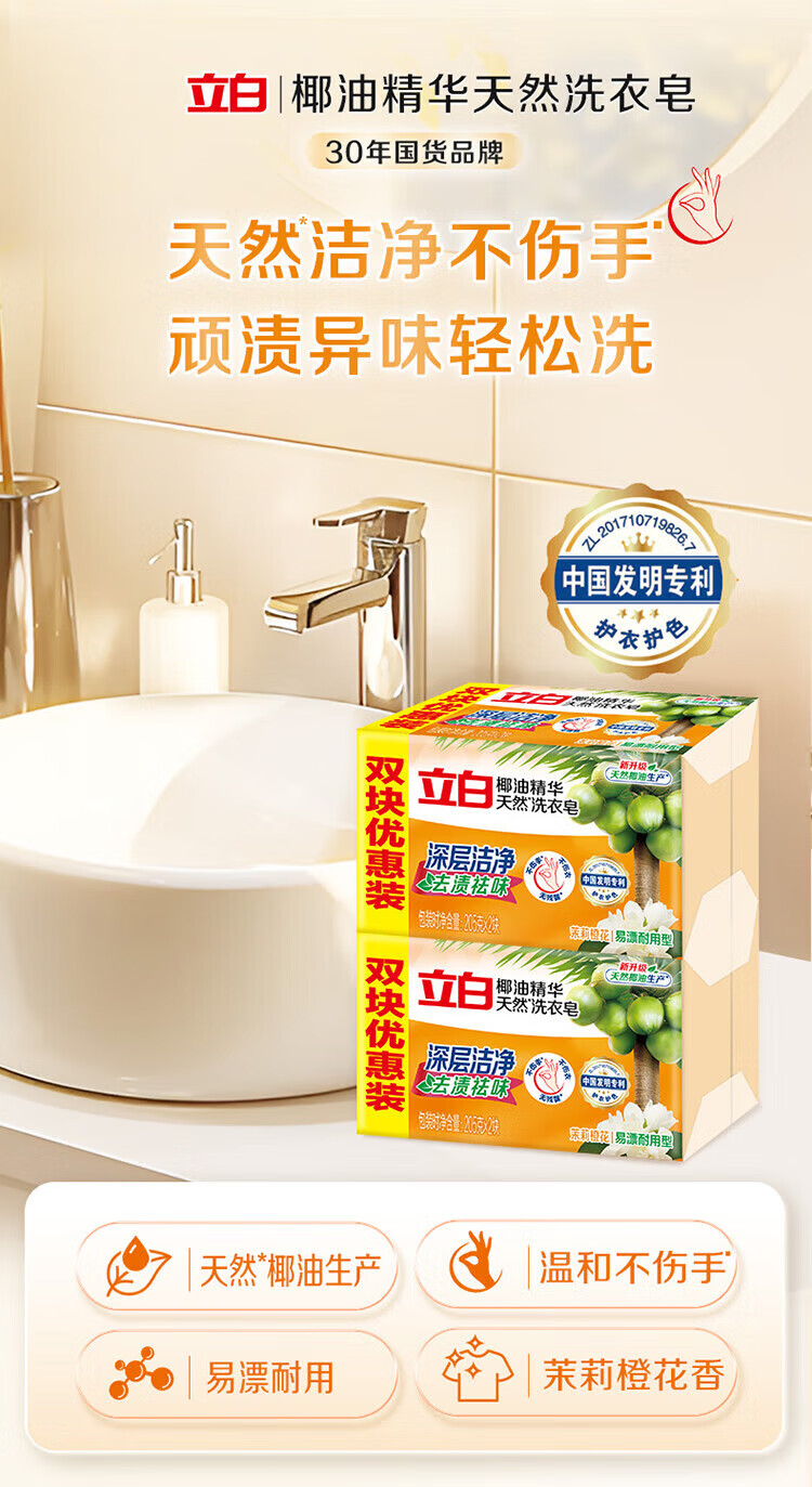 Liby Laundry Soap Coconut Oil Soap Household Large Block Soap Deep Stain Remover Cuff and Neck Suitable for Coconut Oil Transparent Soap 4 Pack