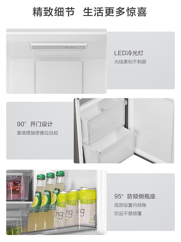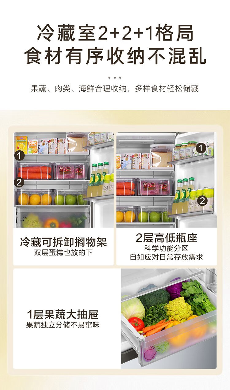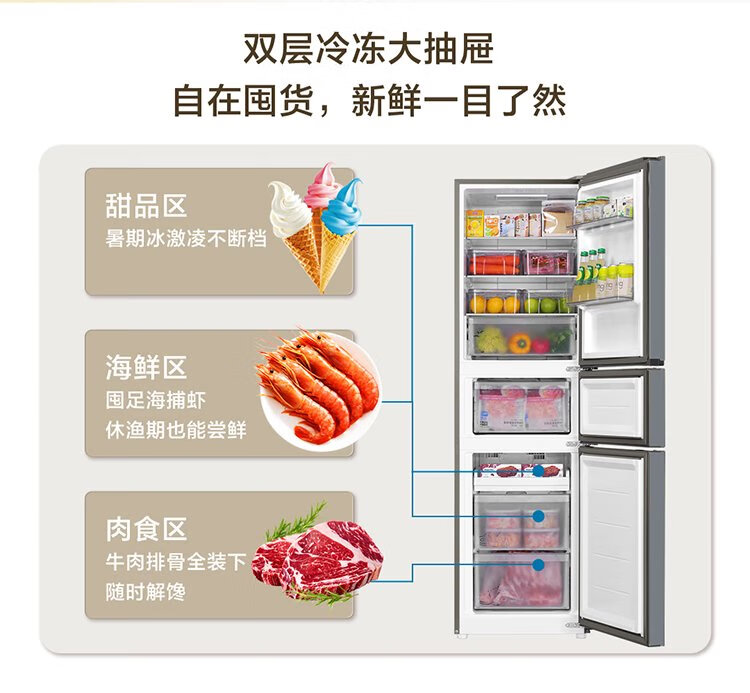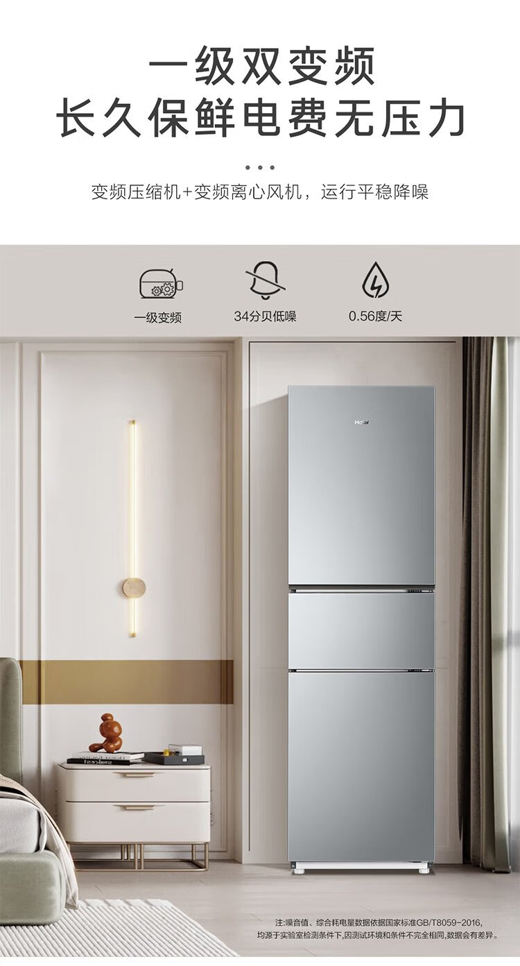 Haier refrigerator 226 liters three-door multi-door refrigerator ultra-thin first-class energy efficiency air-cooled frost-free -30 cryogenic quick-freezing frequency conversion energy-saving household small capacity refrigerator 226 liters first-class energy saving + food-grade safety material + healthy black gold purification
