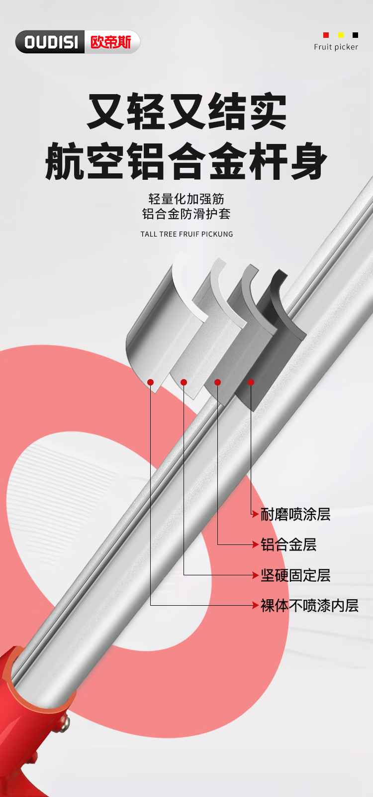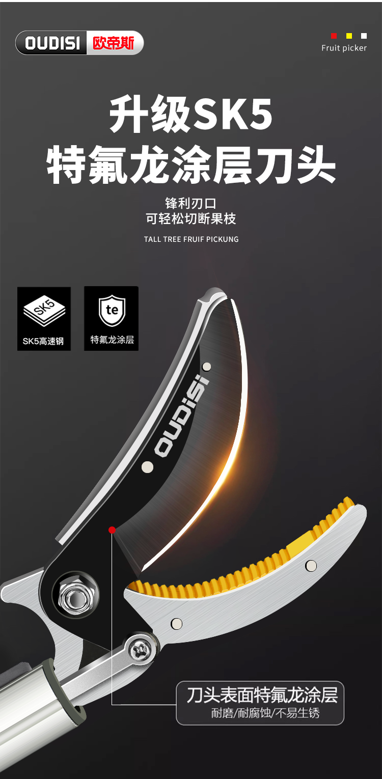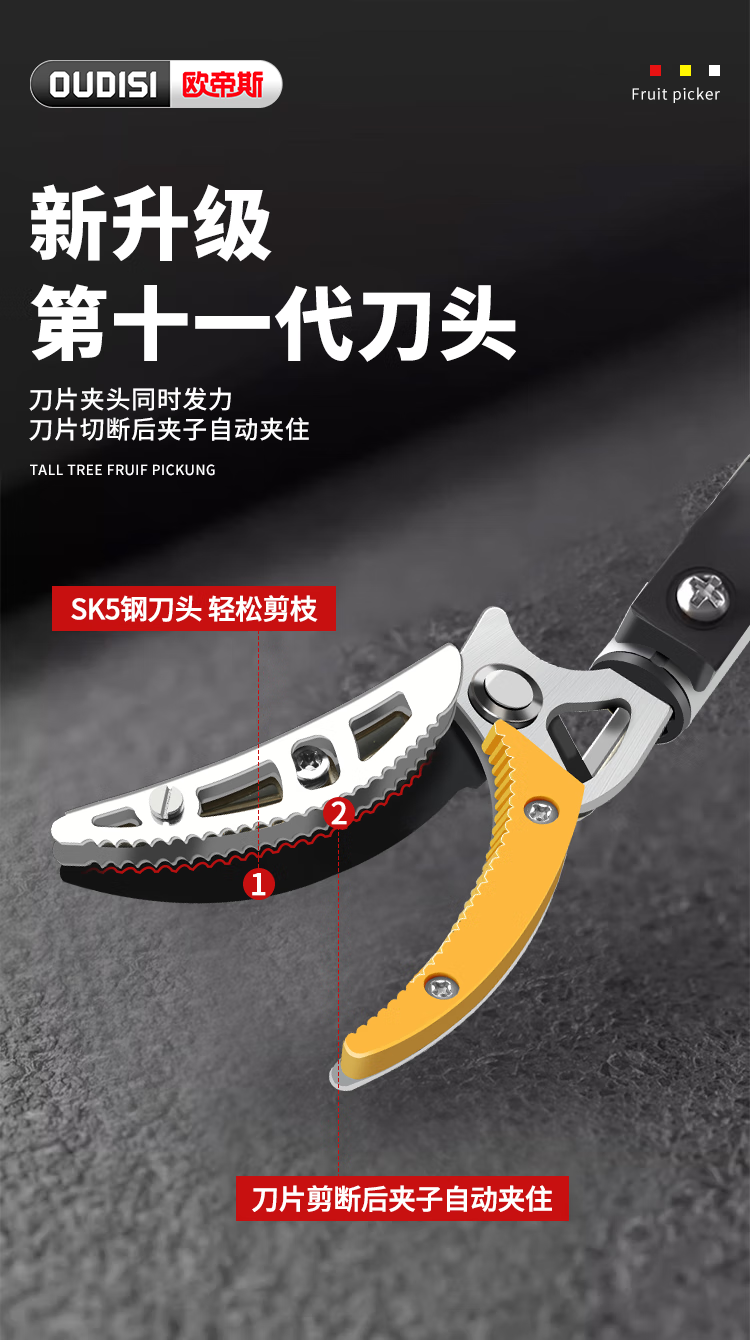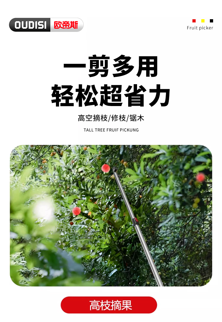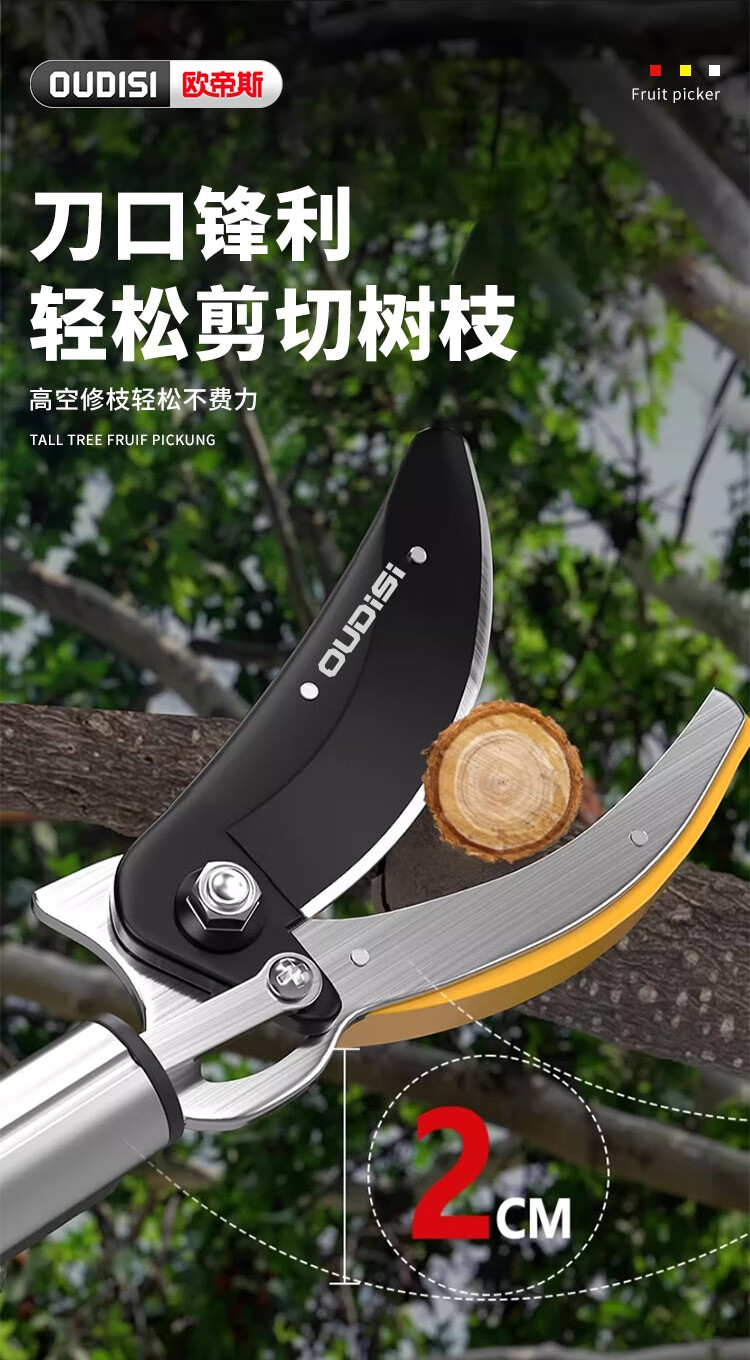OUDISI high-branch shears telescopic pole 5-meter fruit picker pruning shears fruit picking loquat and lychee shears high-altitude telescopic pole picker flagship upgrade 1.9-5.5 meters 4-section telescopic + 4 pieces No specifications