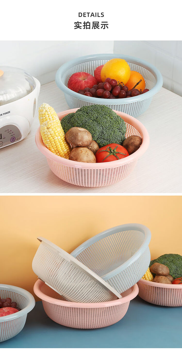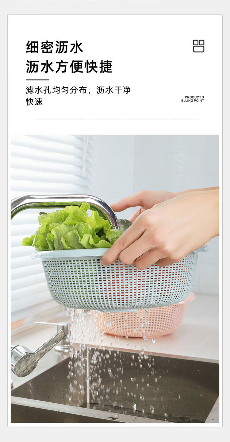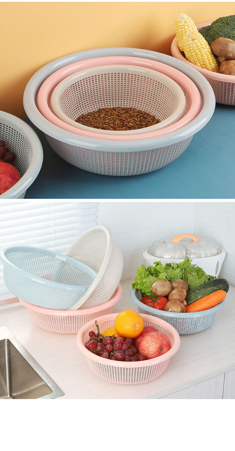 FANCYCHIC 37,000 repurchases Kitchen basket drain basin plastic set fruit basin sink storage basket meal basket blue large size x 2 pieces thickened and deepened
