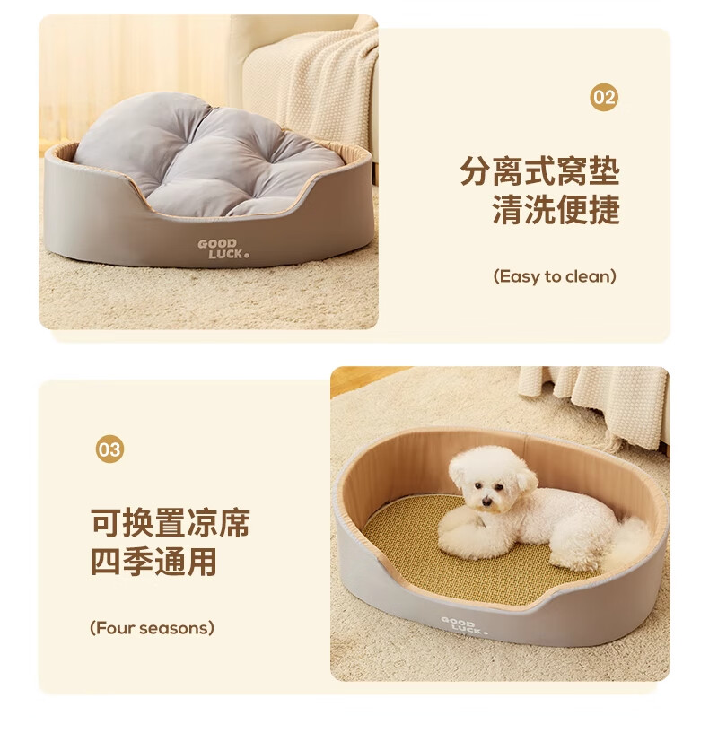 Beichuzhong Dog House Warm Winter Closed Dog Sleeping Pad Cat House Large, Medium and Small Dog Bed Pet House Gray Brown-M 50*35cm Recommended within 10 pounds