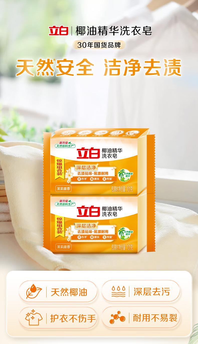 Liby Laundry Soap Transparent Soap Coconut Oil Essence Whitening Underwear Soap Household Affordable Pack Family Soap Combination 1+1 Coconut Oil Essence Soap + Free Master Powder