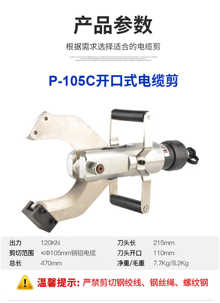 Dongcheng open-type electric hydraulic cable cutter split cable cutter P65C/105C/120C quick disconnection wire cutter P-150C with 1.5KW solenoid valve