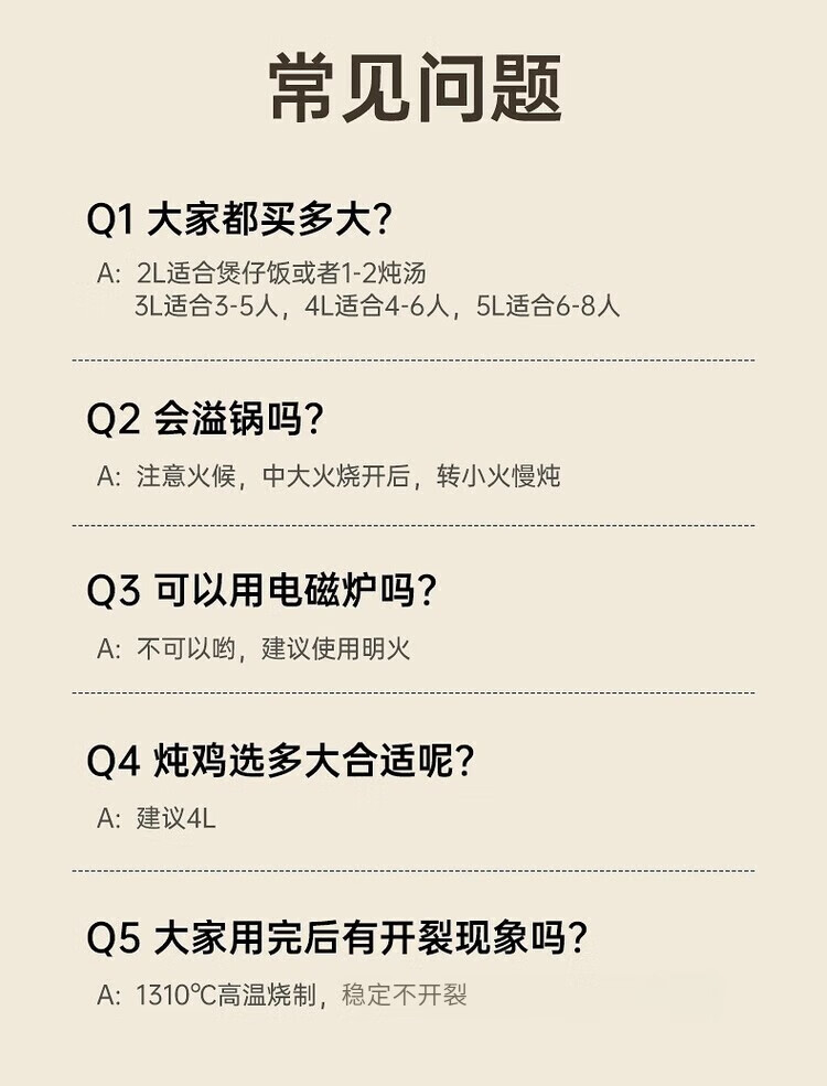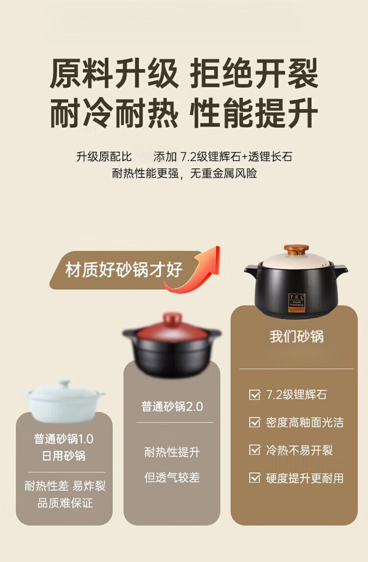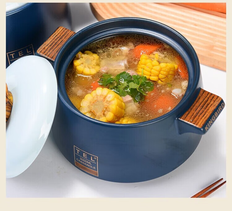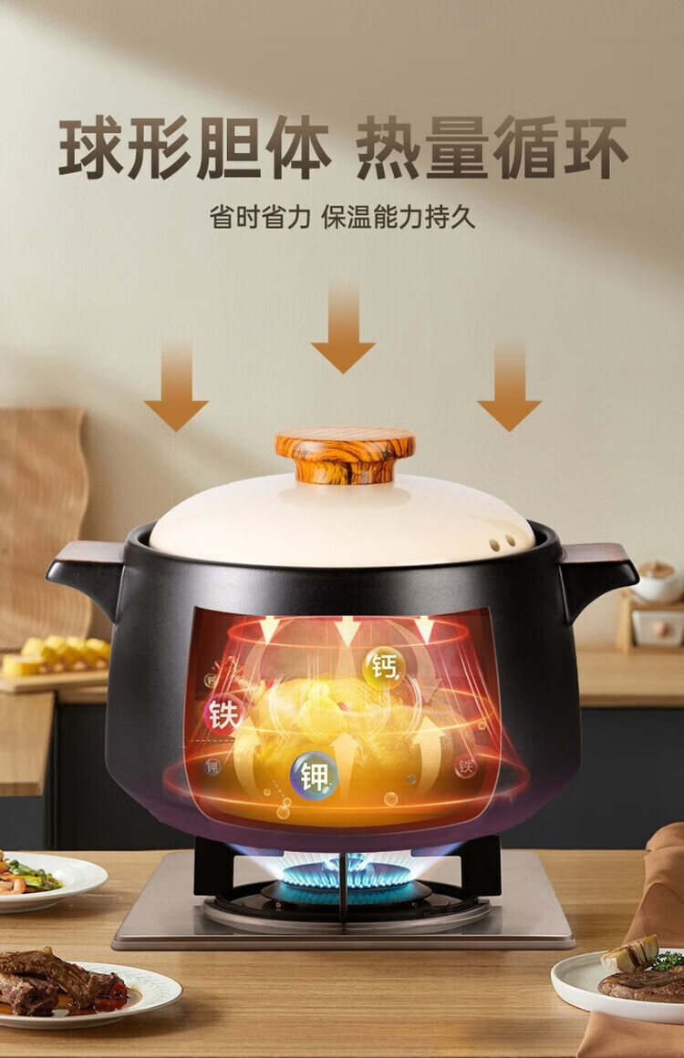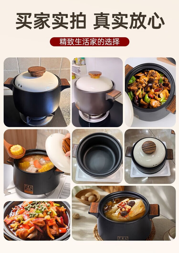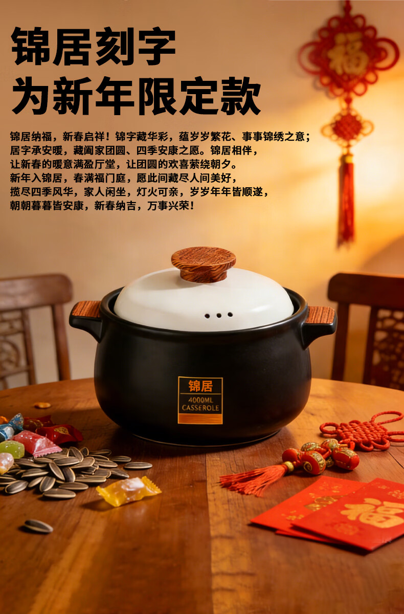 QCSK German casserole soup gas stove household high-temperature gas stove with large-capacity ceramic stew pot that does not crack when dried, wood edge black (3~6 people) double crack resistance 4L