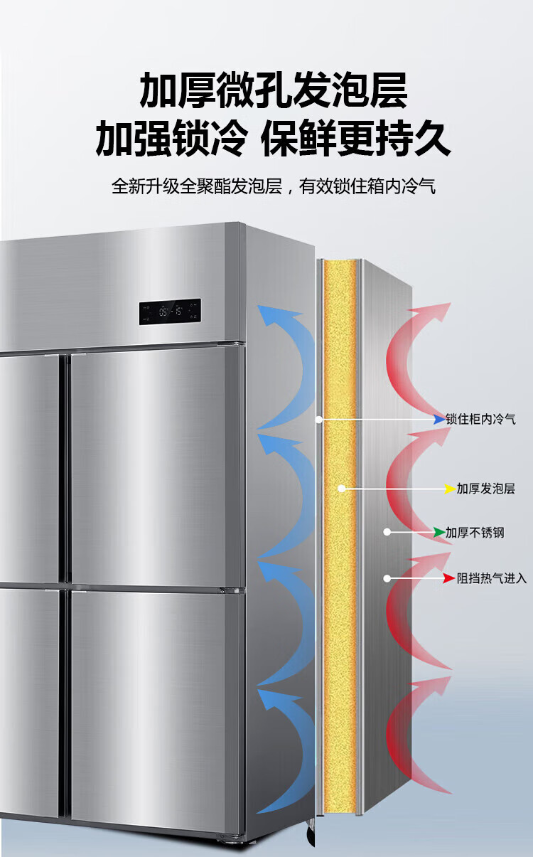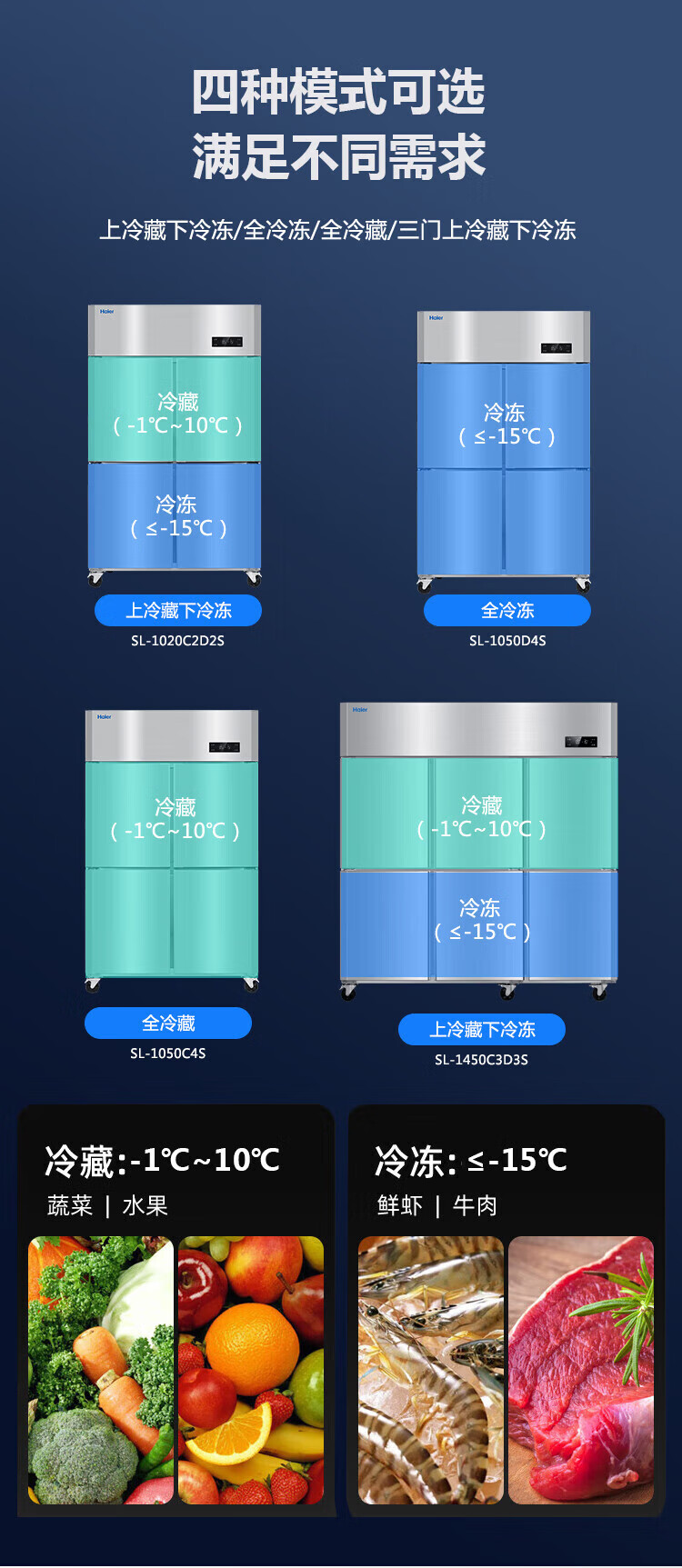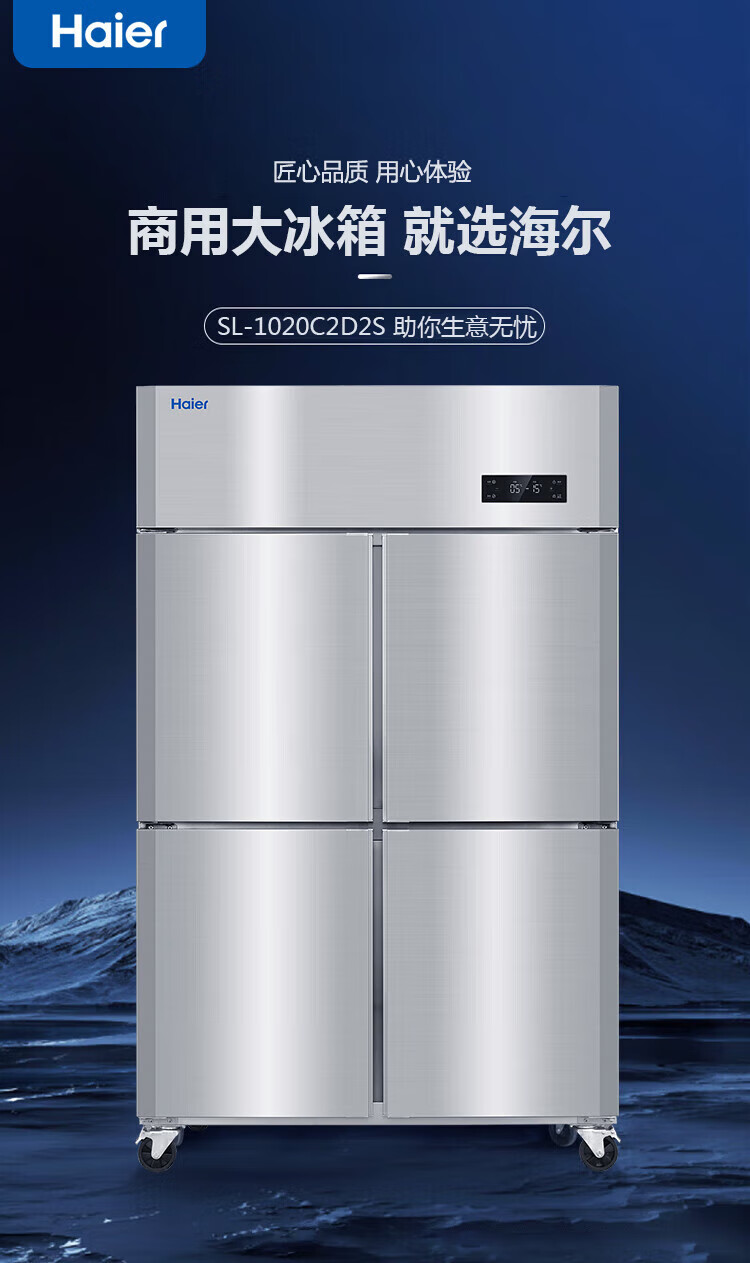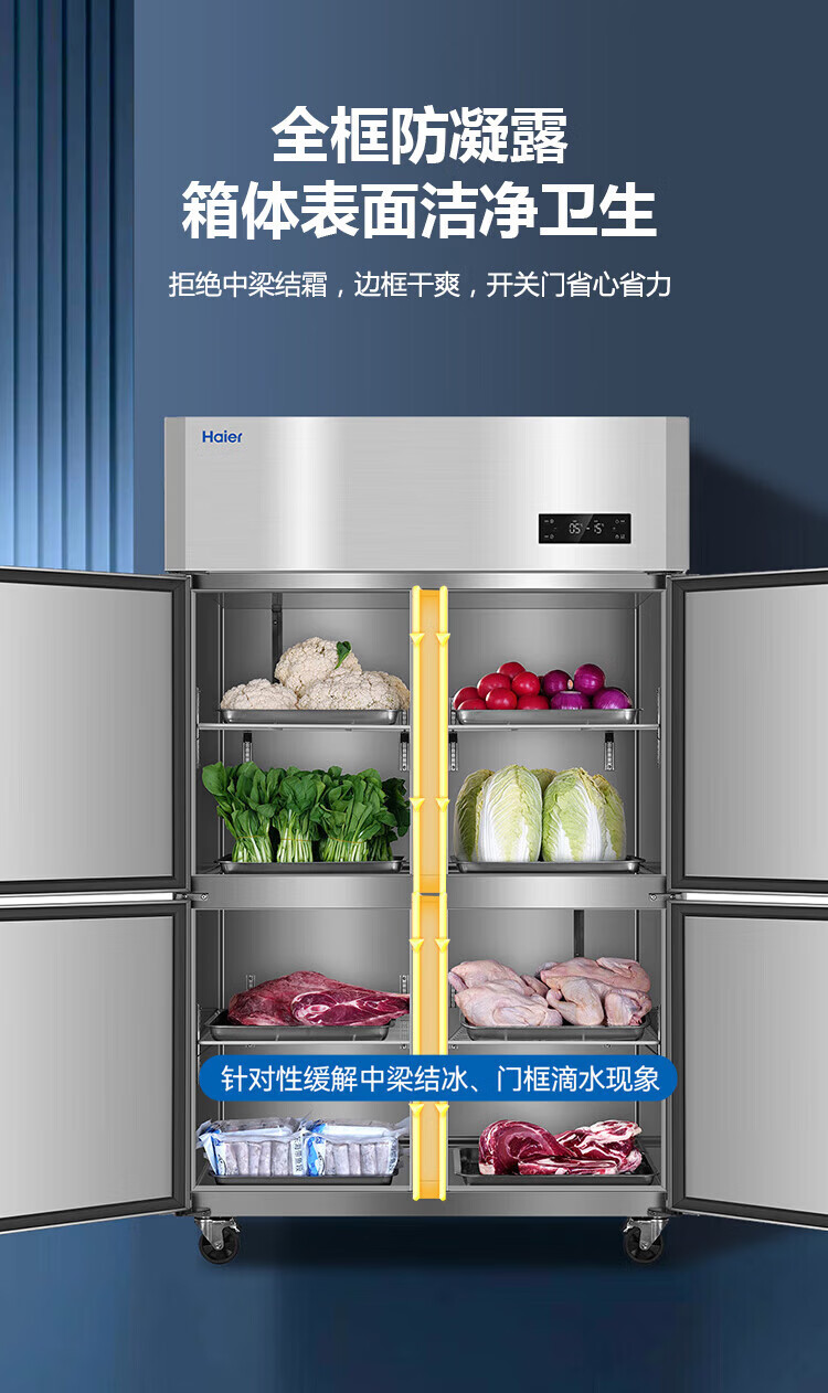 Haier Freezer Commercial Four-Door Refrigerator Six-Door Kitchen Cabinet Vertical Pork and Mutton Freezer Quick Freezer Stainless Steel Refrigerator Vegetable and Fruit Fresh Freezer 1020L Four Doors Dual Temperature Top Freezer and Bottom Freezer Copper Tube Refrigeration