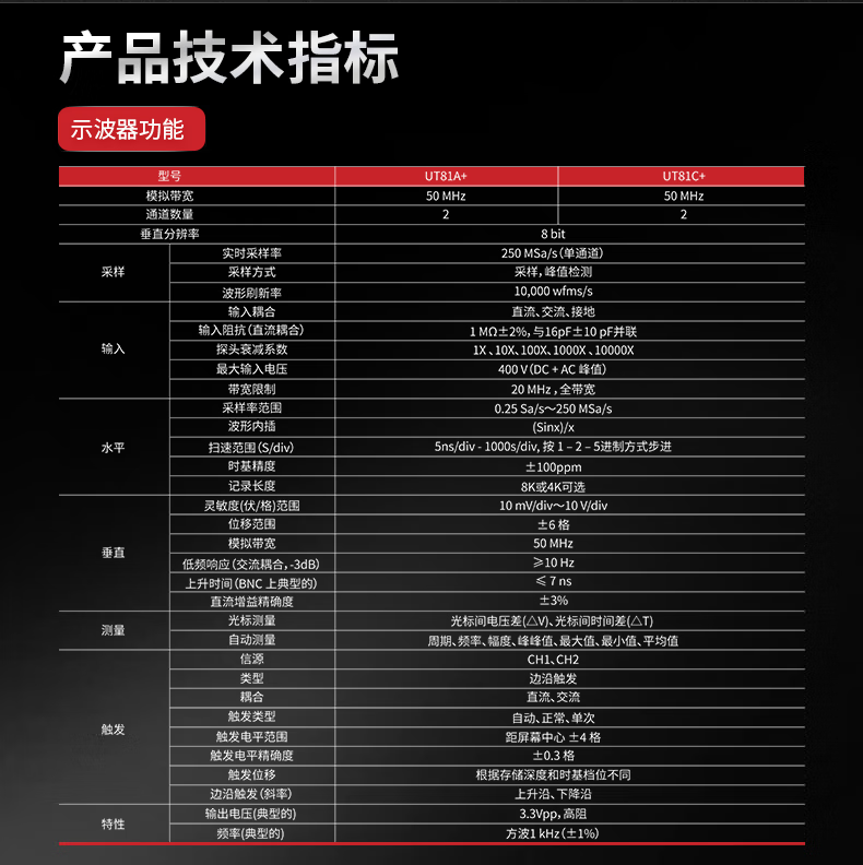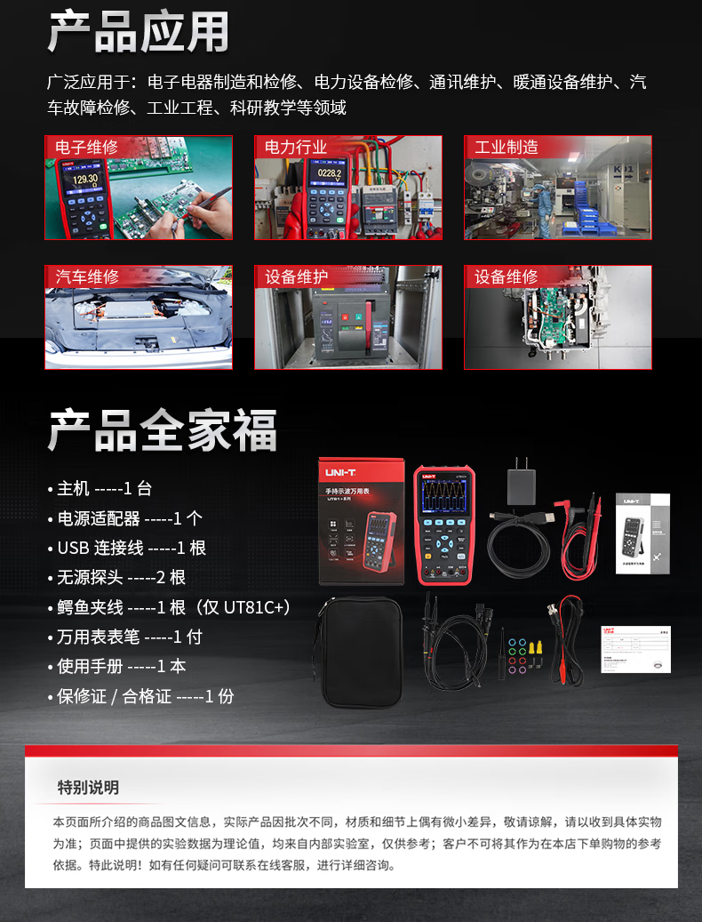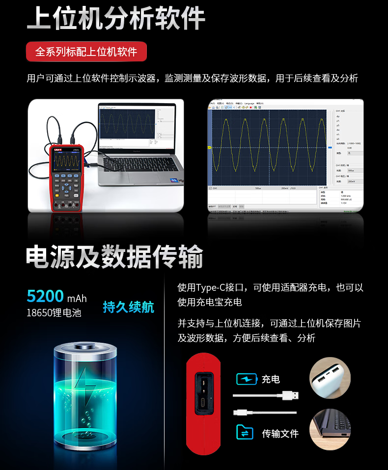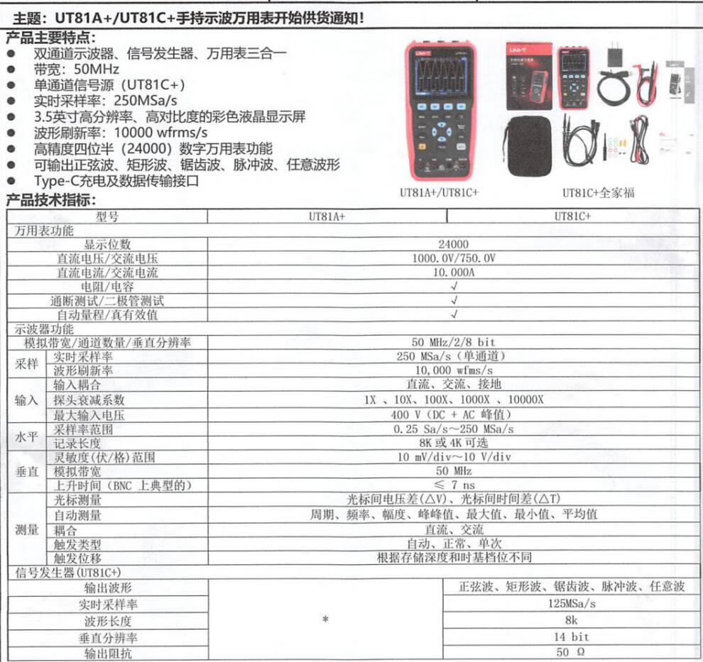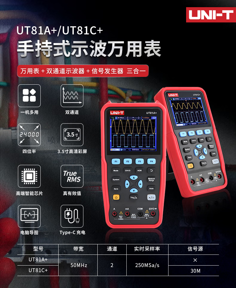 Unilide UT81A+ handheld 50M bandwidth dual-channel oscilloscope multimeter 81C+ signal generator function UT81C+