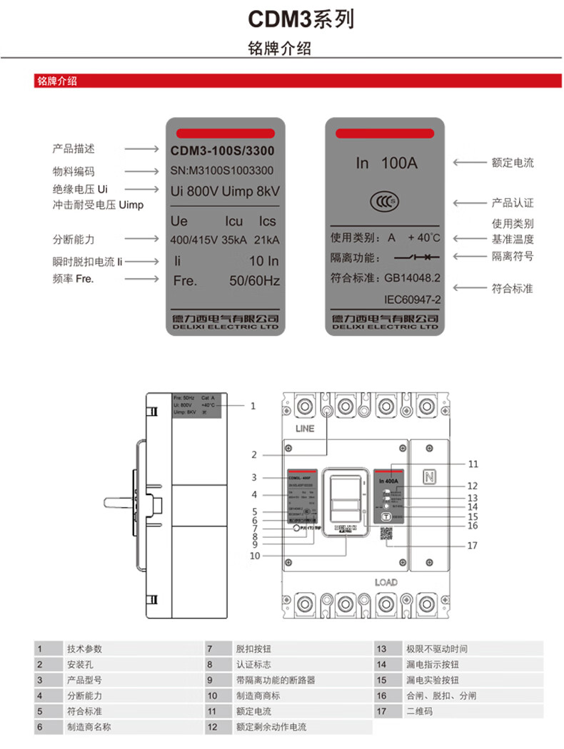 Delixi molded case circuit breaker air switch s 63A100A200A400A630A three-phase 4P 400A 3P