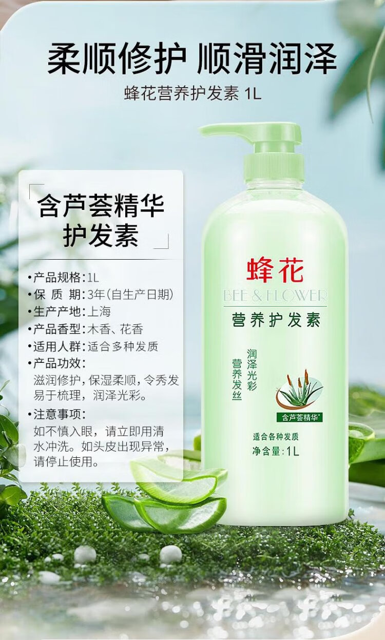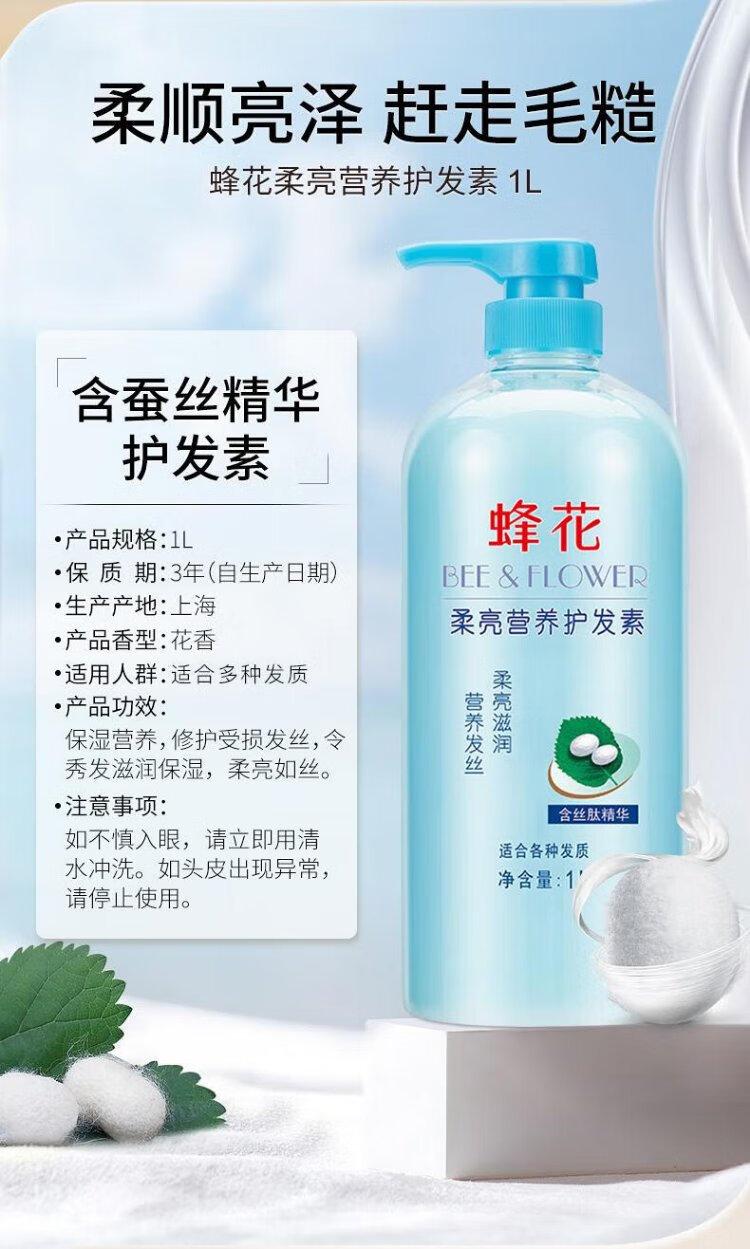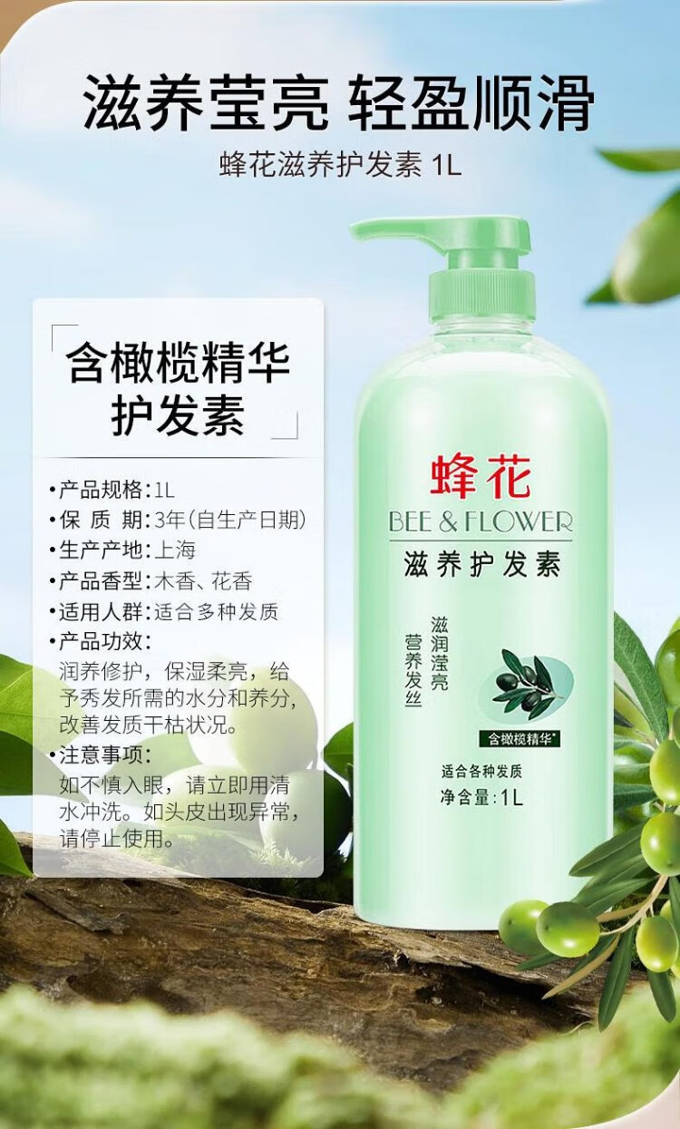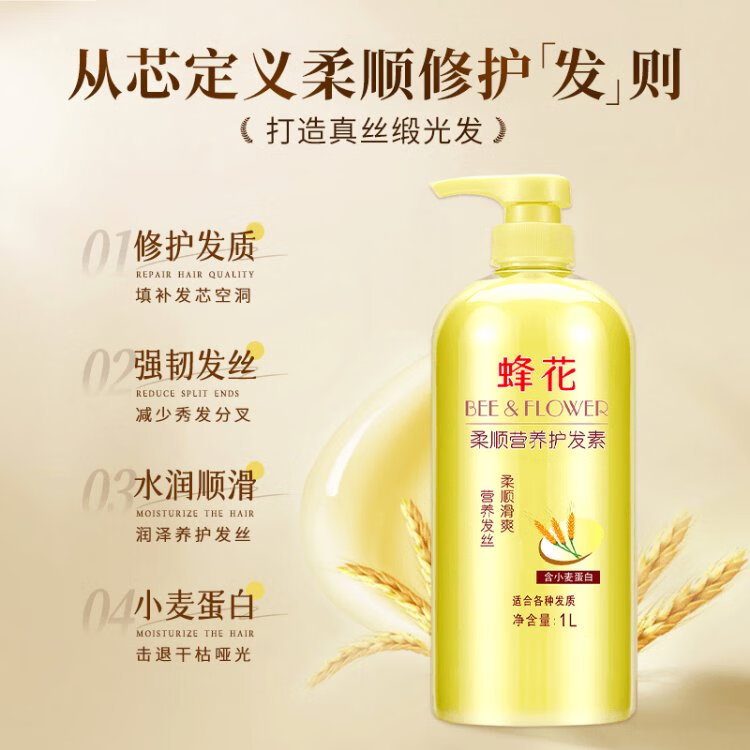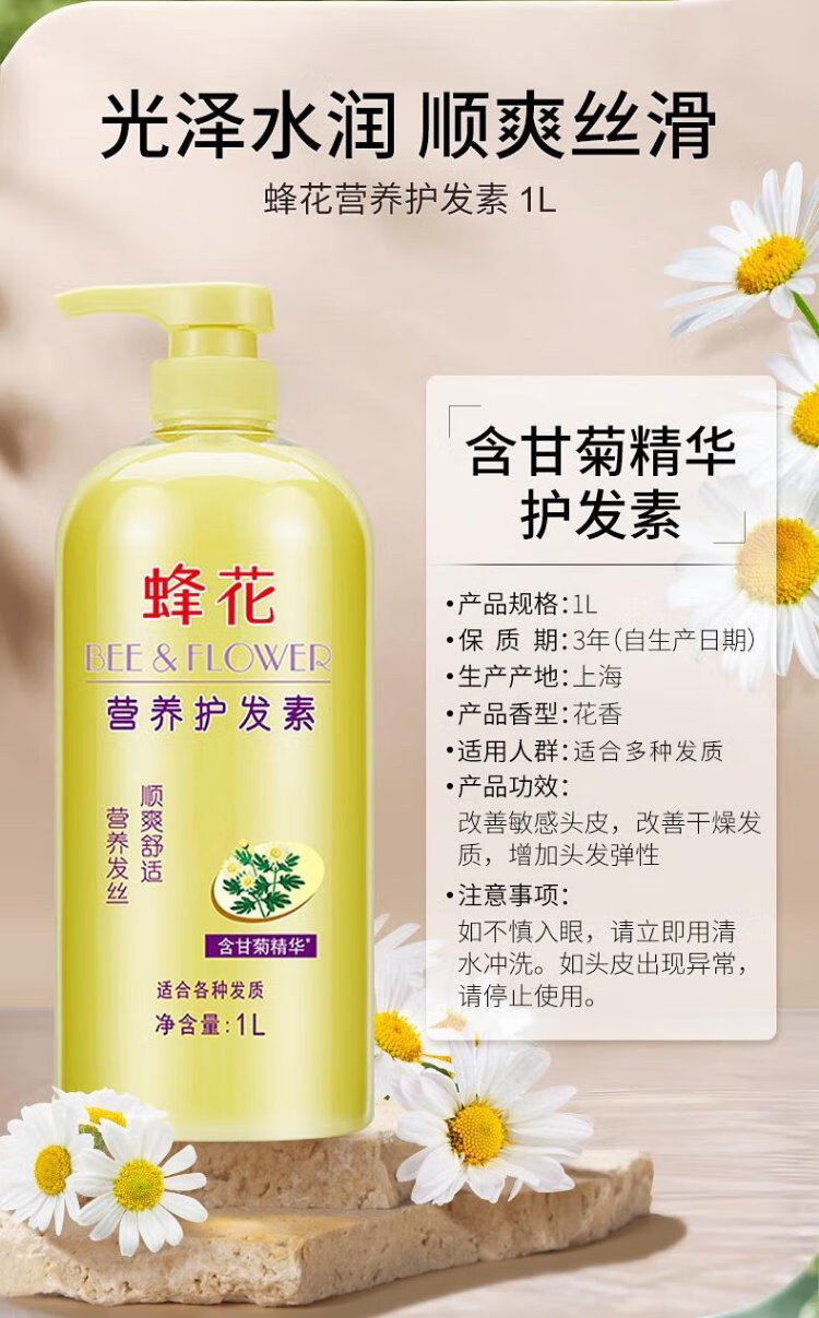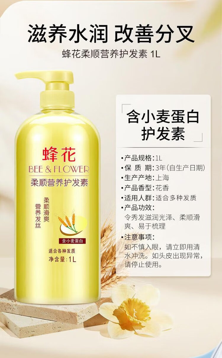 Bee Flower Bee Flower Smooth Conditioner Large Capacity Moisturizing and Repairing Dry and Frizzy Hair for Women and Men Long-lasting Fragrance Moisturizing Hair Lotion Shouwu Flower Conditioner 1L