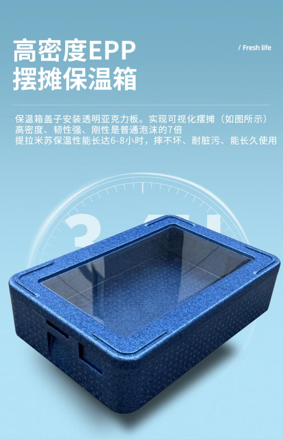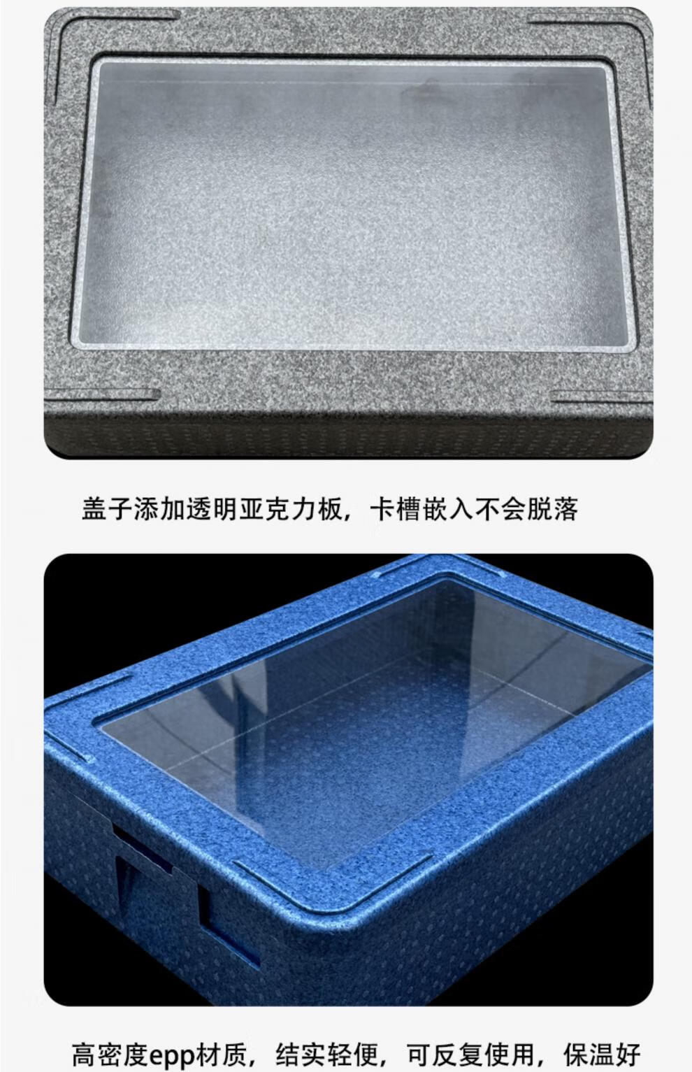 Stall epp insulated box commercial multi-layer transparent cover foam box dessert refrigerated food preservation box powder 28L bare box + 4 water-filled ice plates with transparent transparent cover insulated box