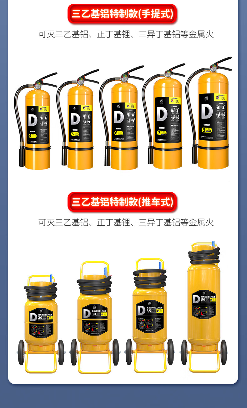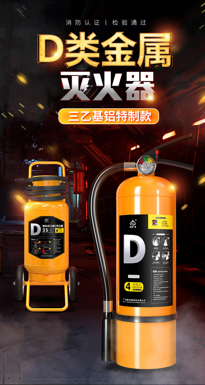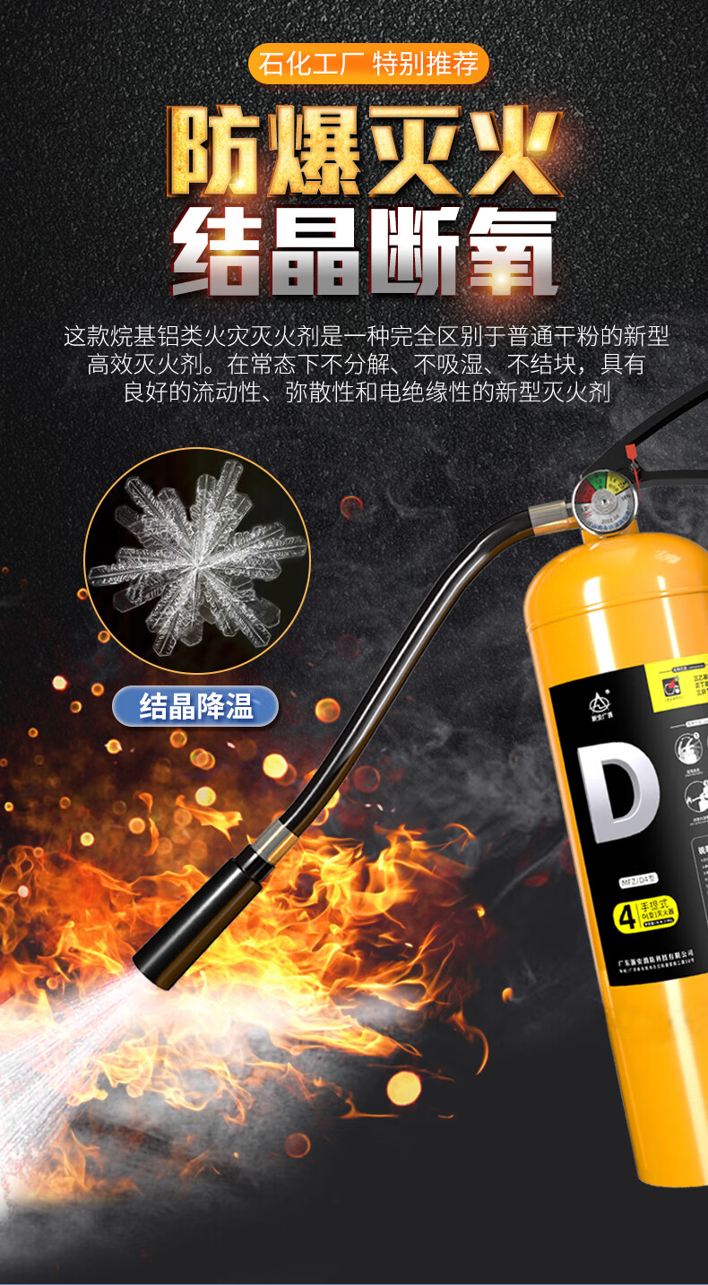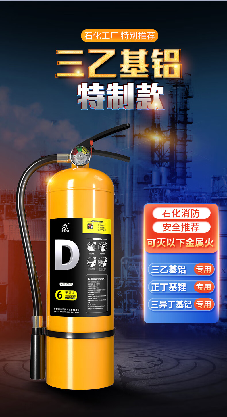 Portable Class D metal fire extinguisher to extinguish metal fires Triethyl aluminum alkyl dry powder fire fighting equipment D-type lithium battery Portable Class D 8kg (metal fire extinguisher)