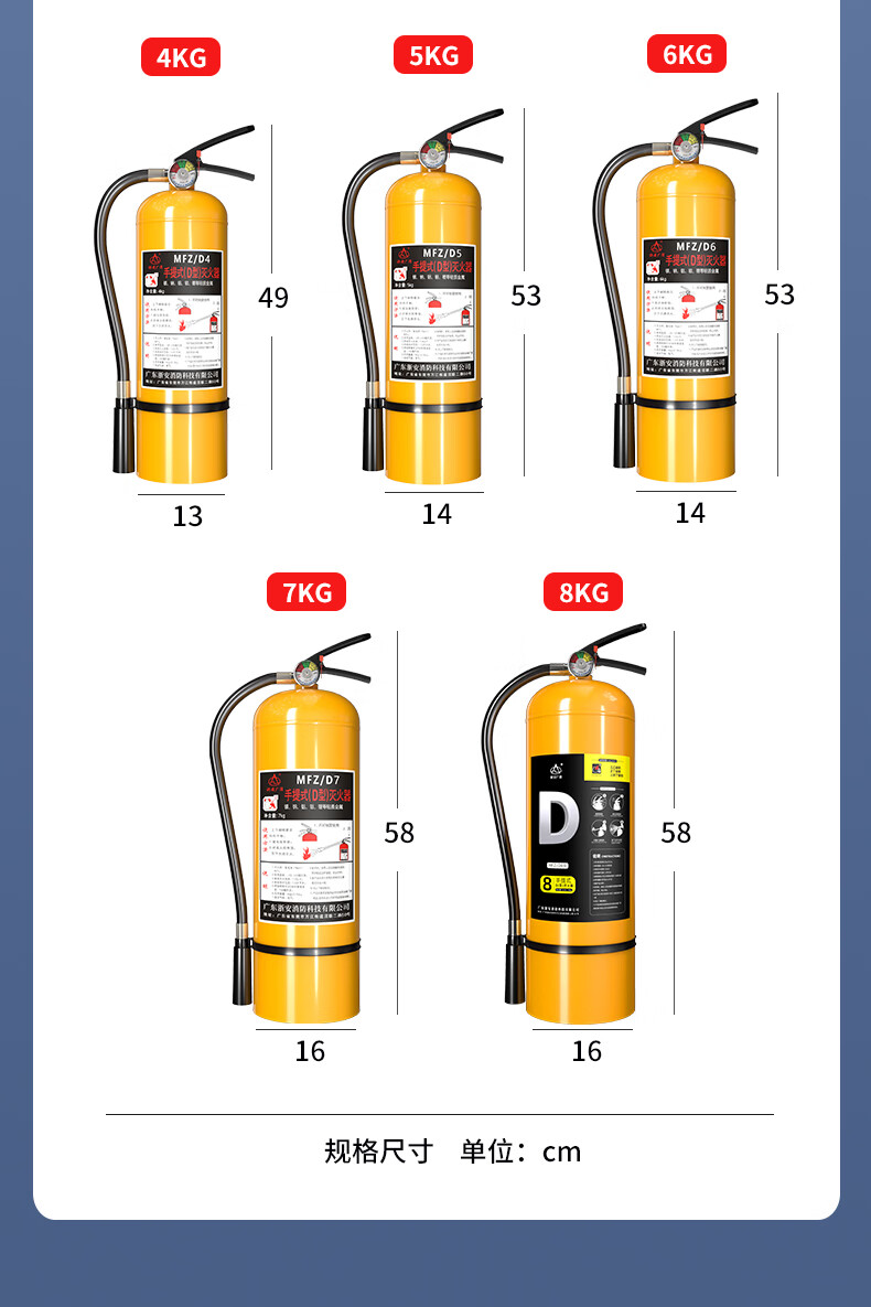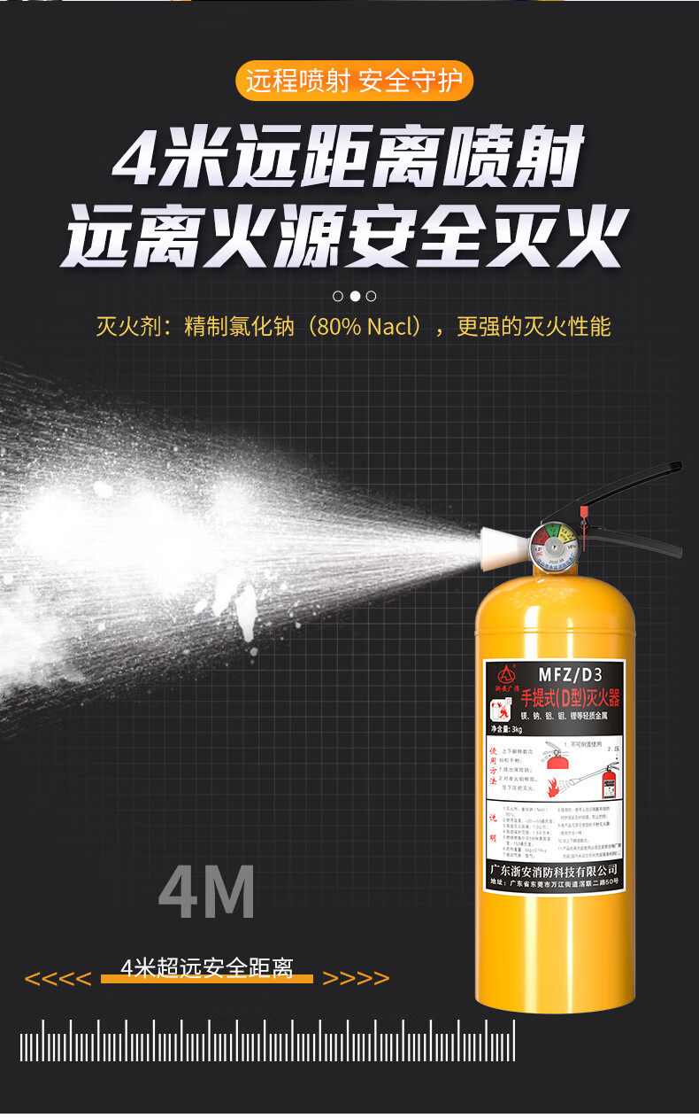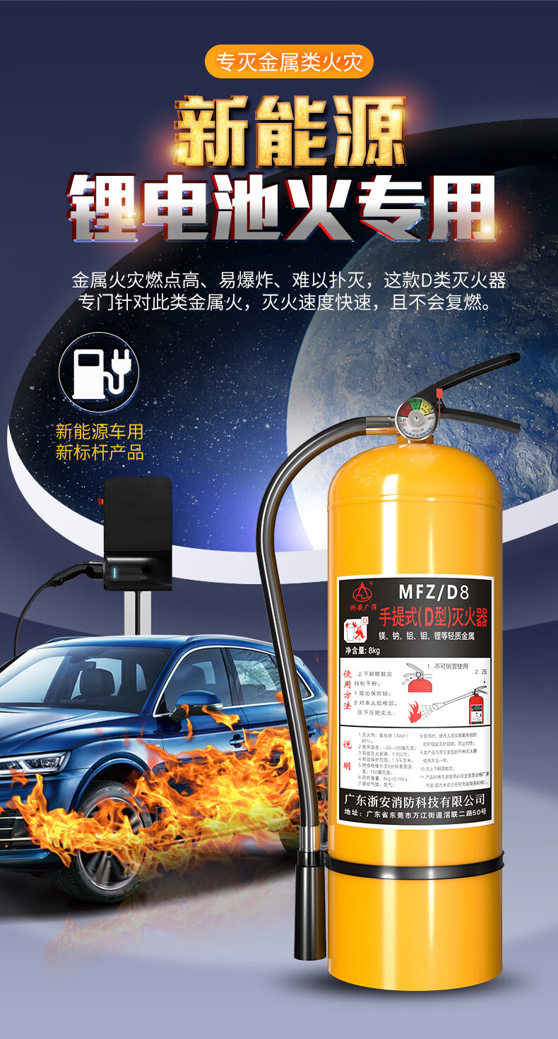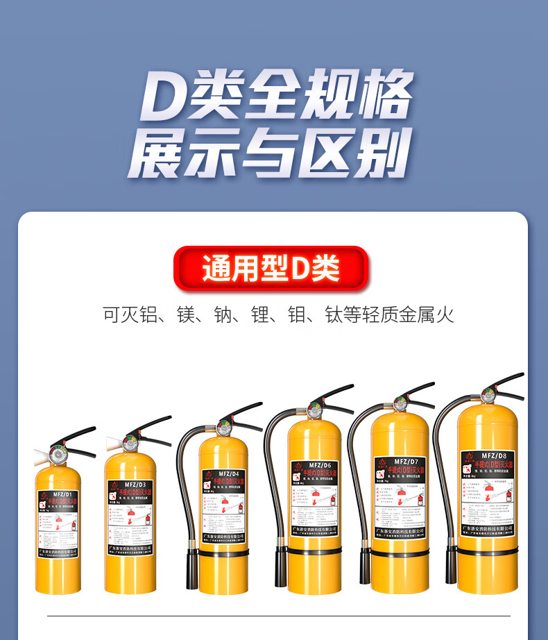 Portable Class D metal fire extinguisher to extinguish metal fires Triethyl aluminum alkyl dry powder fire fighting equipment D-type lithium battery Portable Class D 8kg (metal fire extinguisher)