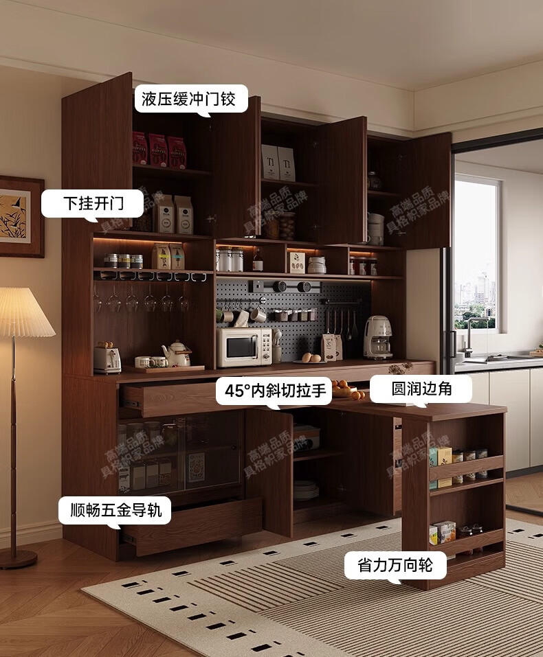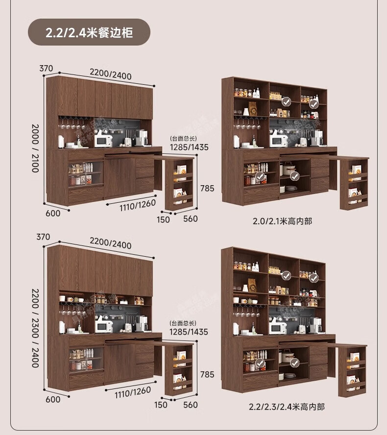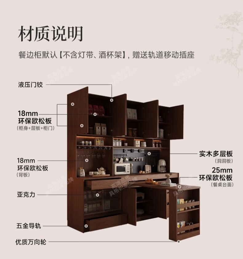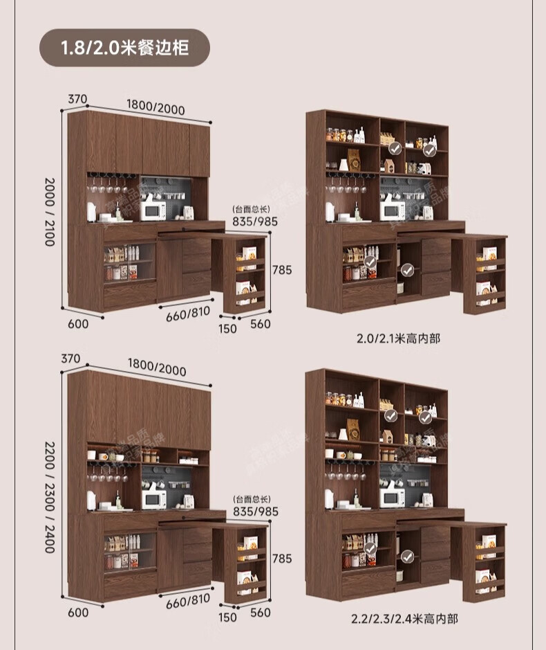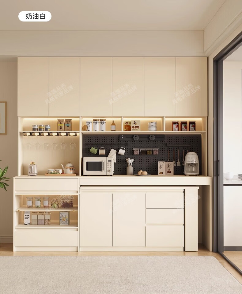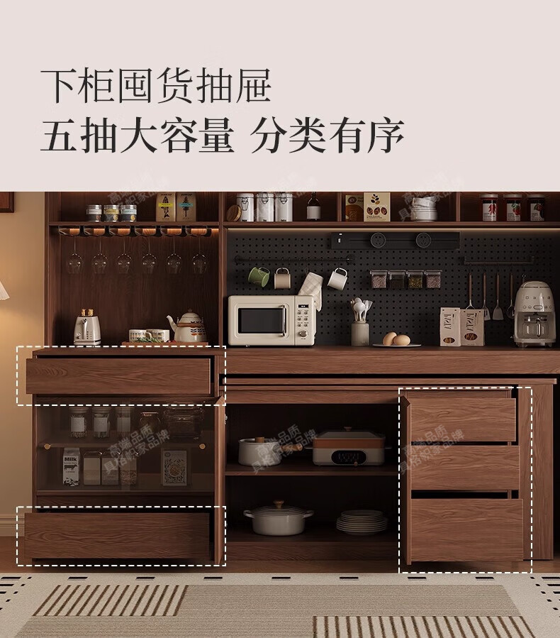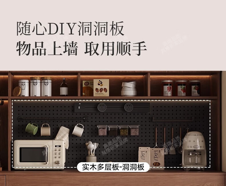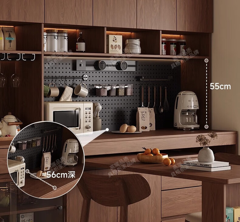 Customized solid wood sideboard by Gogezhijia, retractable built-in dining table, retractable wall-mounted integrated mid-century style living room tea storage cabinet 2.2*2.0 (six doors) + 1.3m dining table, free perforated board and double-hole track socket by default