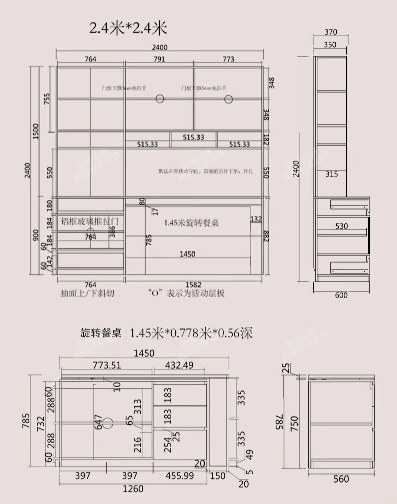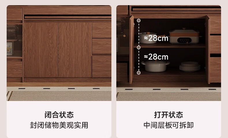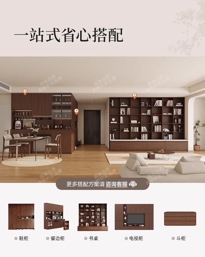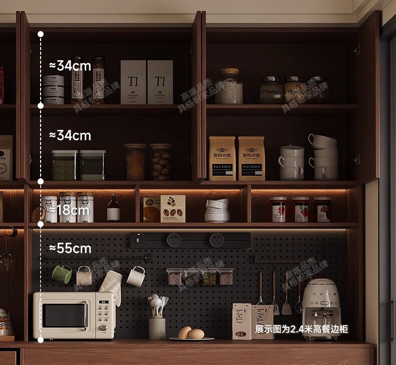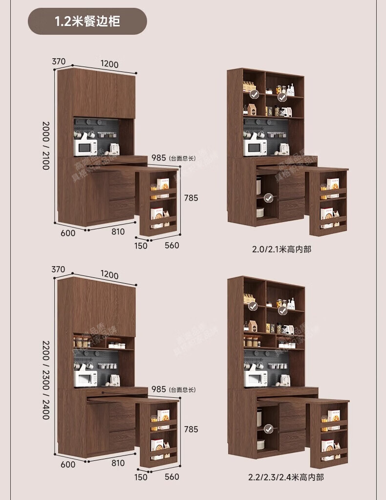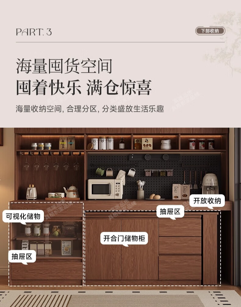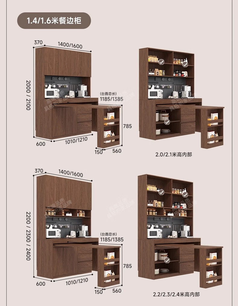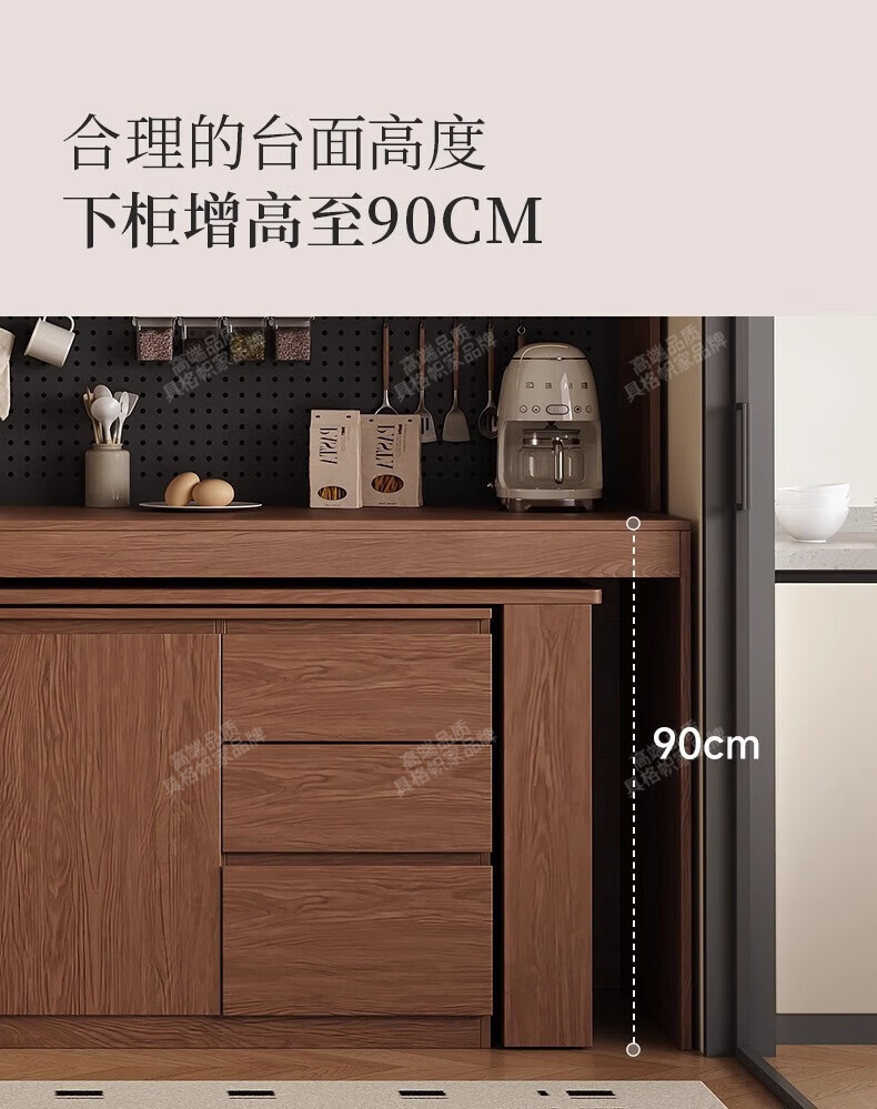 Customized solid wood sideboard by Gogezhijia, retractable built-in dining table, retractable wall-mounted integrated mid-century style living room tea storage cabinet 2.2*2.0 (six doors) + 1.3m dining table, free perforated board and double-hole track socket by default