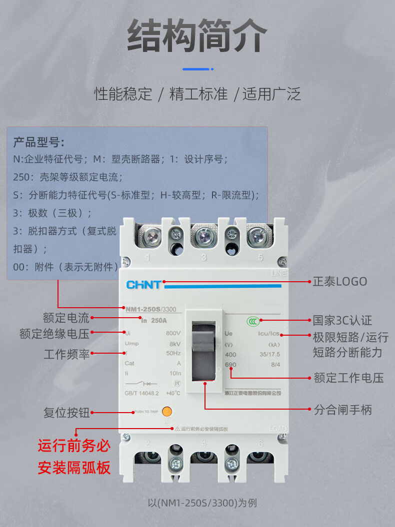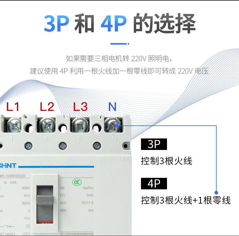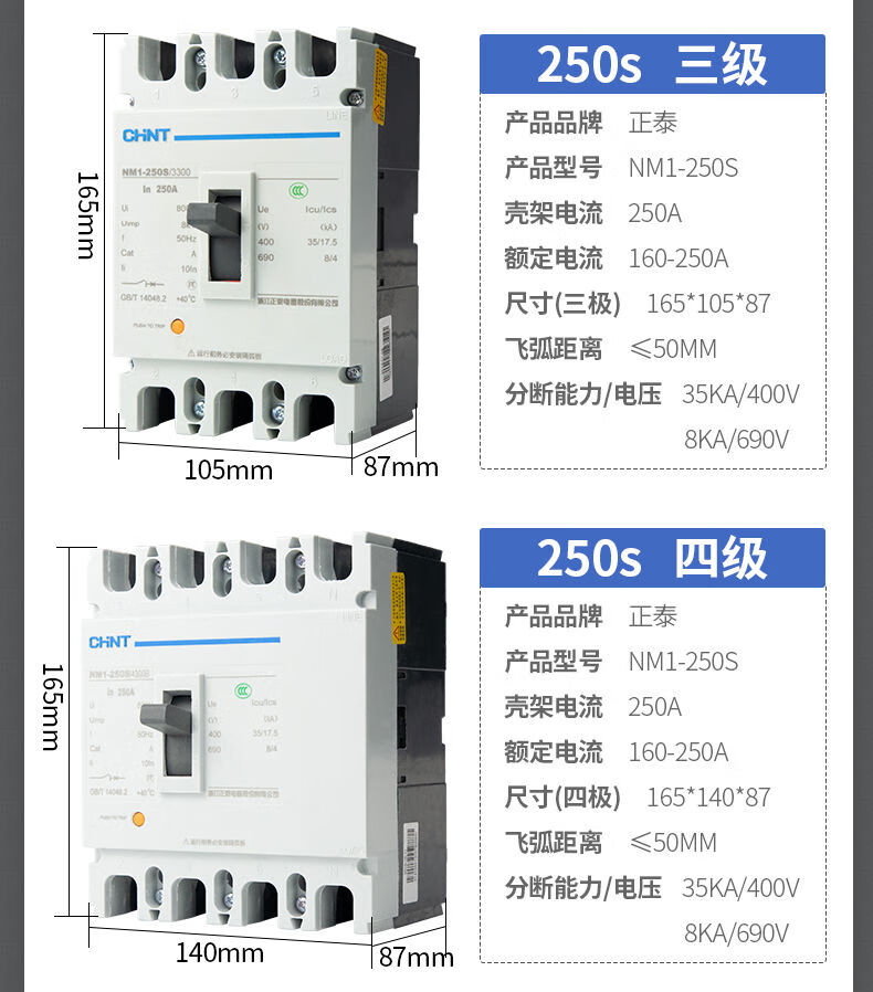 Chint plastic case circuit breaker NM1-100A125A160A200A250S/3300 4300 air switch P 1000A 3P