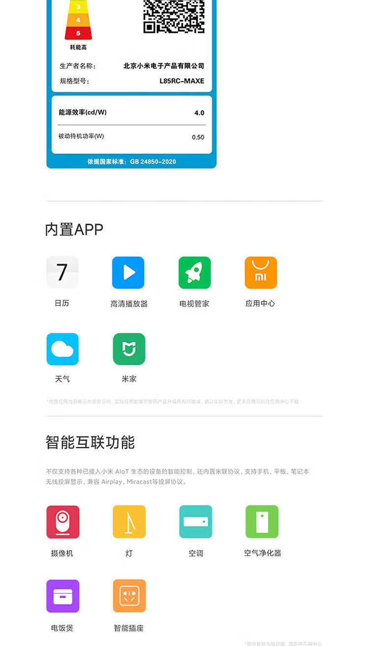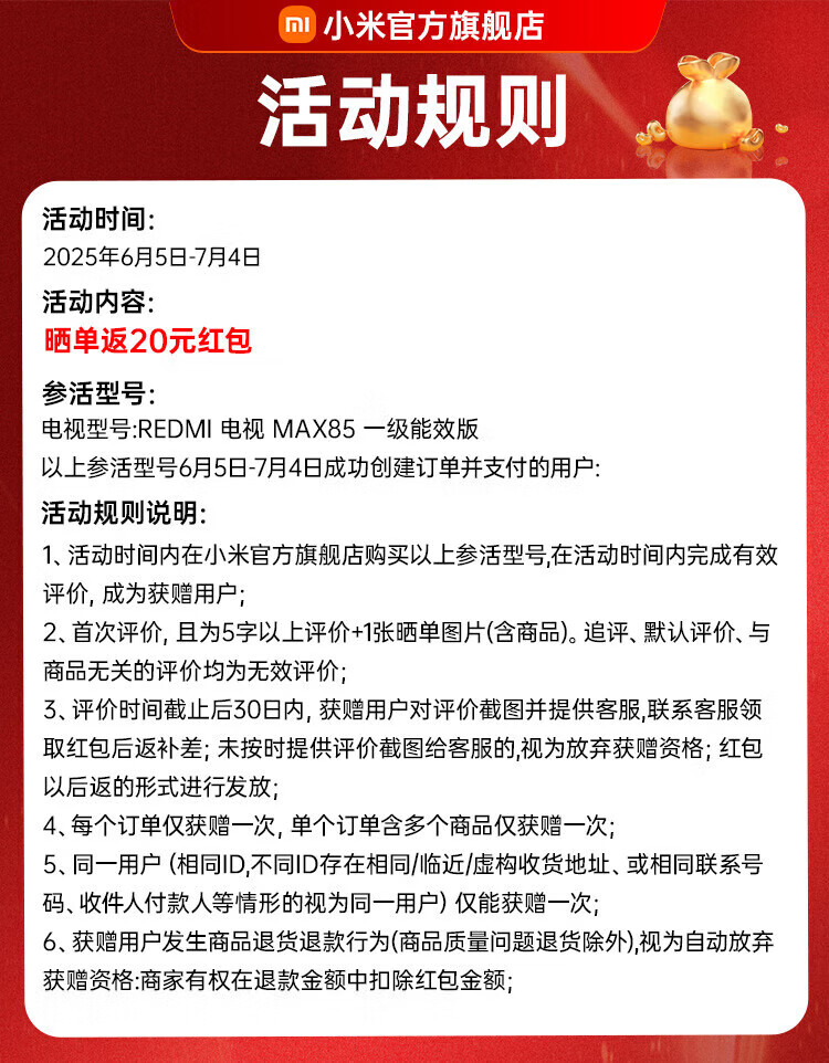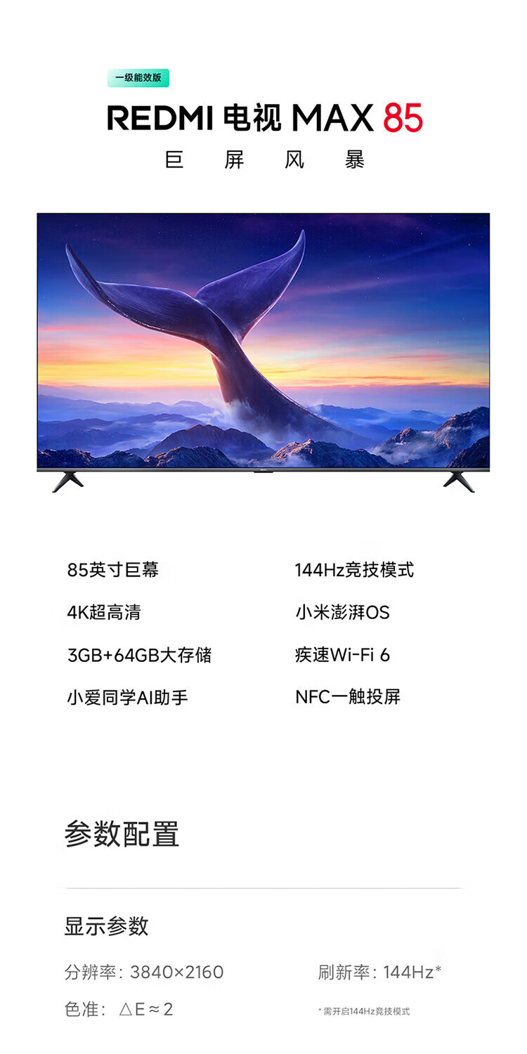 Xiaomi TV 85-inch, first-level energy efficiency, 144Hz high refresh WiFi6, ThePaper OS, Redmi REDMI MAX85 2025 model, L85RC-MAXE large flat-screen TV, 85-inch MAX85+ door-to-door installation