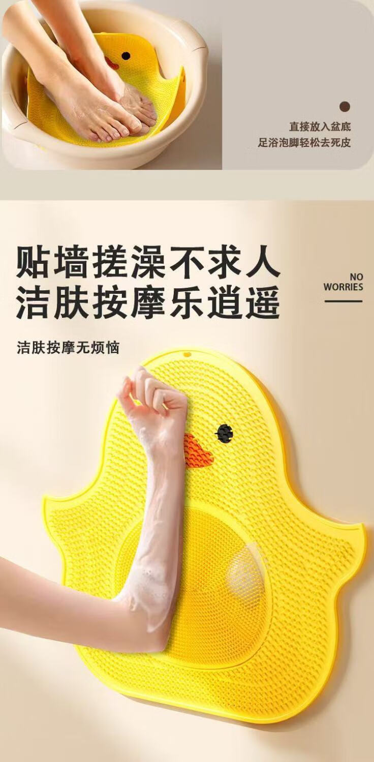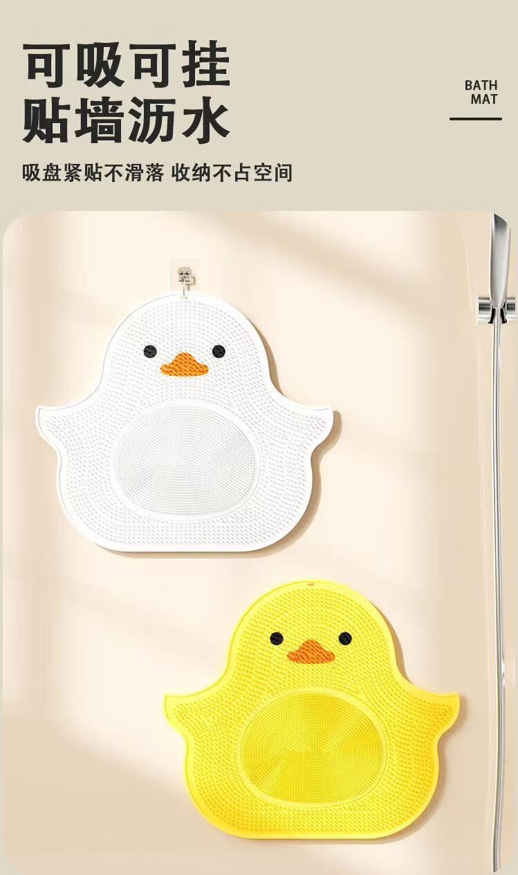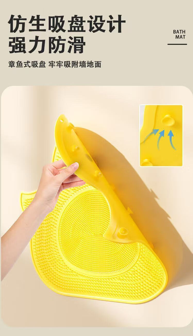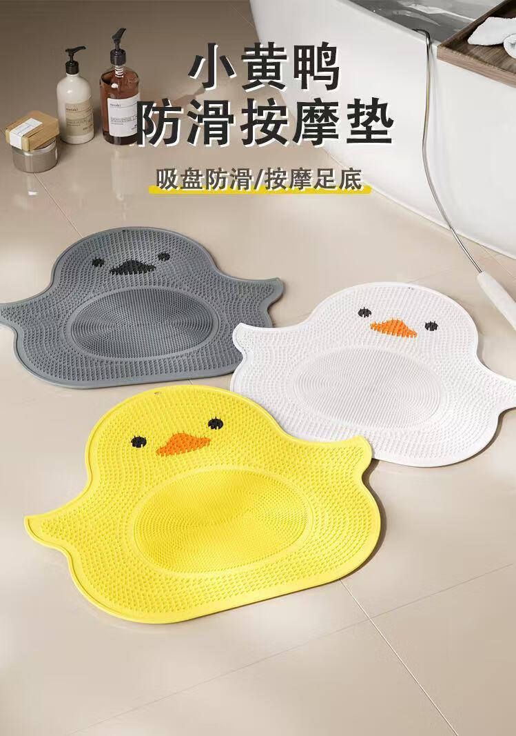 Qumuye Silicone Little Yellow Duck Massage Suction Cup Foot Mat Bathroom Anti-slip Mat Bath Foot Rubbing Artifact Foot Washing Shower Room Floor Mat Little Yellow Duck Floor Mat-Yellow 40*45