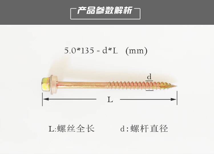 FHJQB wood screw self-tapping screw for wood outer hexagonal tip drill tail screw resin tile color steel tile cutting tail notch non-standard 5.0*125 (150 pcs/box half thread)