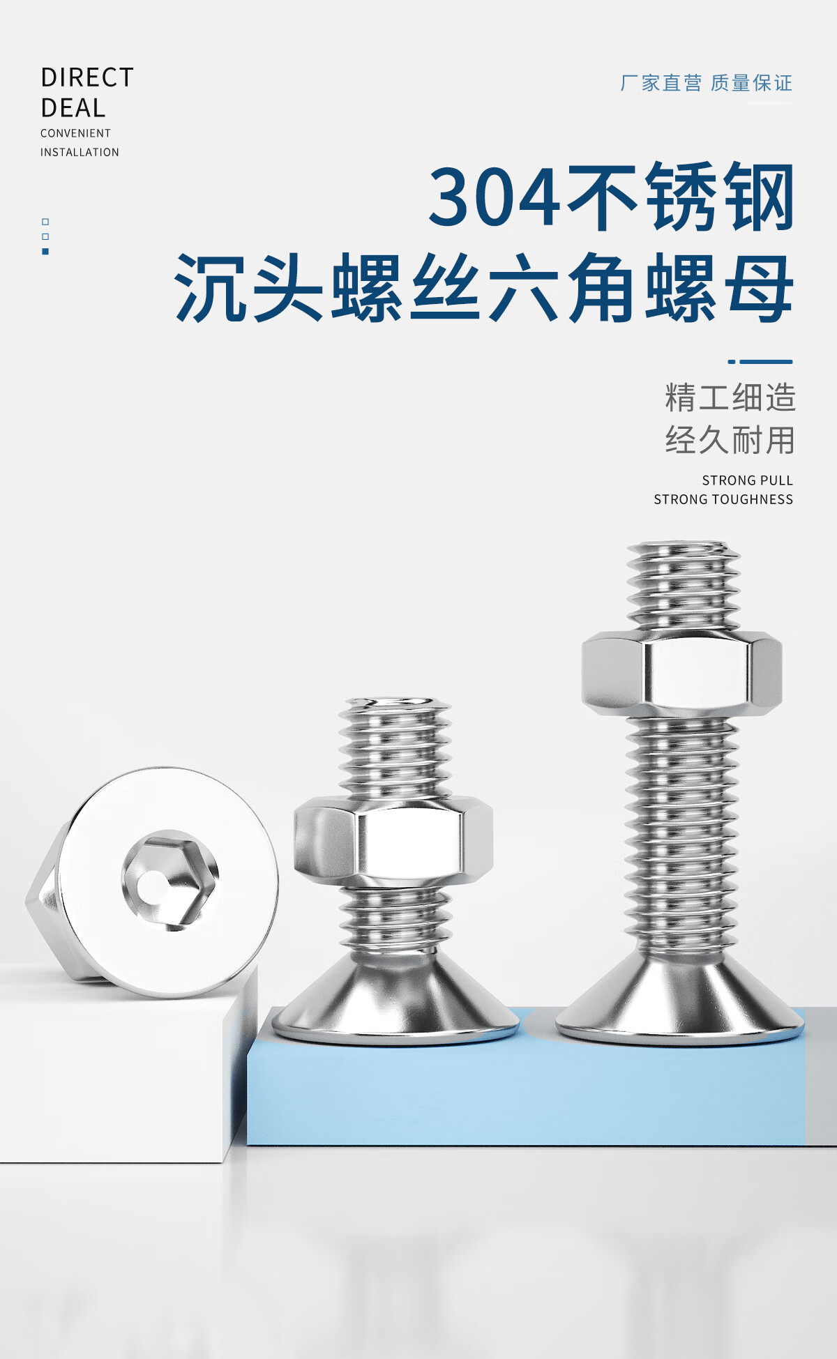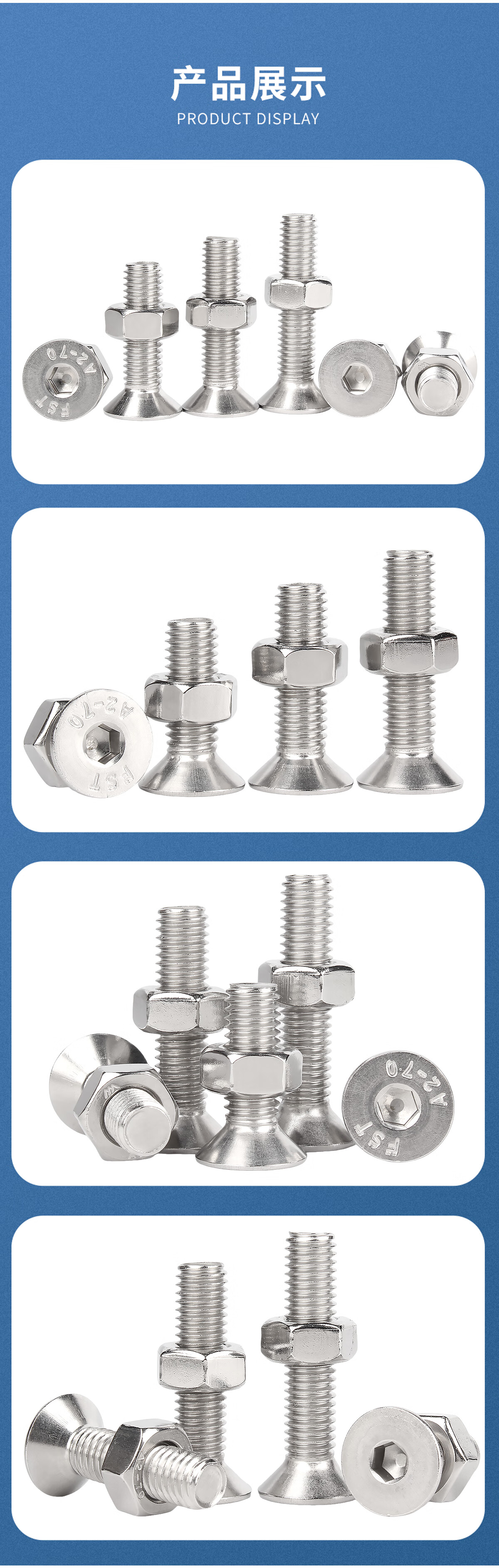 Guwanji 304 stainless steel flat head countersunk head hexagonal screw nut set complete accessories M2M3M4M5M6M8M10 M5x45 20 sets