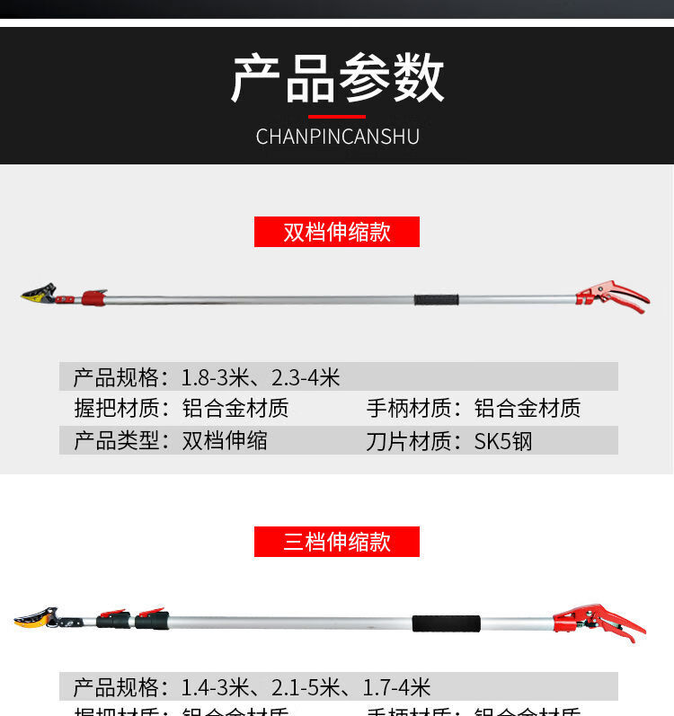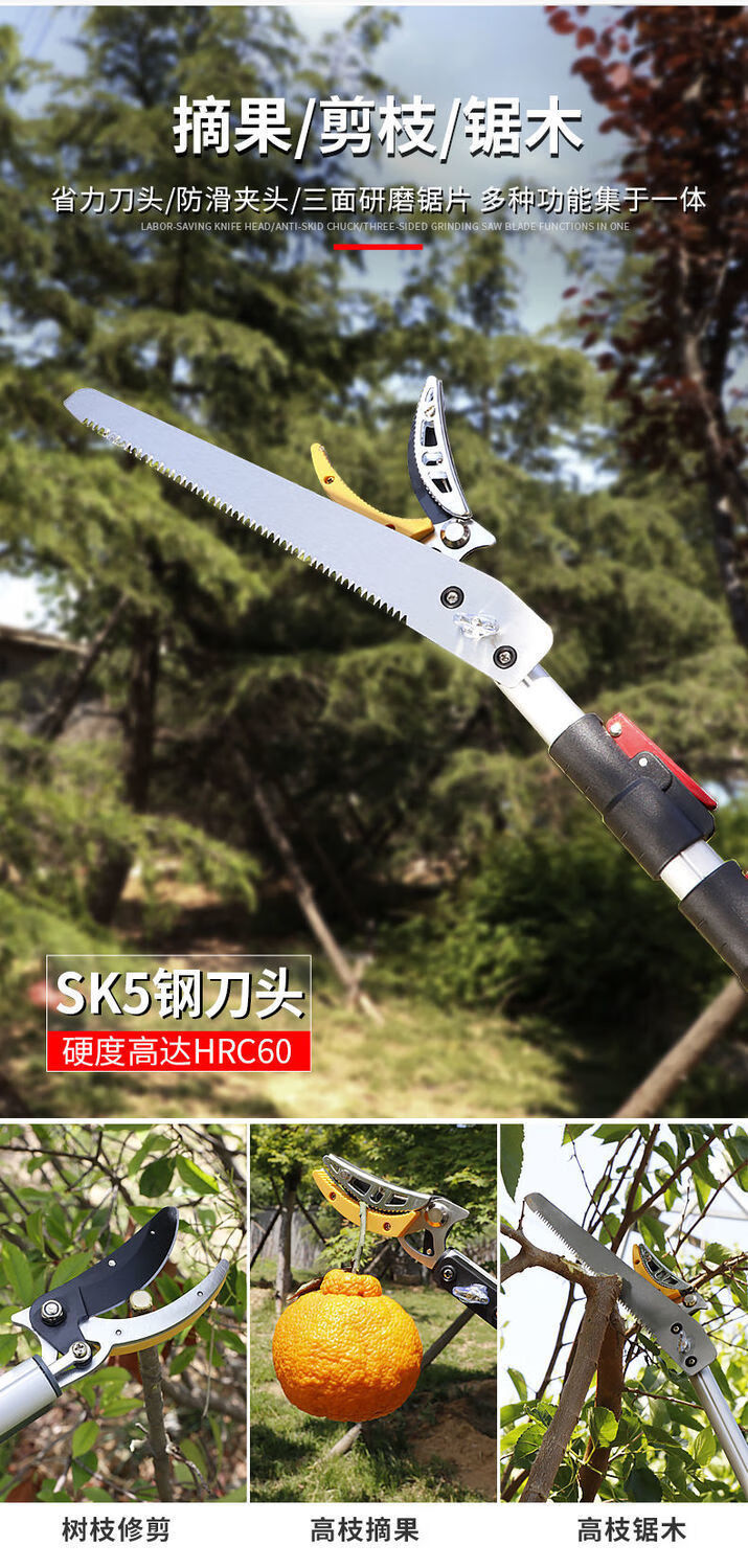 High-branch shears imported from Japan, telescopic high-altitude shears, high-branch shears, fruit picking device, fruit branch scissors, fruit picking scissors, extended fruit picking, sixth generation single section 1.5 meters, separate scissors plus gifts