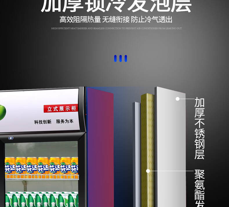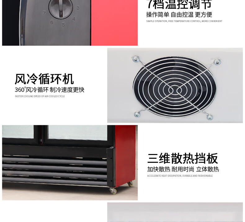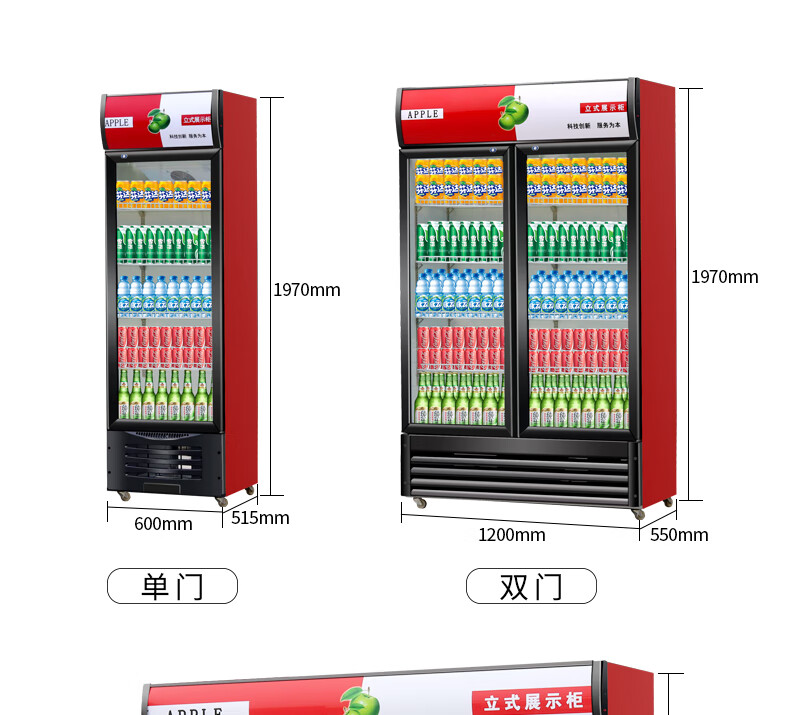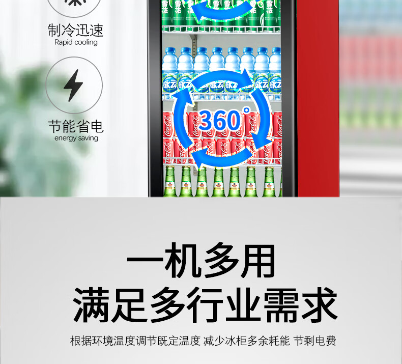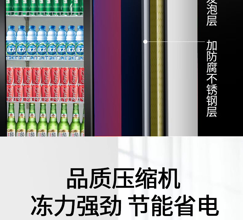 金榜top 冷藏展示柜饮料柜立式商用冰箱保鲜柜啤酒柜饭店超市 单门+红黑 直冷 基础款 7档调温