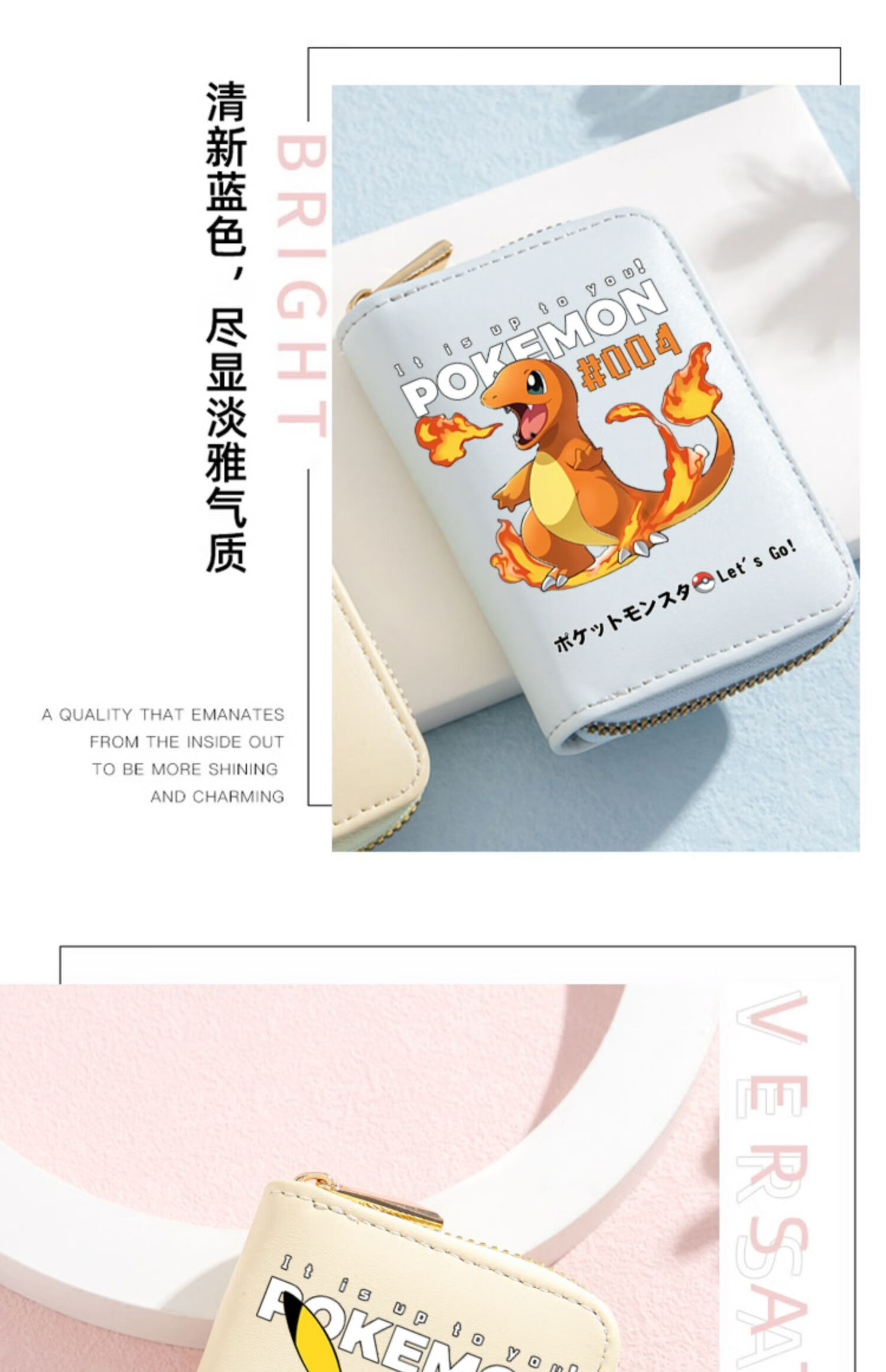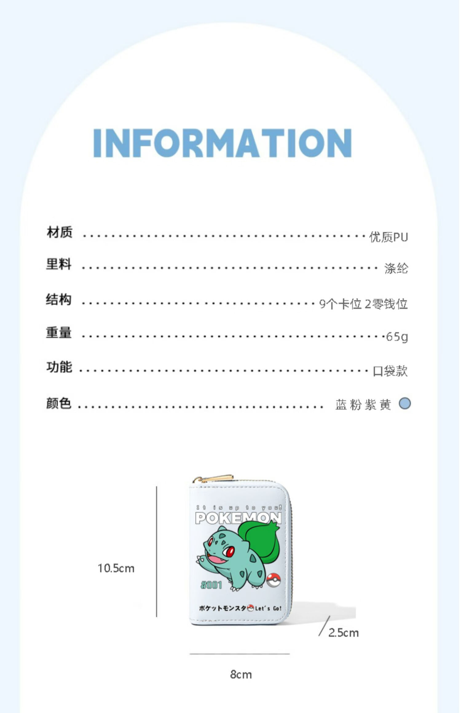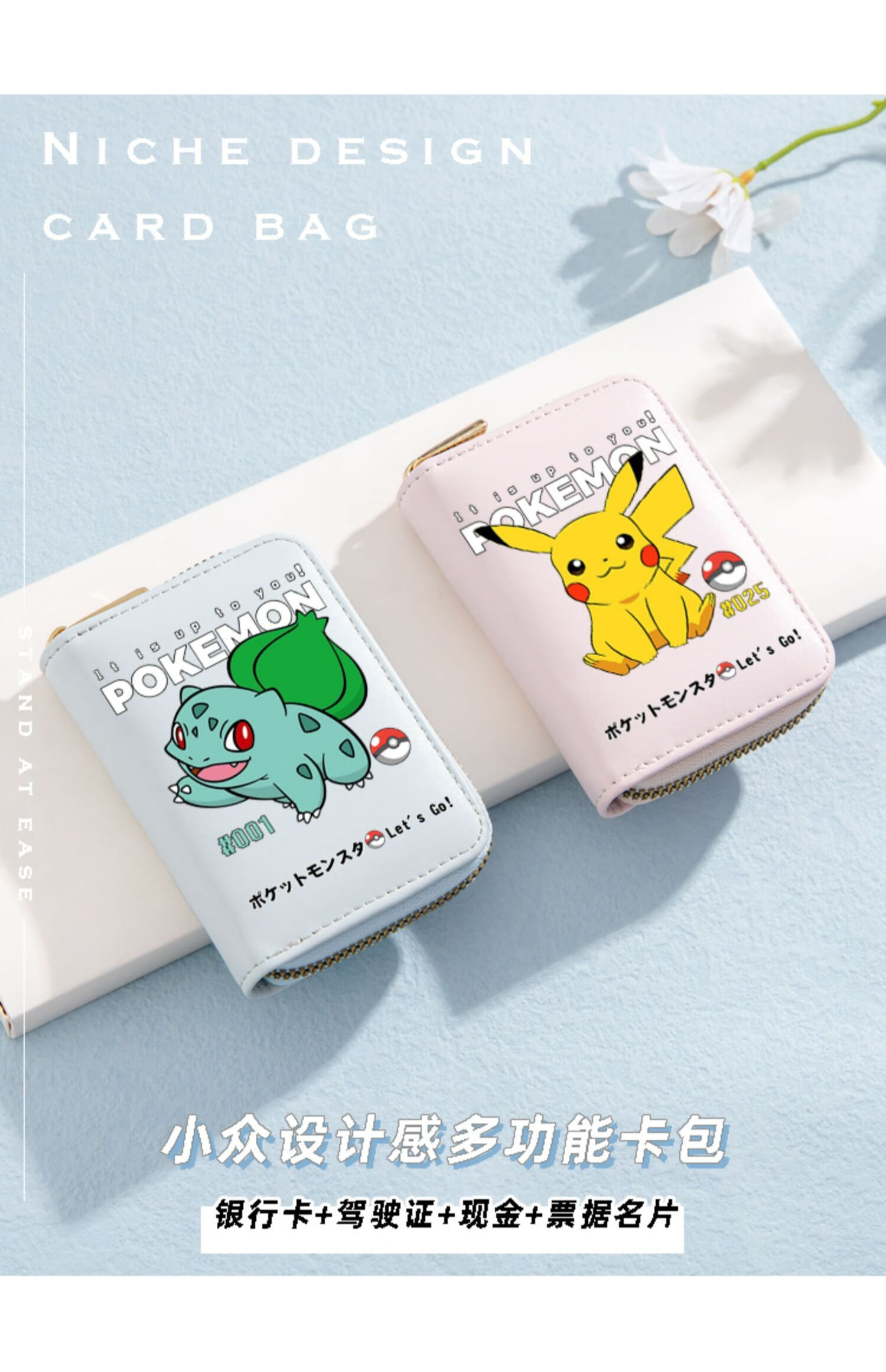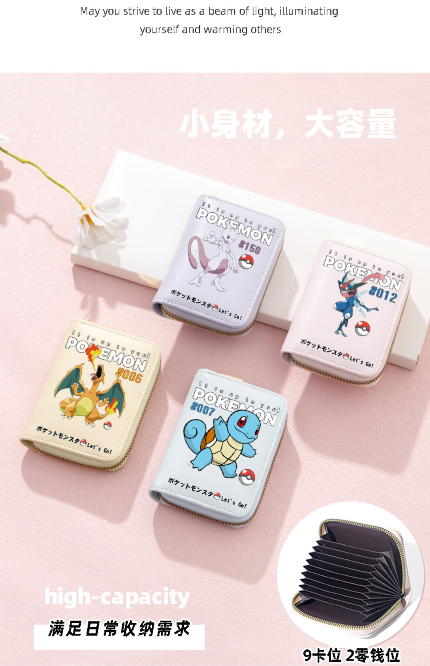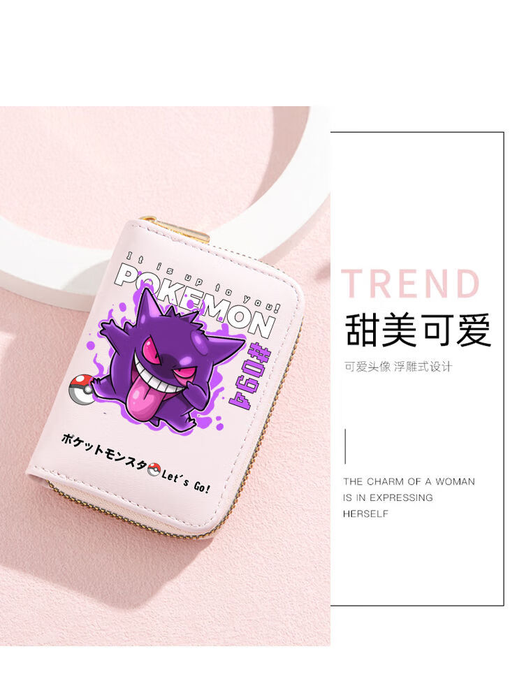 Pokémon Pokemon Wallet Pokemon Pikachu Cartoon Multi-Slot Zipper Card Bag for Students Men and Women Mewtwo-Card Bag Black