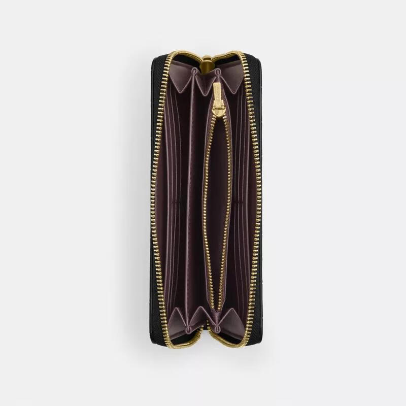 COACH long zippered women's wallet multi-functional storage microfiber leather clutch Black